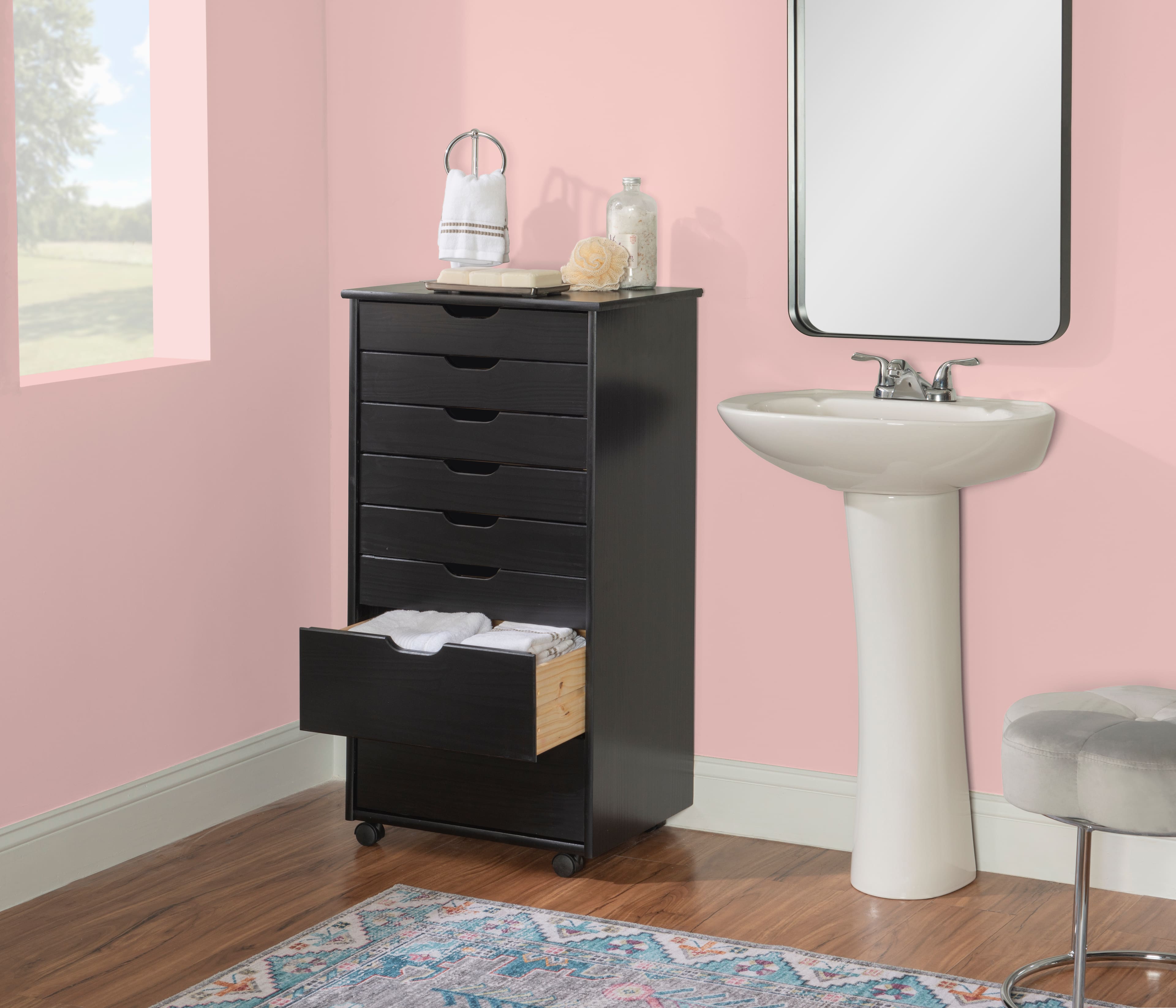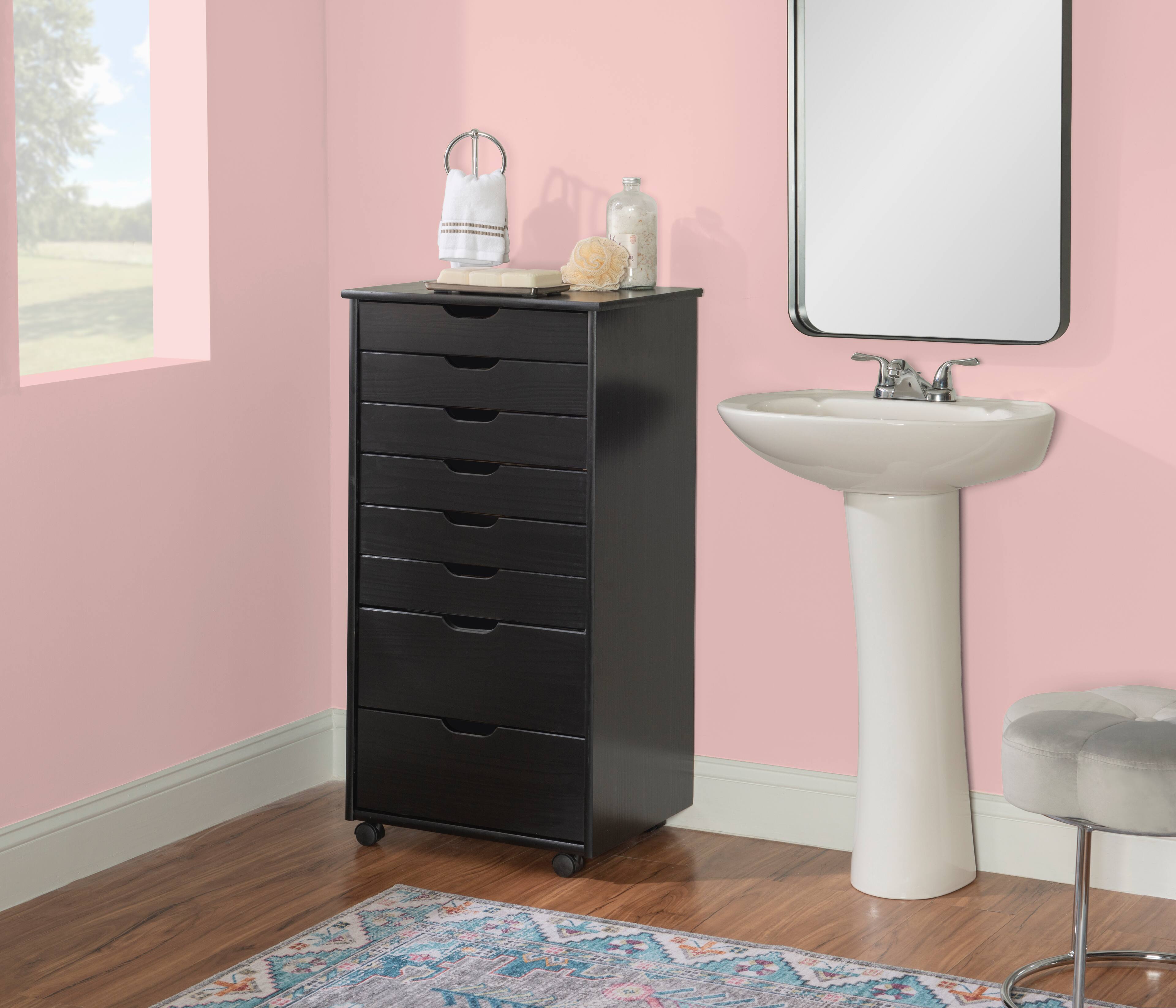 Linon Home Décor – Monte Eight-Drawer Rolling Storage Cart – Black