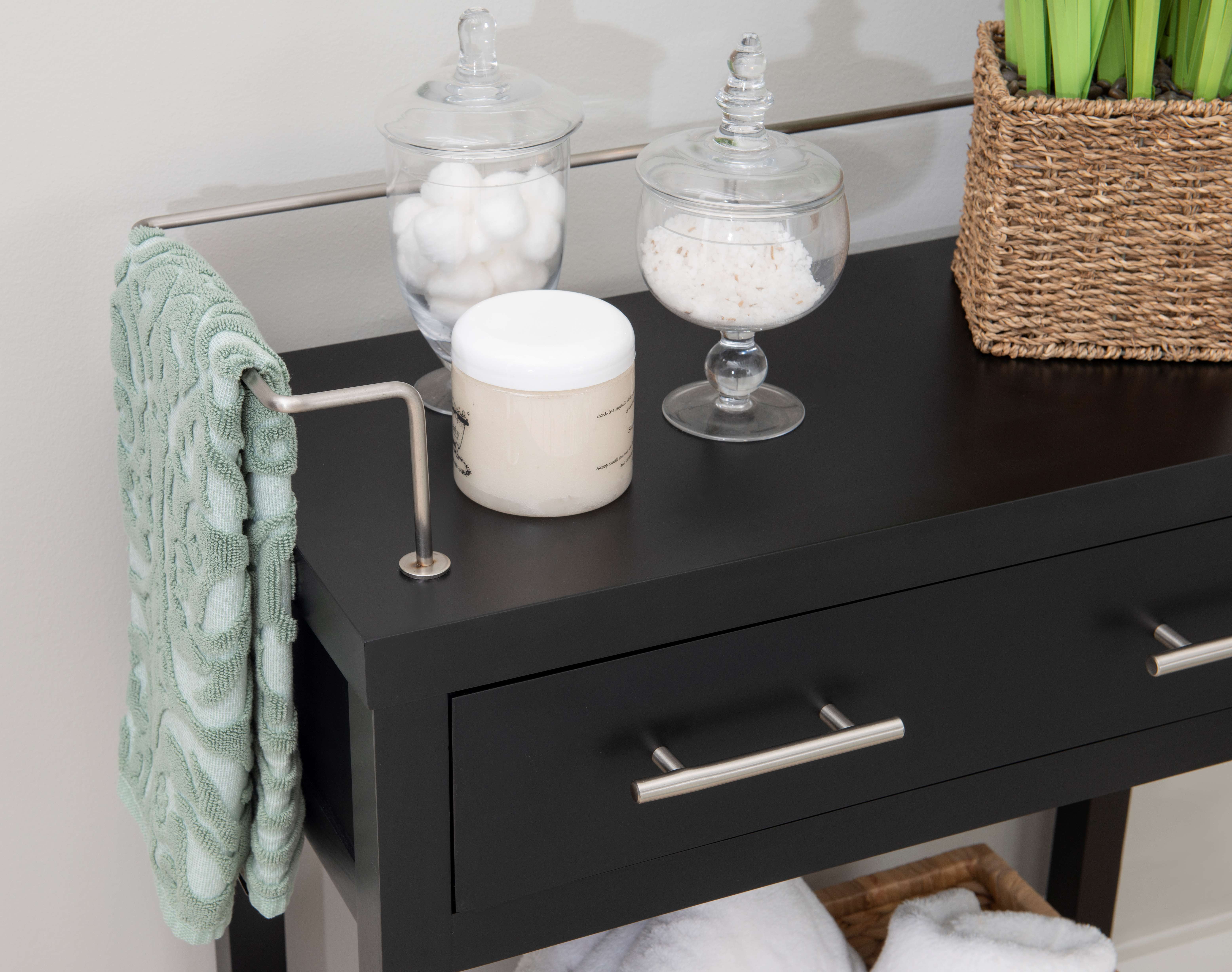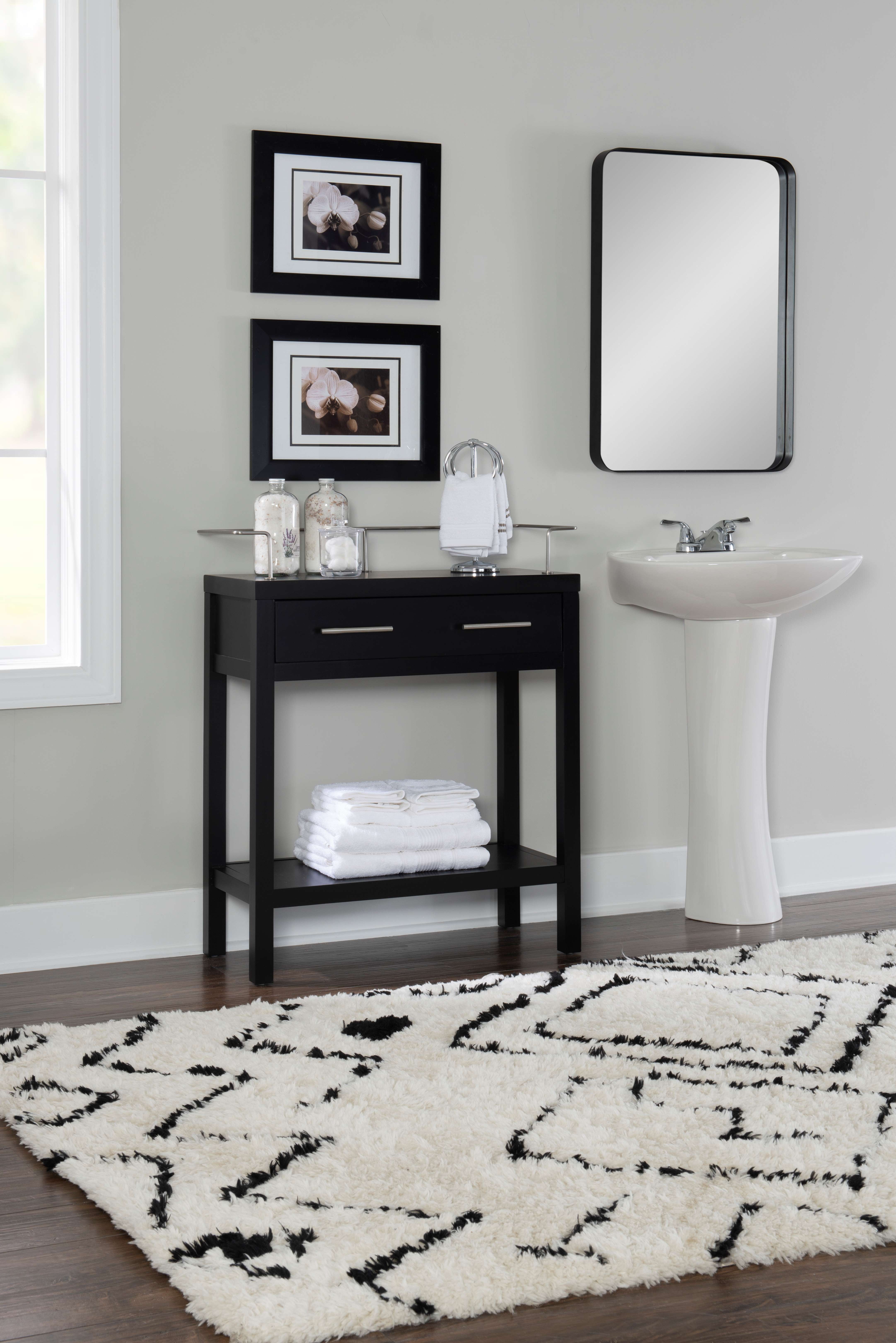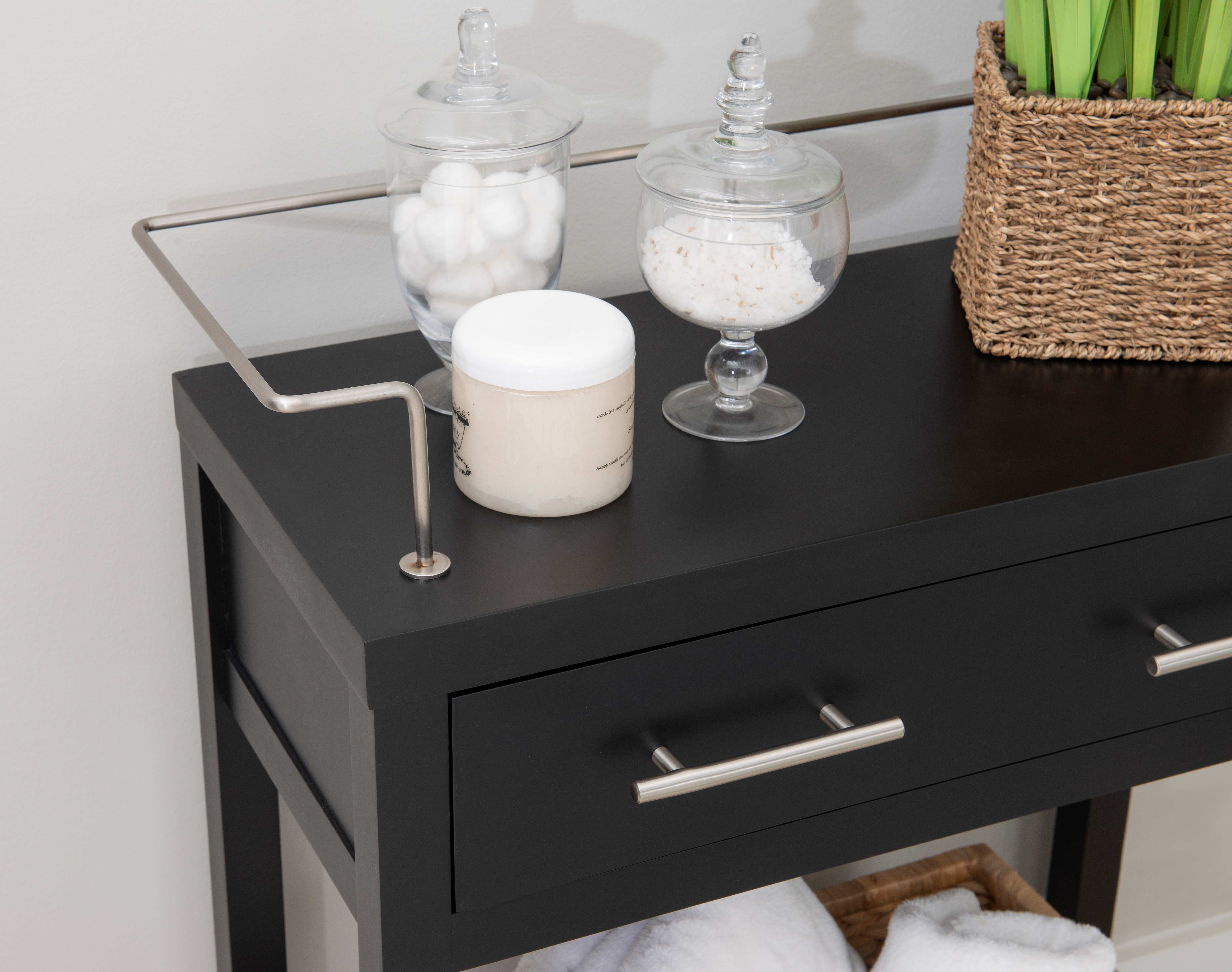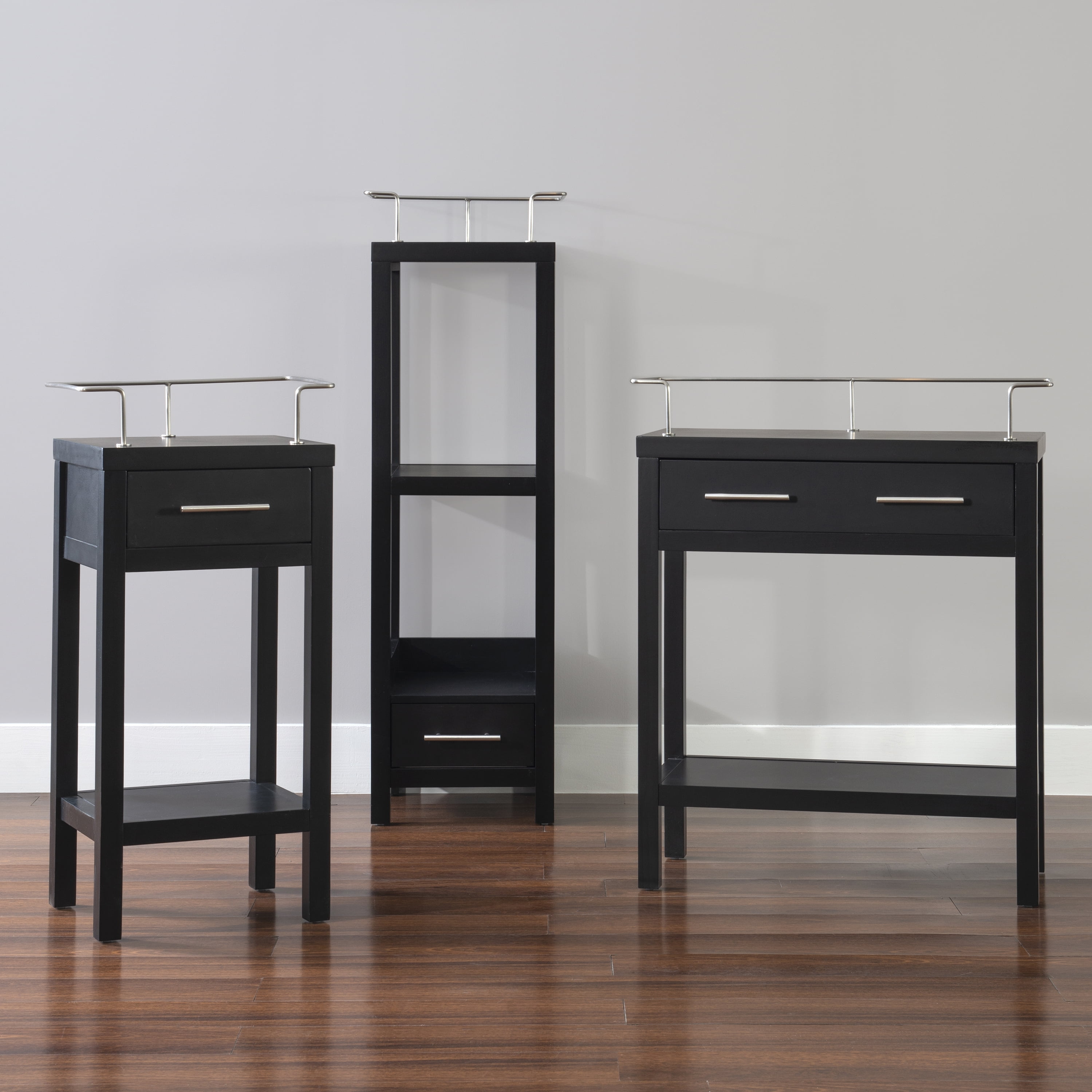 The Linon Hoover Console provides a modern sense of storage space for your bathroom. This piece is ideal for those smaller bathrooms that need organization. The black finish and silver metal hardware gives off a eyecatching appeal. The top and bottom tiered shelves help keep your bathroom feeling spa like and organized. An added drawer provides hidden storage. About Linon Home Décor Linon Home Décor is a family-owned-and-operated company based on the East Coast that has been in business for over 50 years. With an established reputation in the market for providing the best on-trend products at the right price, Linon offers excellent quality, style and functional furnishings for every room in the home. Linon’s domestic and international teams provide customers with the most reliable on-time delivery and customer service possible.