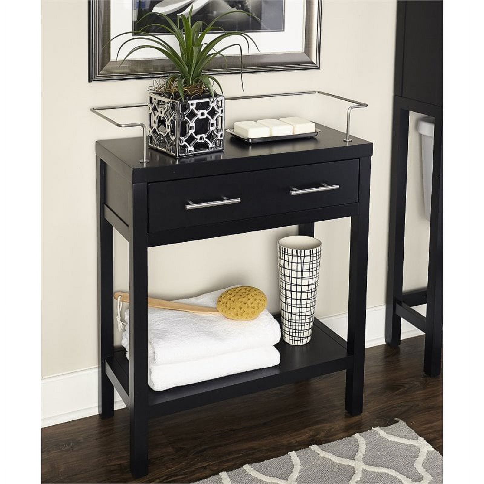 Linon Hoover Console, Black, 1 Drawer with Top and Bottom Shelf Storage