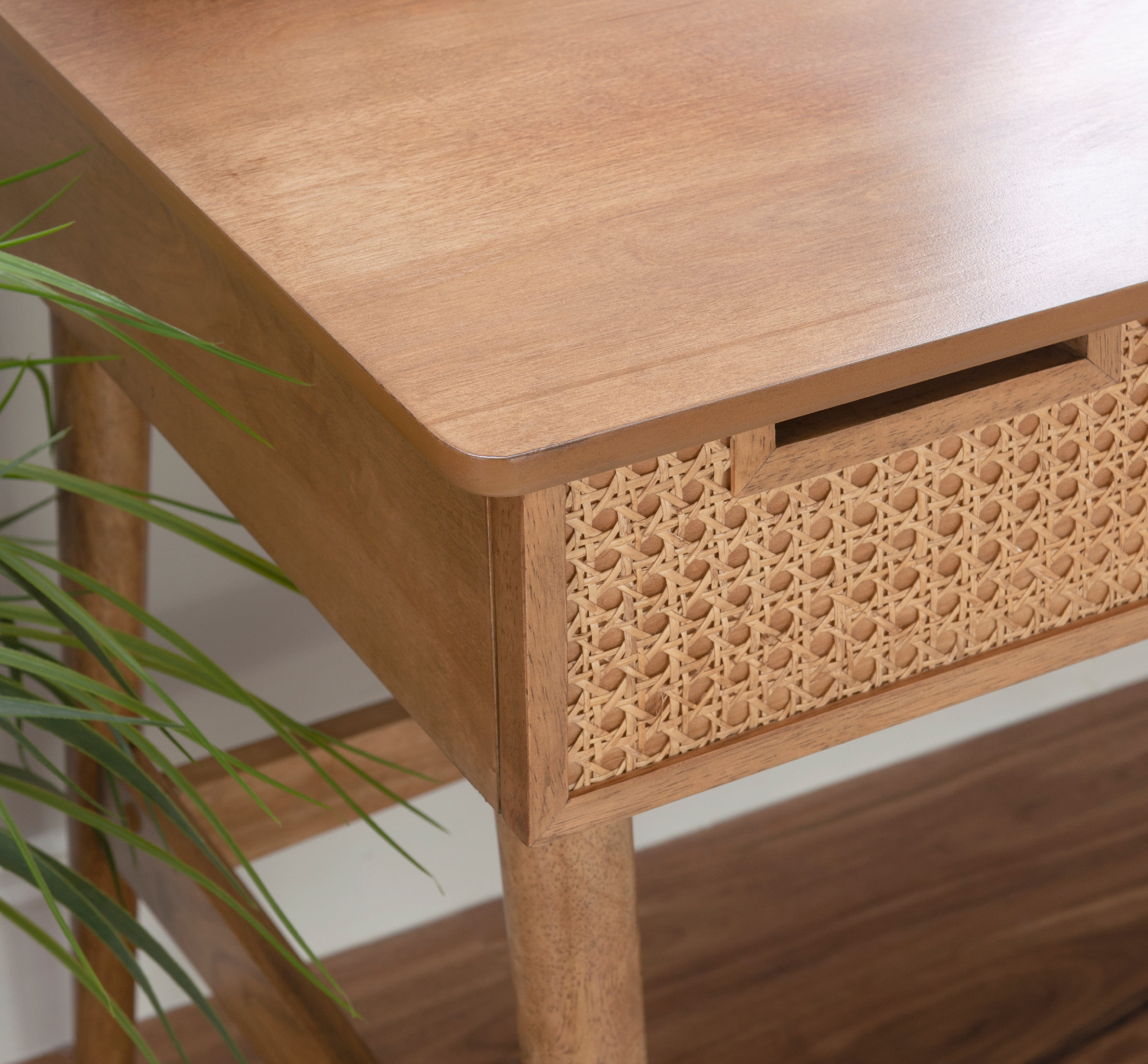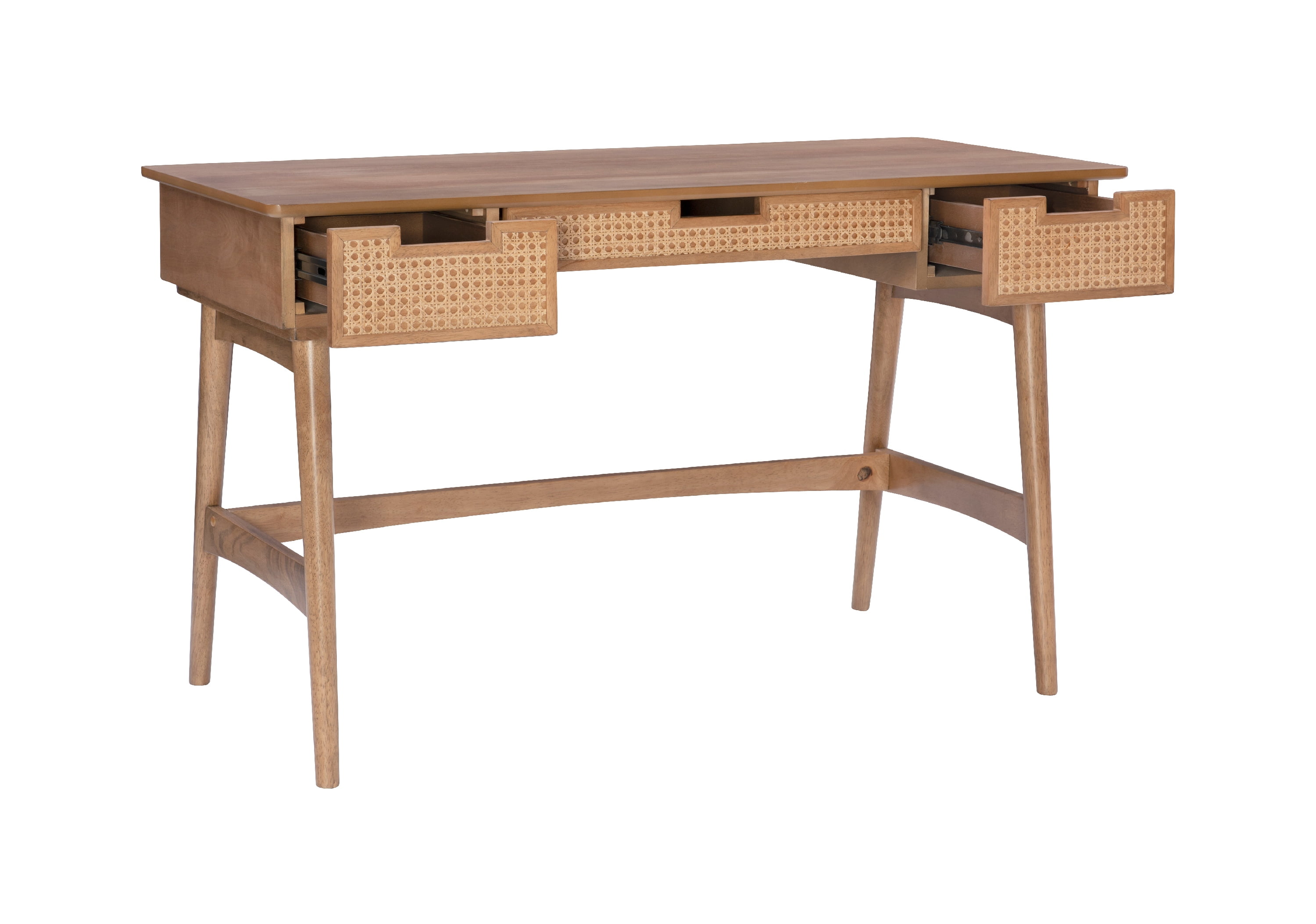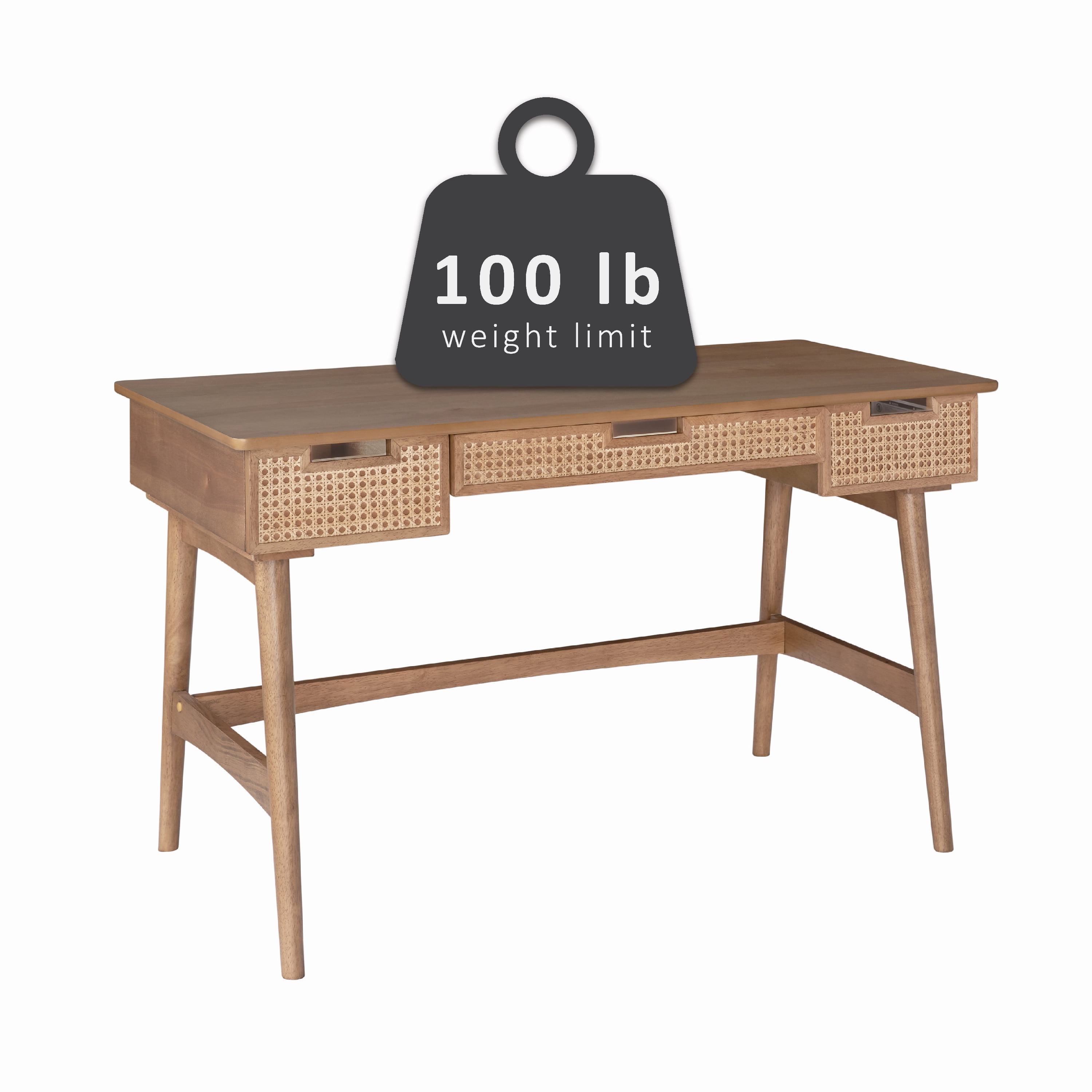 Linon Howry 3-Drawer Rattan Writing Desk, 51″ W x 23″ D, Natural Finish