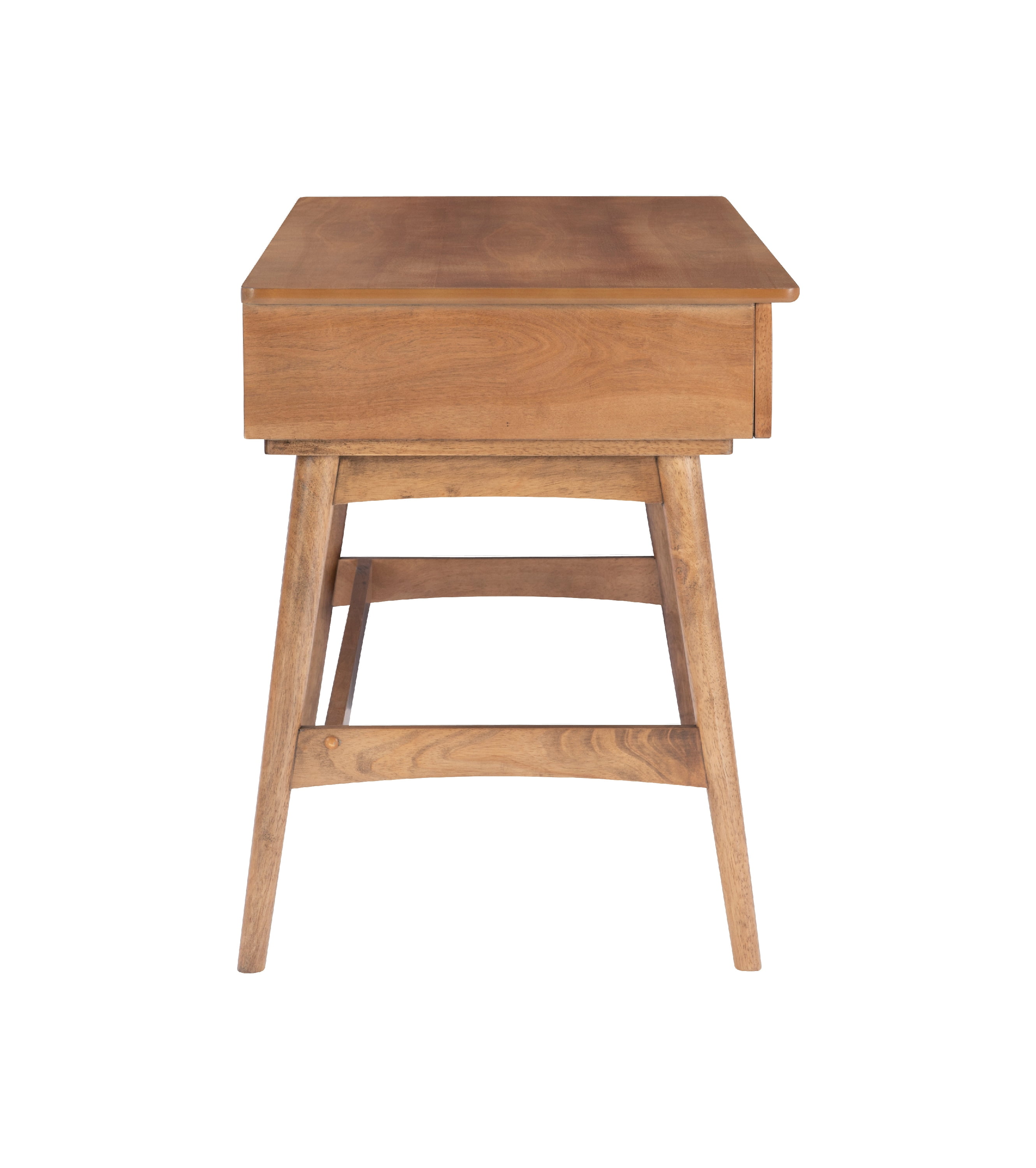 Escape the stuffiness of corporate office decor and bring new life into your home workspace with this mid-century-inspired Linon Howry 3-Drawer Rattan Writing Desk. The top, side, and back panels glow in a natural birch veneer and are complimented by 3 handwoven rattan drawer fronts with cutout handles. The base is made of solid wood and outfitted with glides on its feet to protect hardwood floors. There’s no need for productivity and style to be mutually exclusive in your study, bedroom, or living room with this timeless piece.