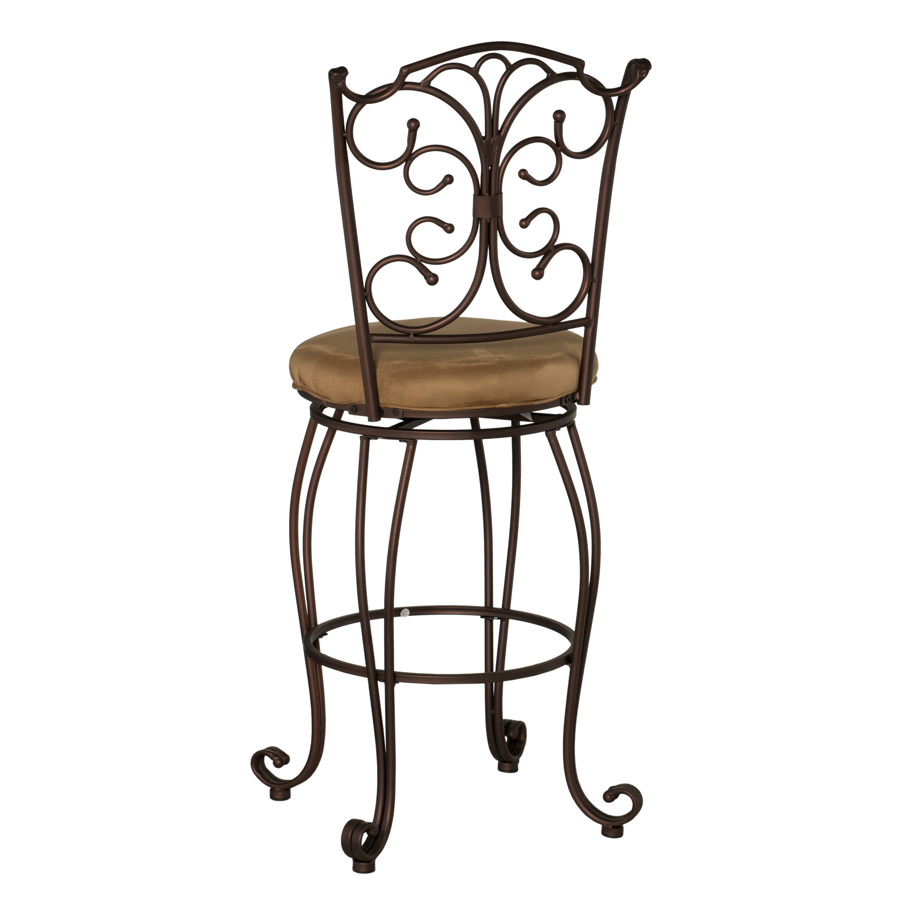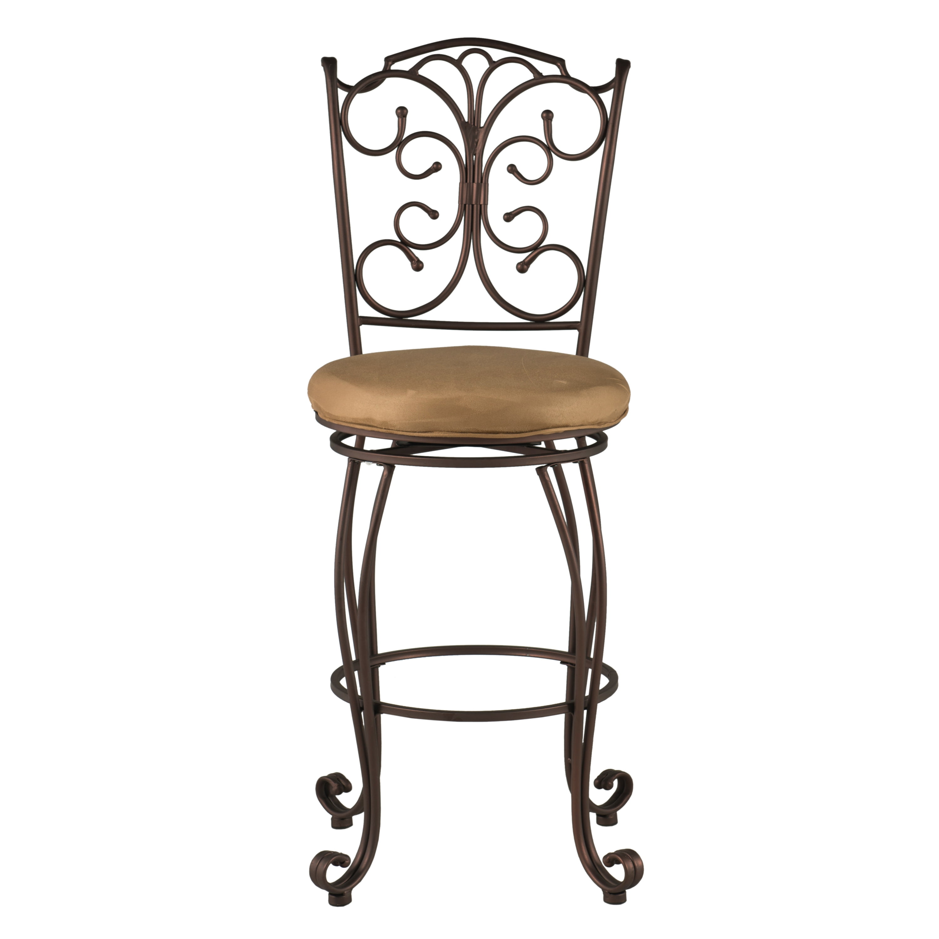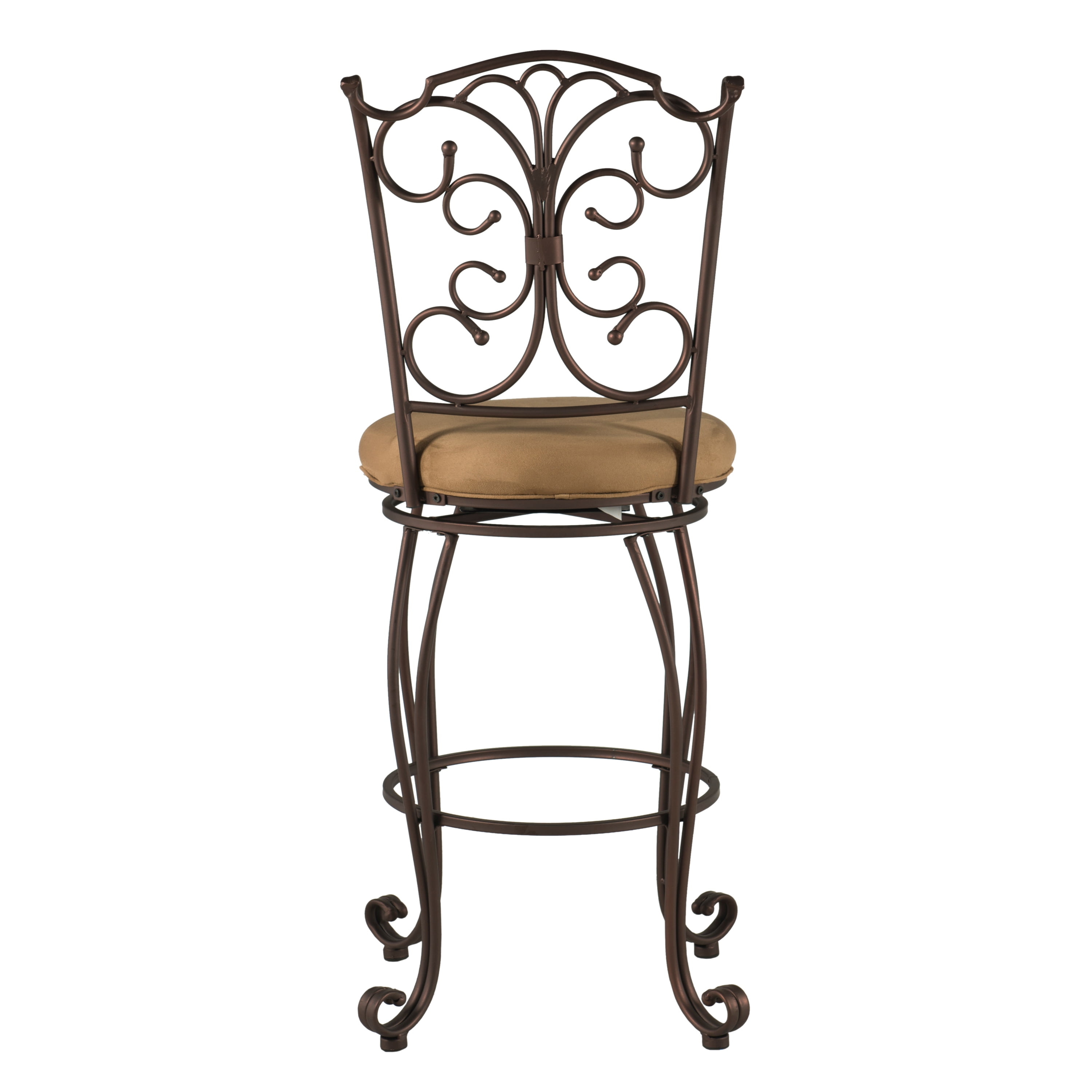 Linon Hullen Metal Swivel Bar Stool, 29″ Seat Height, Light Brown Fabric