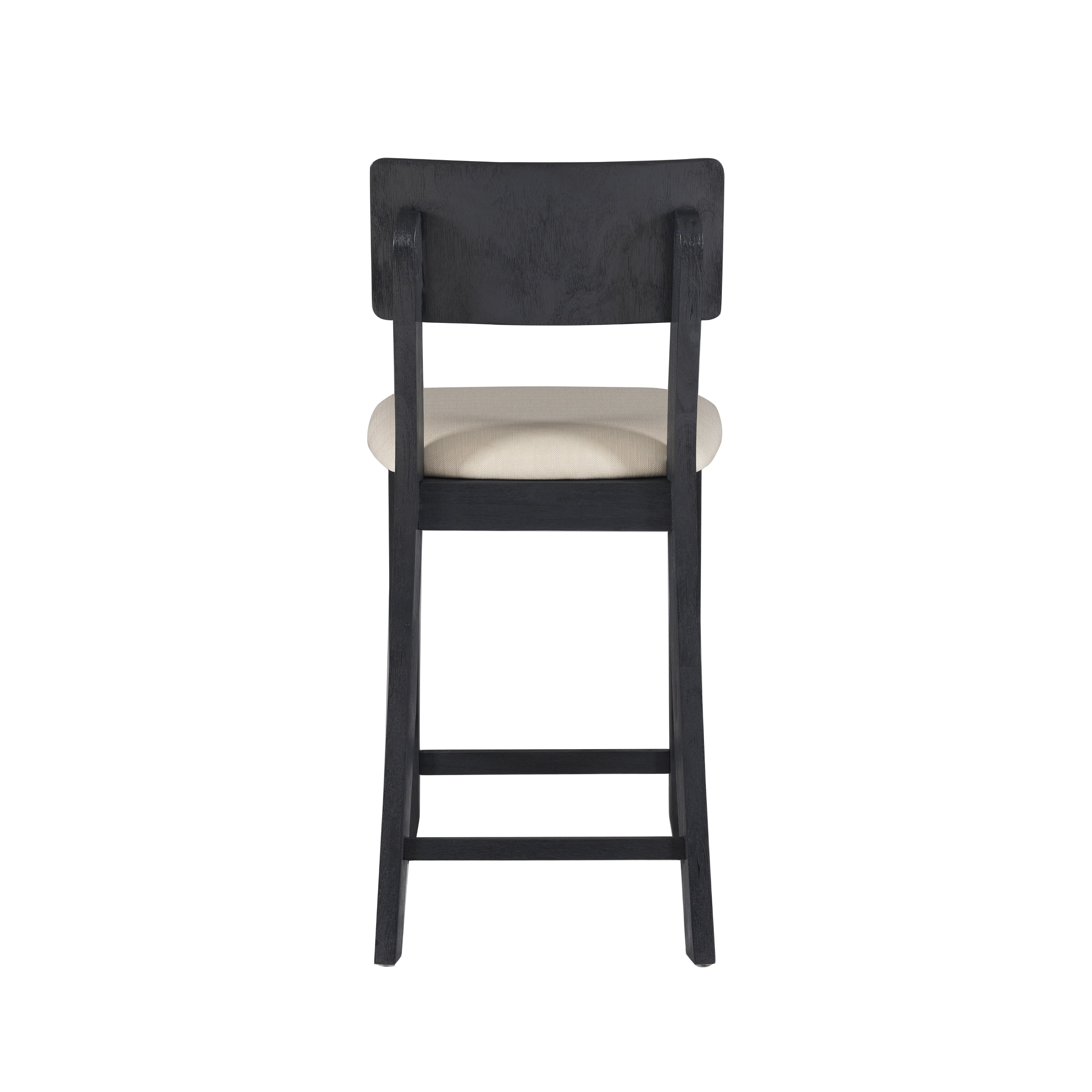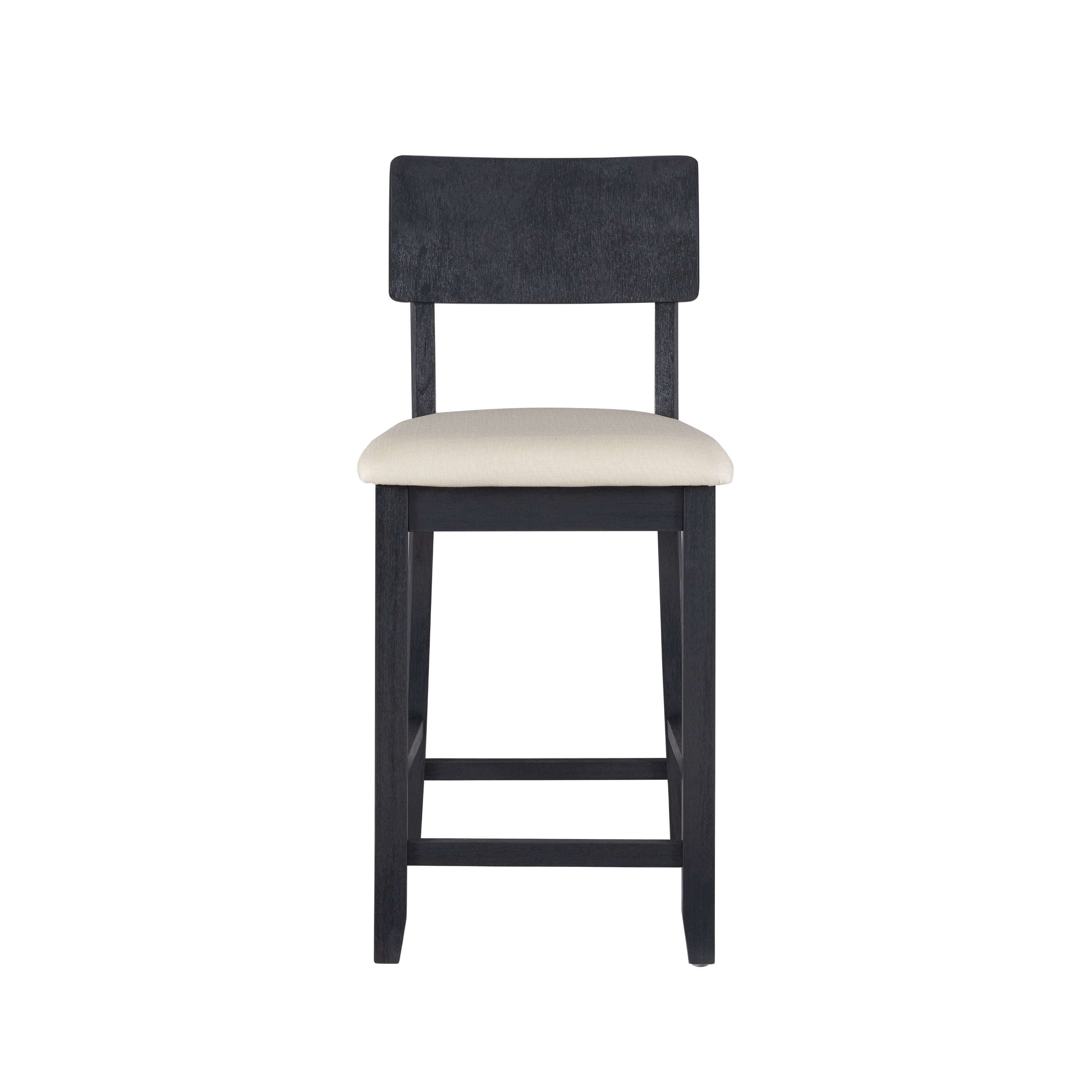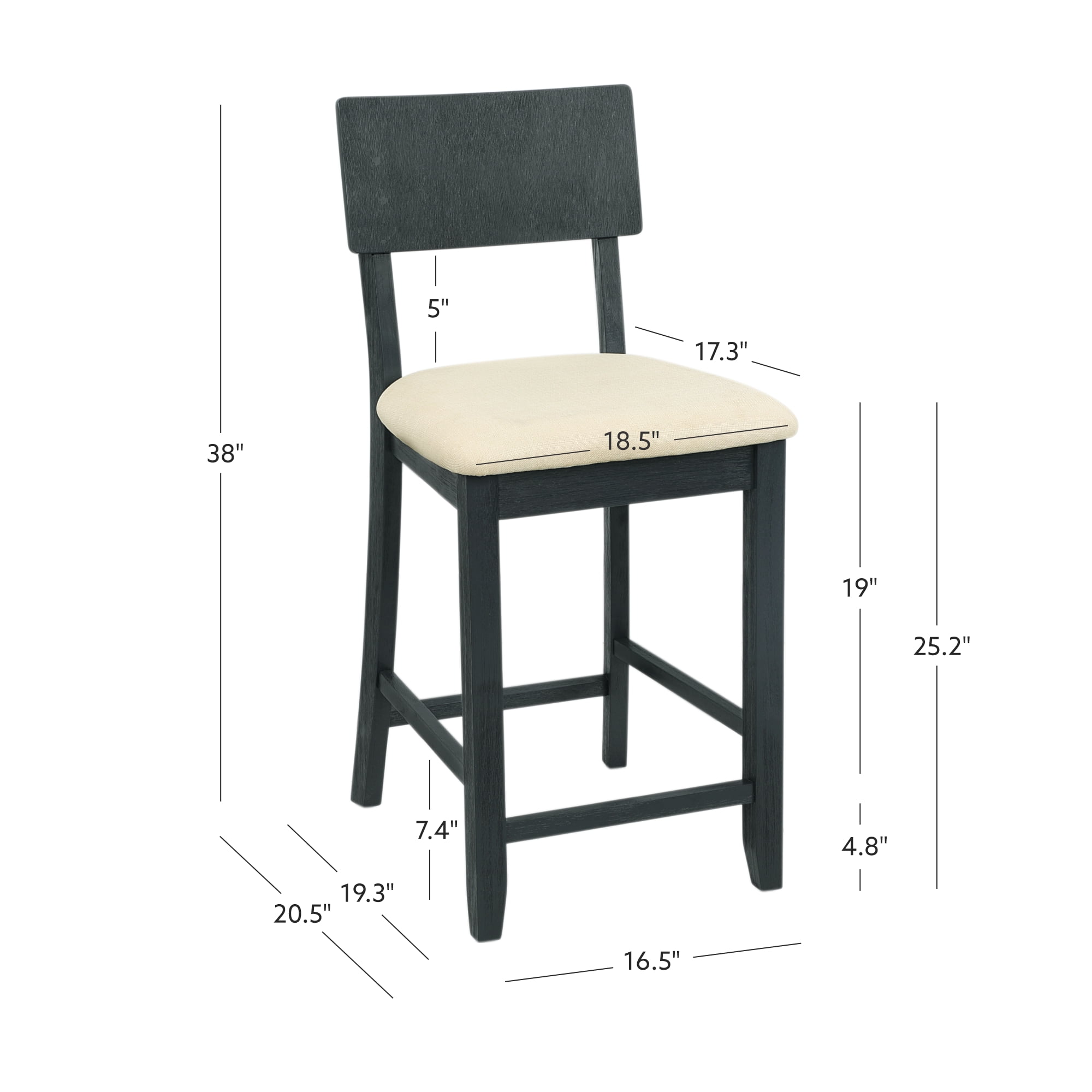 Solid acacia construction provides ensured stability and durability Beige linen and cotton upholstery is a breeze to maintain Generously padded comfortable seat cushion Dark charcoal black with wire brush fits seamlessly in a variety of modern and traditional settings Footrest offers added comfort and support Seat height of 25.5in is perfect for counters 35in to 39in high Perfect paired with matching tavern table or kitchen counters Supports up to 225 lbs. Assembled Dimensions: 18.50″ L x 20.50″ D x 38″ H Ships in 1 box