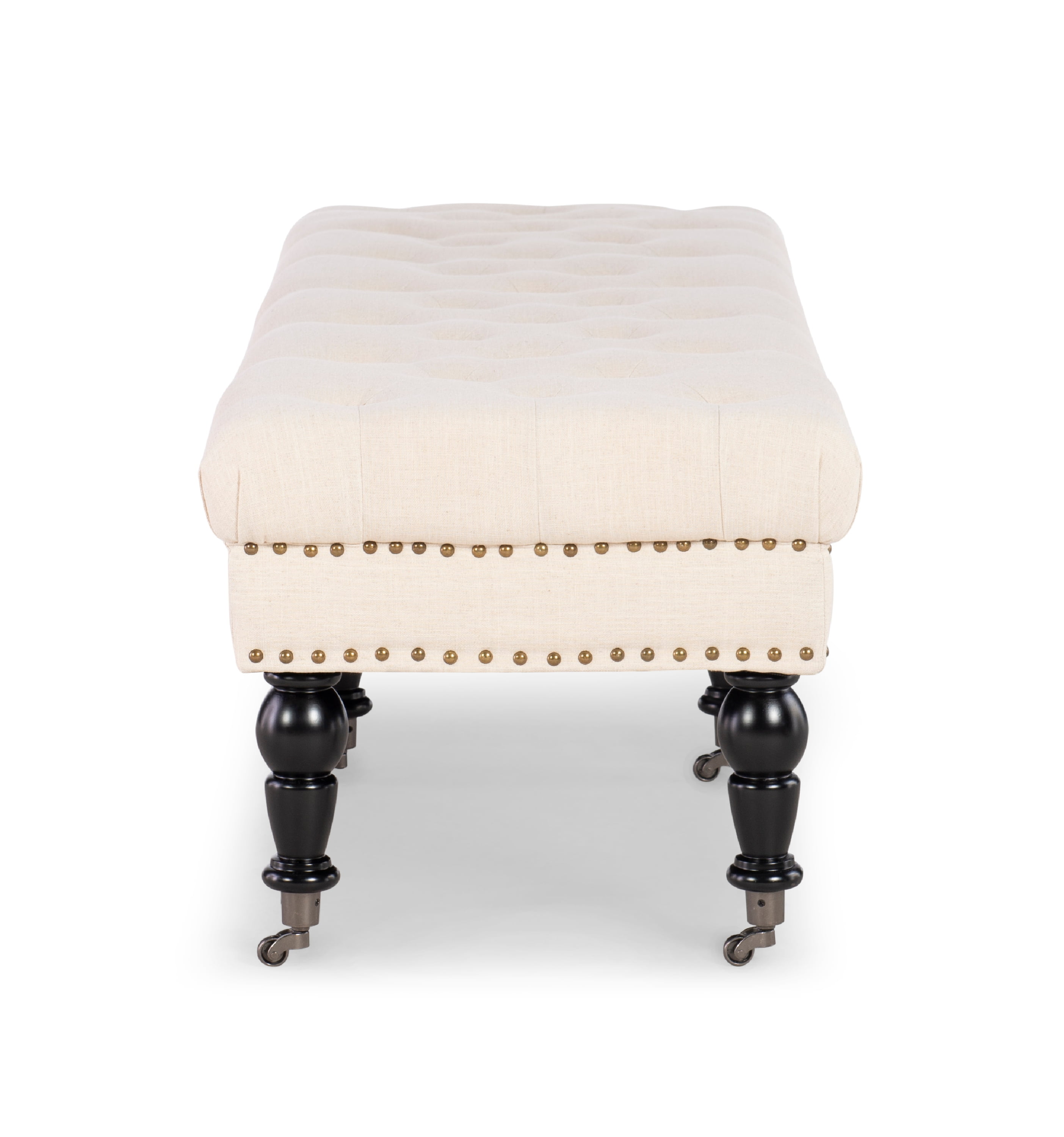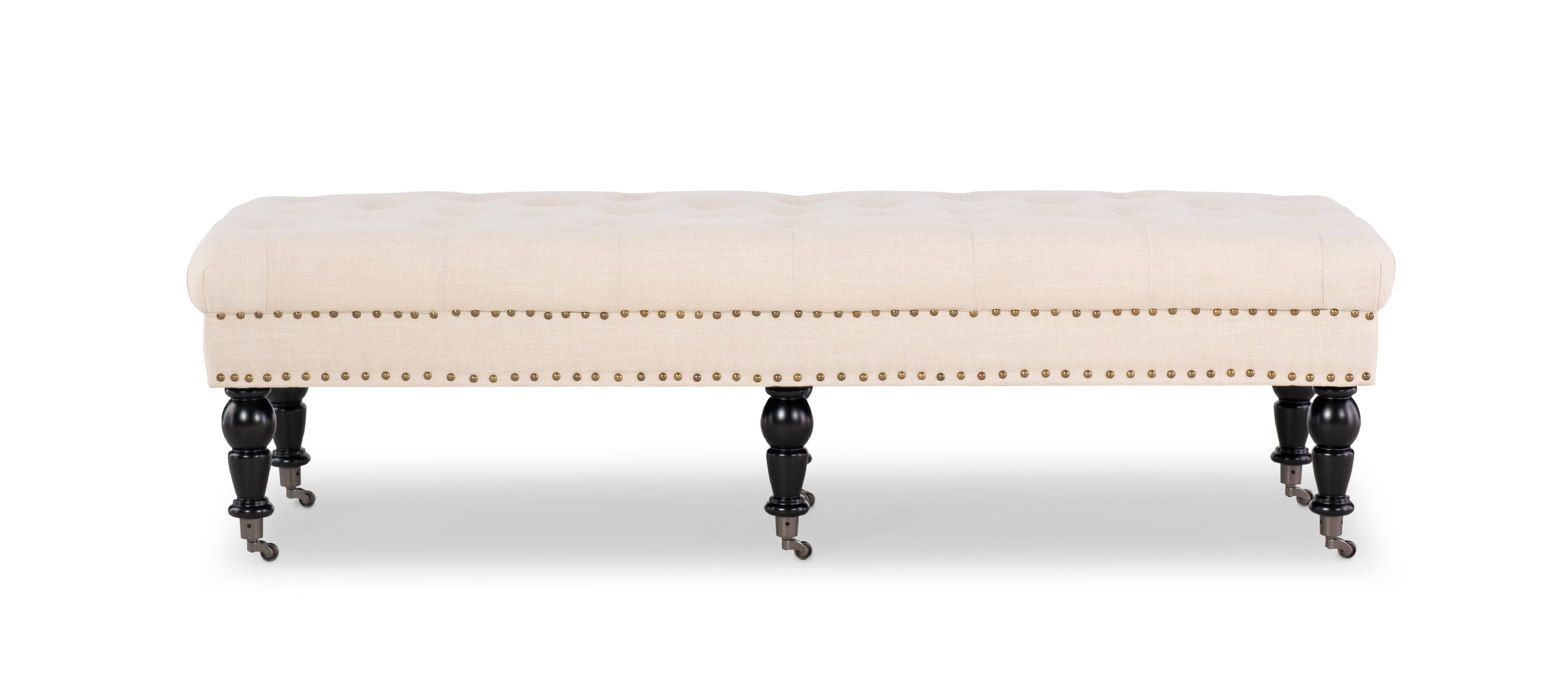 Create an elegantly appointed space with this chic bench featuring soft linen upholstery accented with nailhead trim and deep button tufting. Traditional yet versatile, this bench brings a sense of timeless refinement to any style of home. Dress up a dull entryway or complete your bedroom design with this sophisticated piece while enjoying the convenience and comfort it brings to your home.