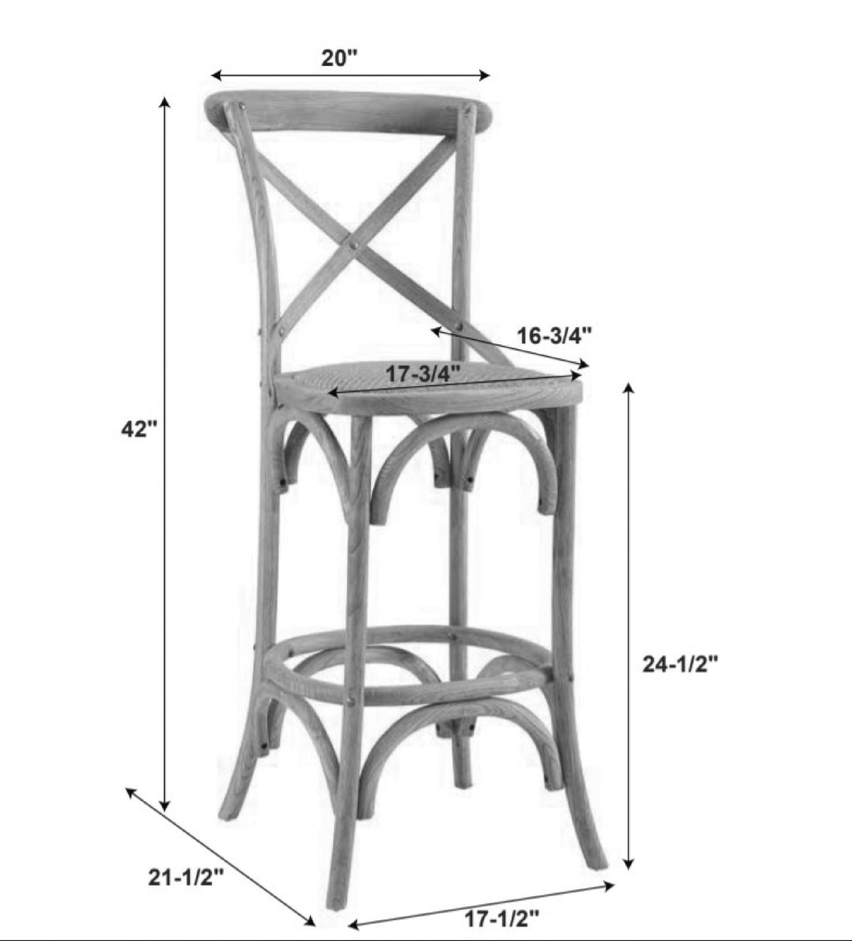 Curved wood features Counter Stool Gray Wash Finish Sturdy and durable design Vintage Style (French Country) Seat Height: 24.5″ Weight Limit: 250 lbs Assembled Dimensions: 20″w x 21.25″d x 41.25″h Ships in 1 box
