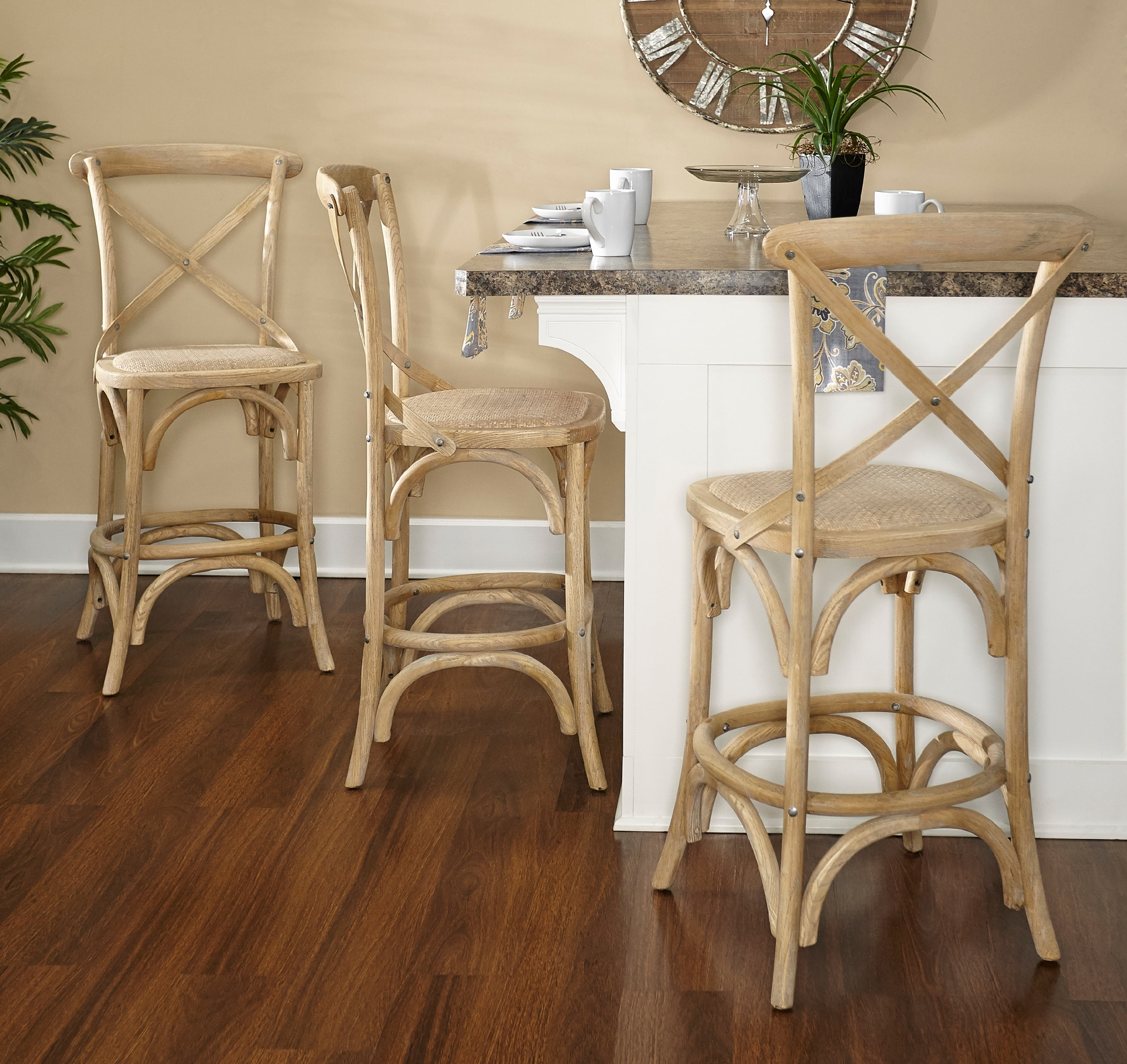 Linon Kershaw X-Back Counter Stool, 24.5″ Seat Height, Gray Wash Finish