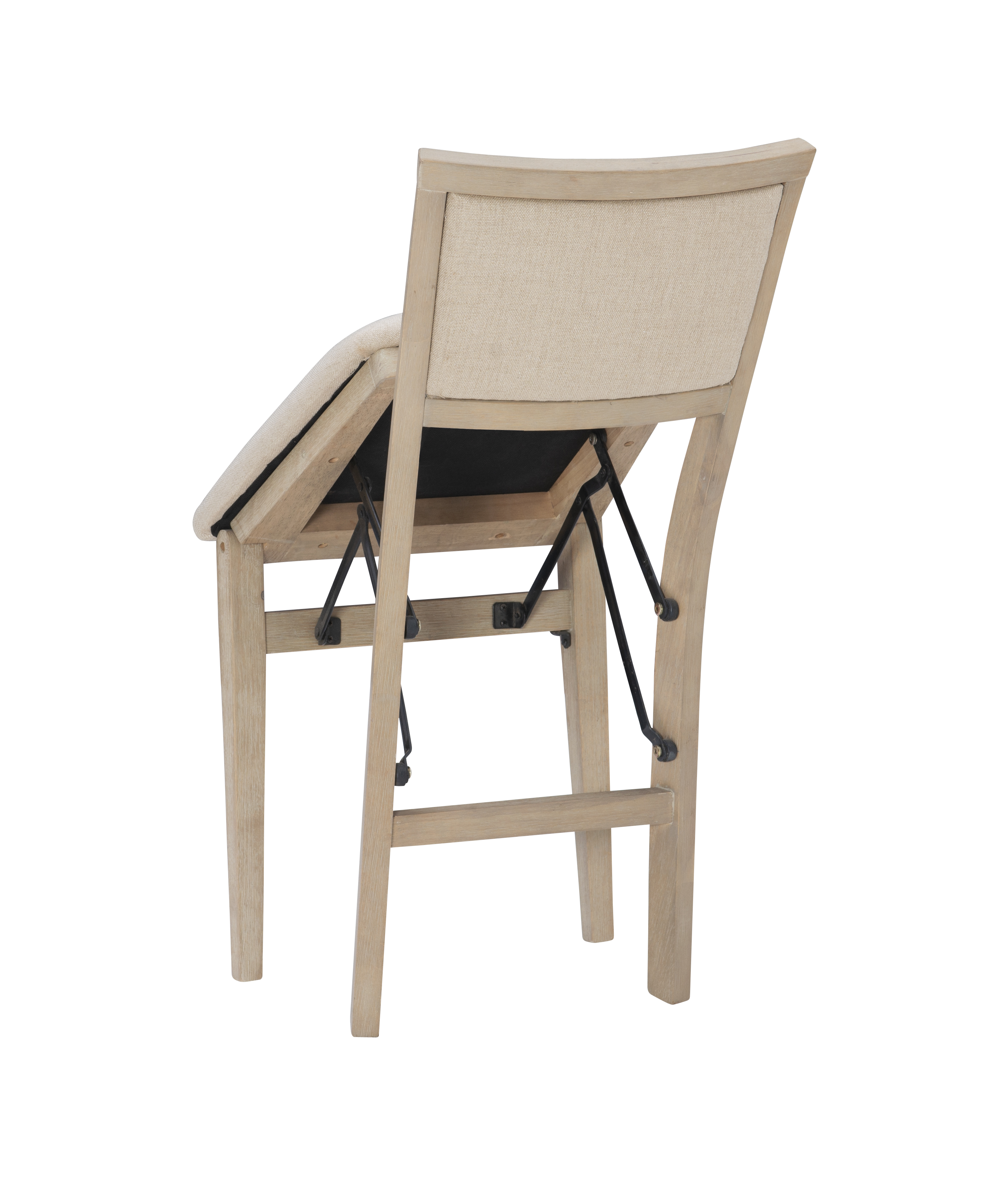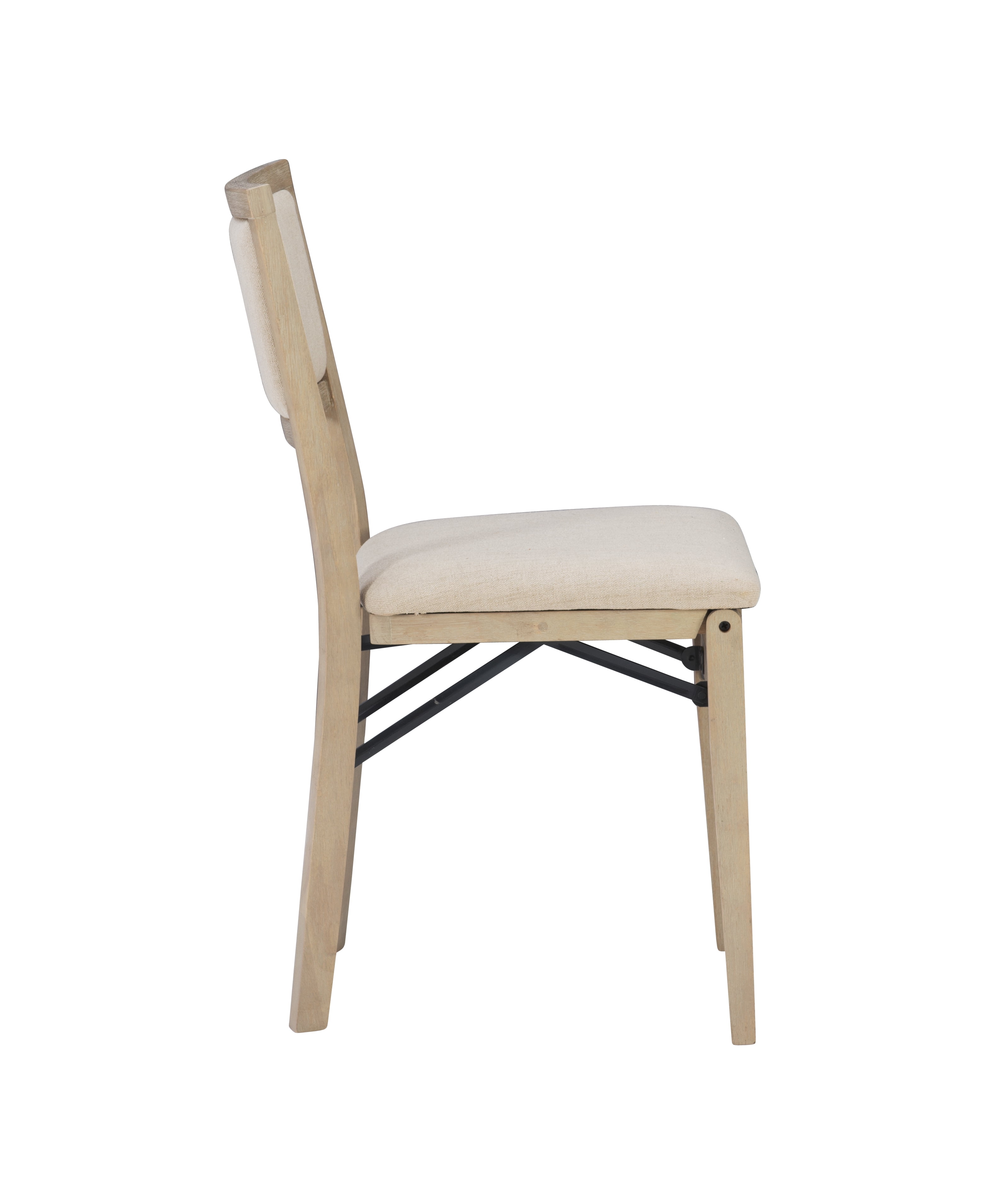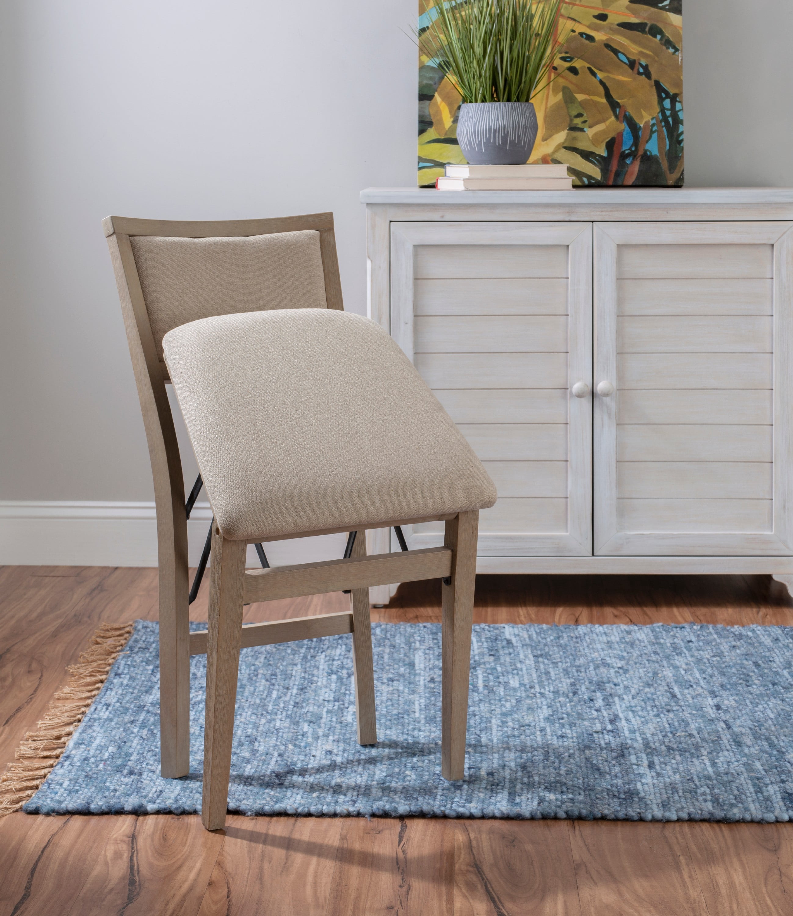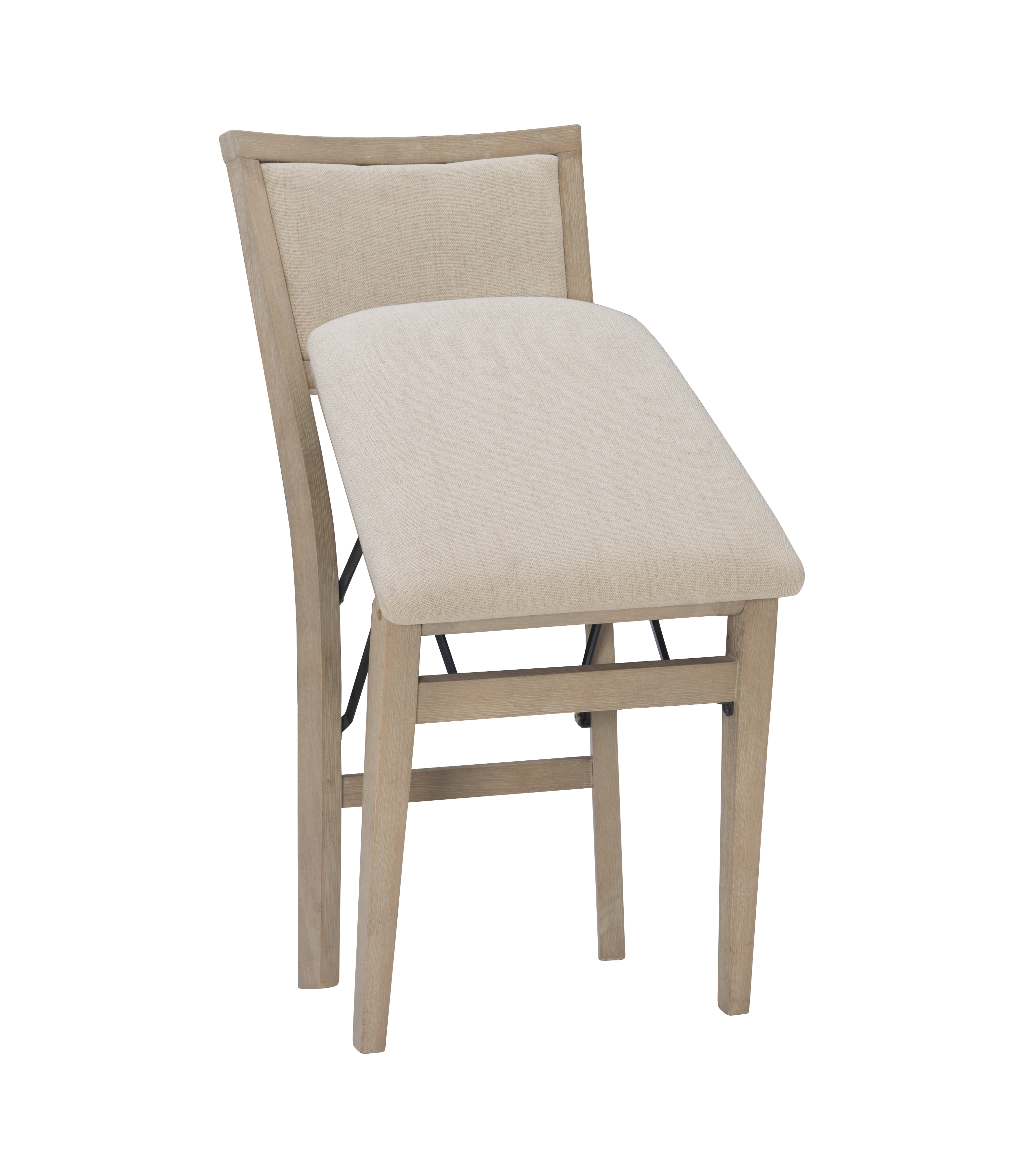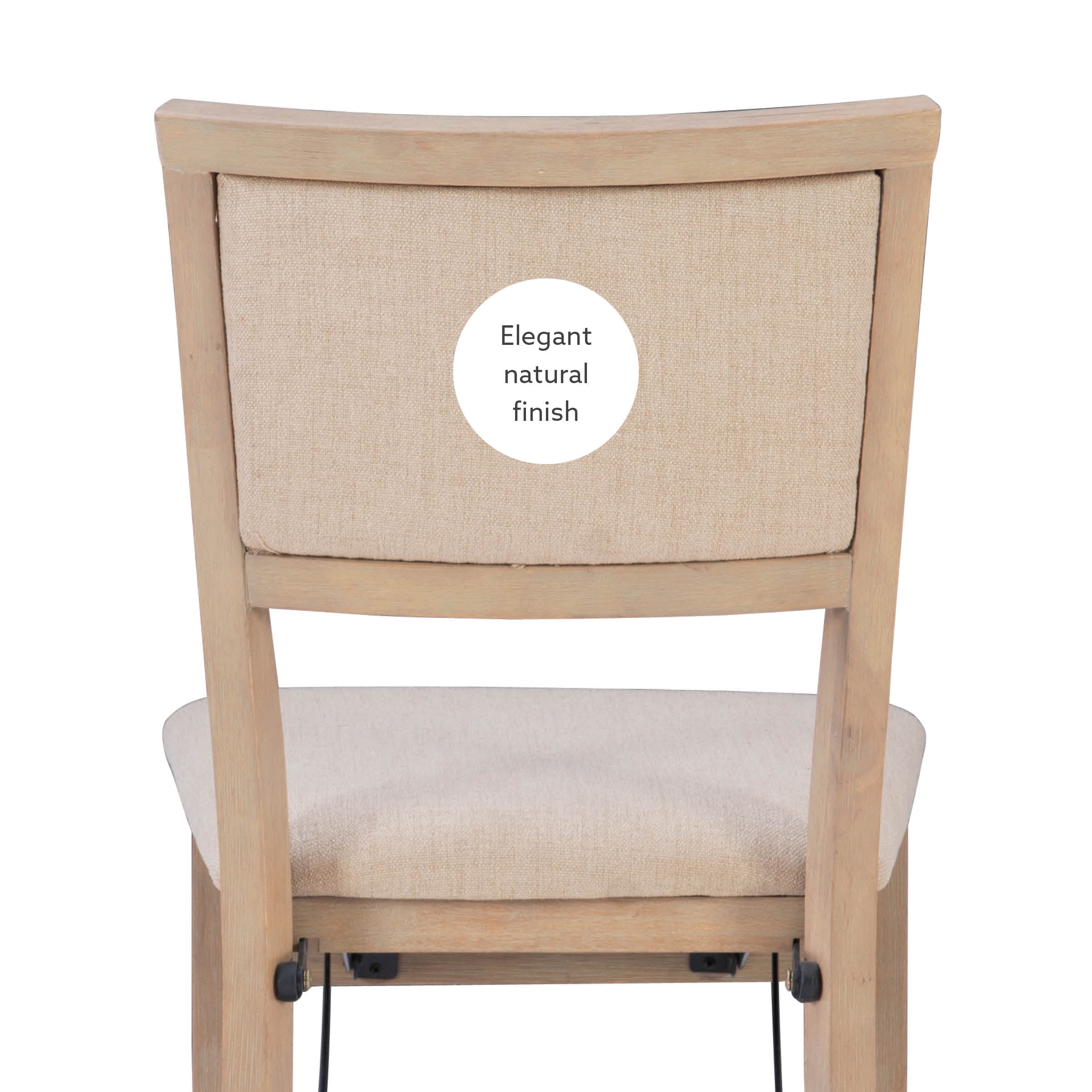 Folding chairs have never looked so stylish. But the good looks of these chairs are only the beginning. The classic design in a natural rustic finish has a comfortably padded seat and back, both covered in a neutral beige easy to clean fabric. This pair of folding chairs is the perfect extra seating alternative for game nights, holidays and unexpected company. Constructed with solid wood and a sturdy steel folding mechanism, these folding chairs come fully assembled making them a breeze to setup and store.