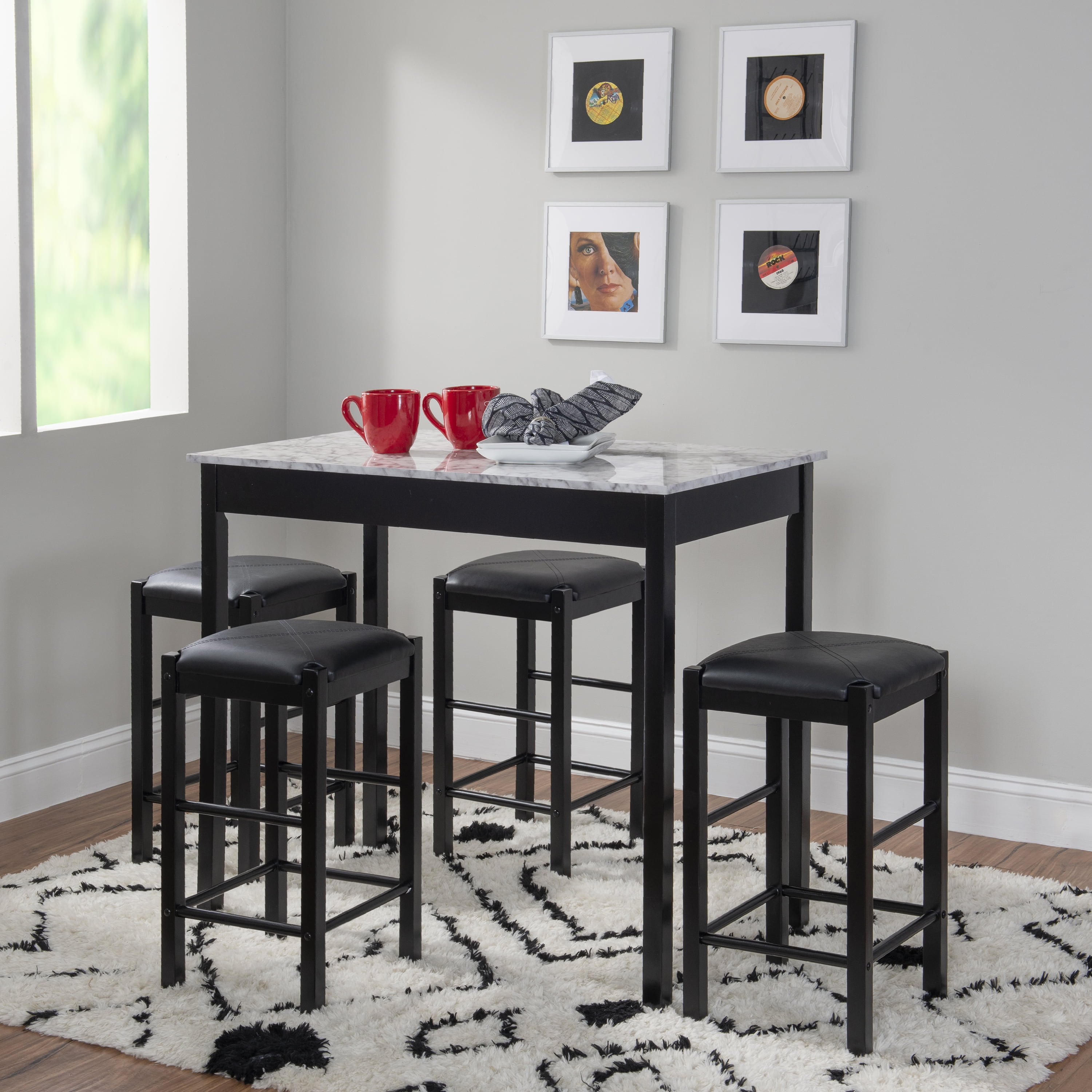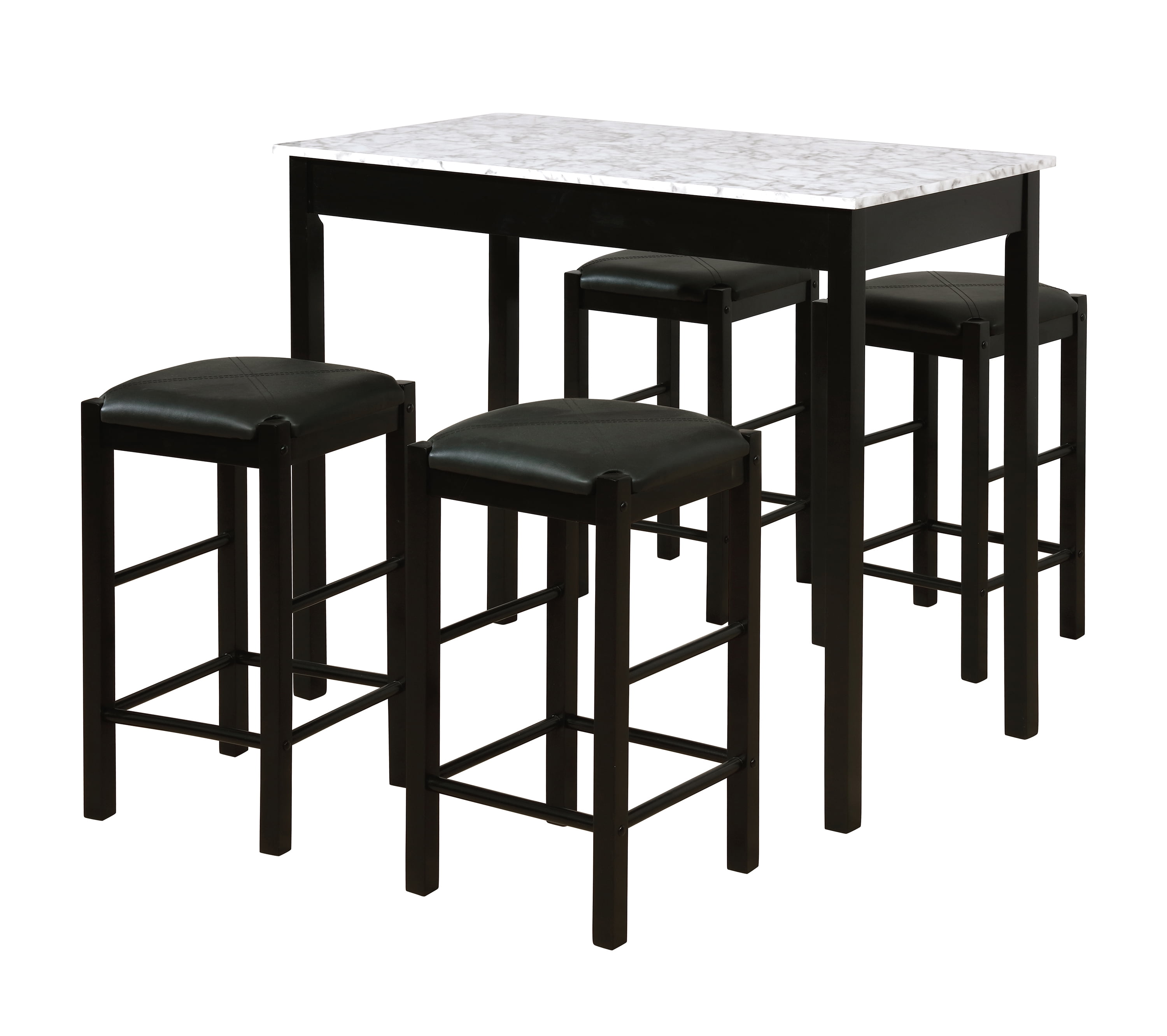 Tavern 3 Piece Counter Set with space saving convenience. This set features a elegant rectangular table on long sturdy legs with two backless counter height stools with padded, black faux leather upholstered seats. Made from solid woods and a faux marble top. The black finish of the base and legs gives this piece an elegant and sophisticated appeal. The stools tuck neatly under the table when not in use. Great for kitchen, dining area, den or any place your entertain.About Linon Home DecorLinon Home Decor is a family-owned-and-operated company based on the East Coast that has been in business for over 50 years. With an established reputation in the market for providing the best on-trend products at the right price, Linon offers excellent quality, style and functional furnishings for every room in the home. Linon’s domestic and international teams provide customers with the most reliable on-time delivery and customer service possible.
