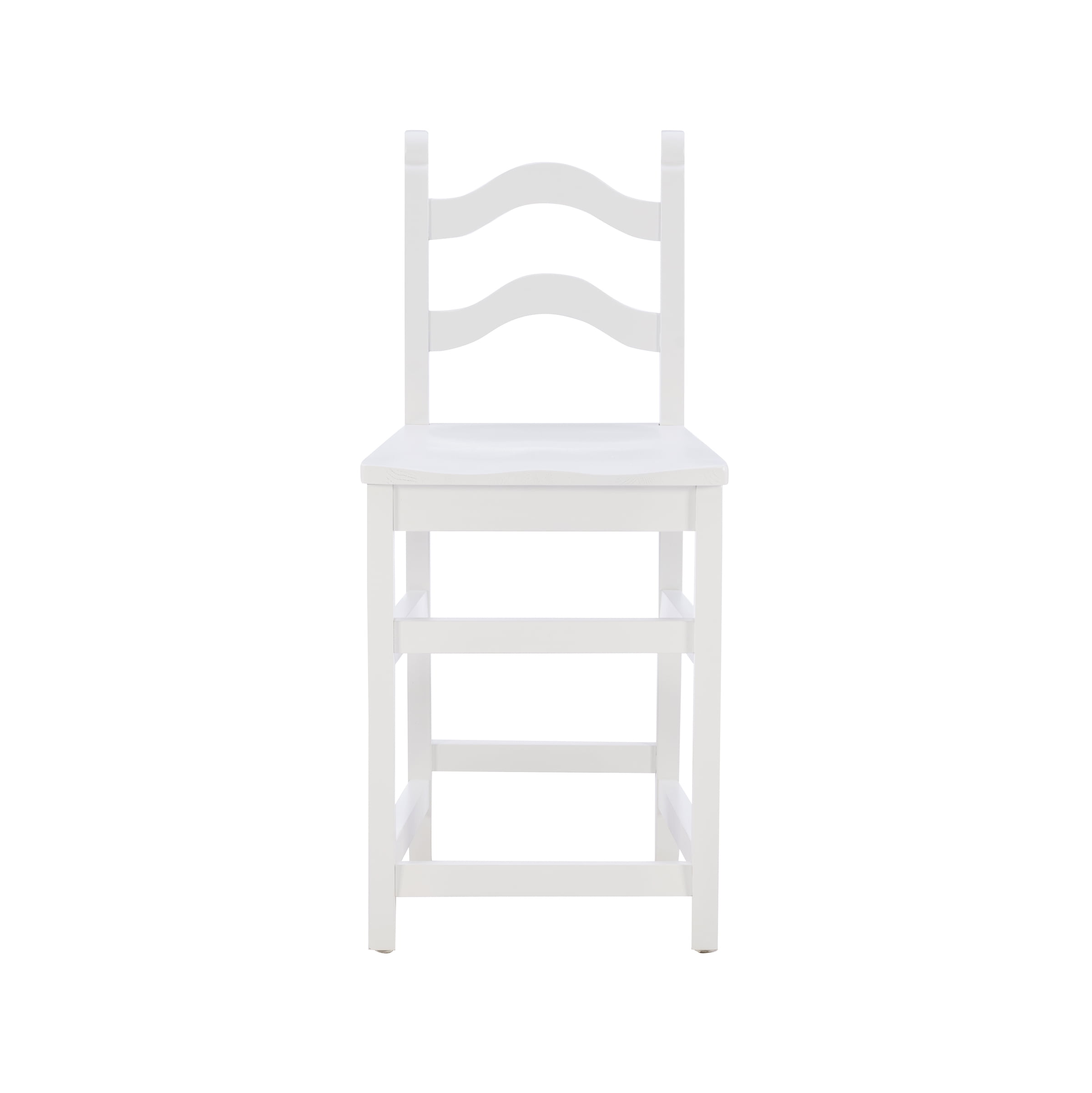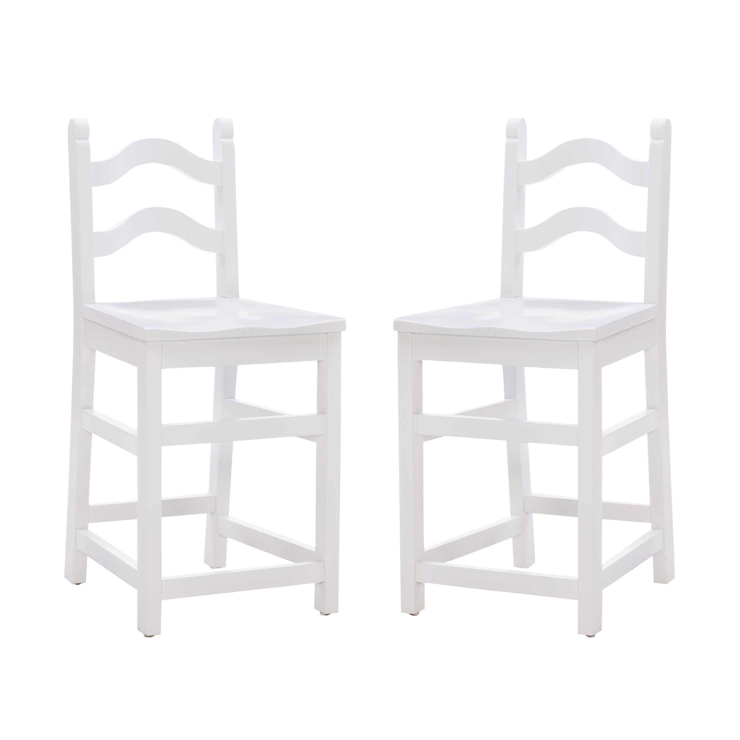 Linon Lauria 24″ Counter Stool, Set of 2, White Arrives in a fully assembled set of 2 Waved ladderback offers ample support and pays homage to traditional farmhoe design Solid beechwood construction provides stability and durability Arrives with option to attach separate brass kickback for extra protection and flair included in box Ltro white finish fits seamlessly with a variety of decor Seat height of 24in is perfect for counters 35in to 39in high Supports up to 300 lbs each seat Assembled Dimensions: 17.25″ L x 20.625″ W x 39″ D Ships in one box