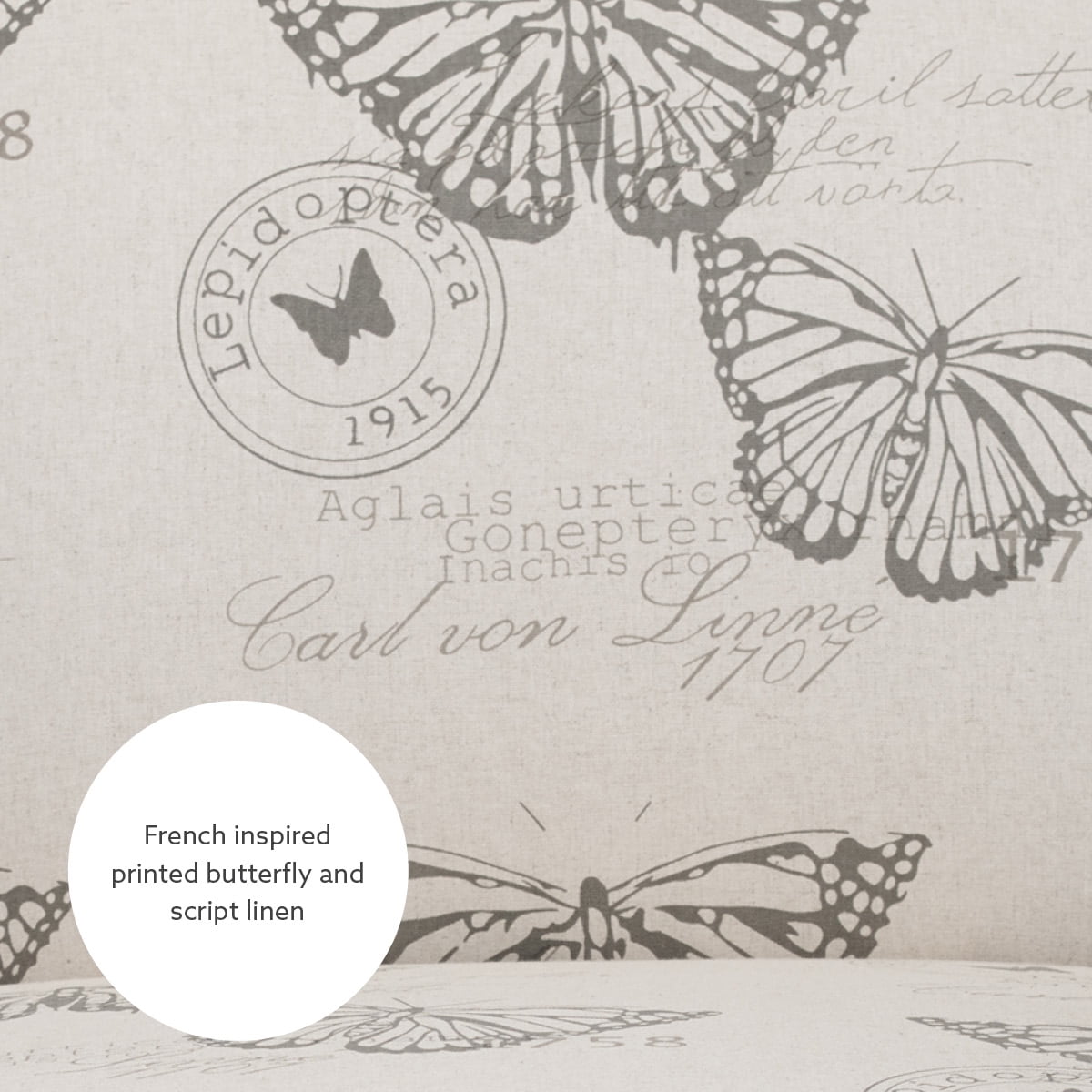 Crafted from Rubberwood, Plywood, Fabric and Foam Dark Espresso Finish Butterfly Linen Upholstery (30% Linen. 70% Polyester) Stylish seating option for any room in your home Sturdy and Durable Plush seat and chair back Seat Dimensions: 17.5″ Seat Height, 21″w x 21″d x 9.5″ thick ; Back Dimensions: 21″w x 15.5″h