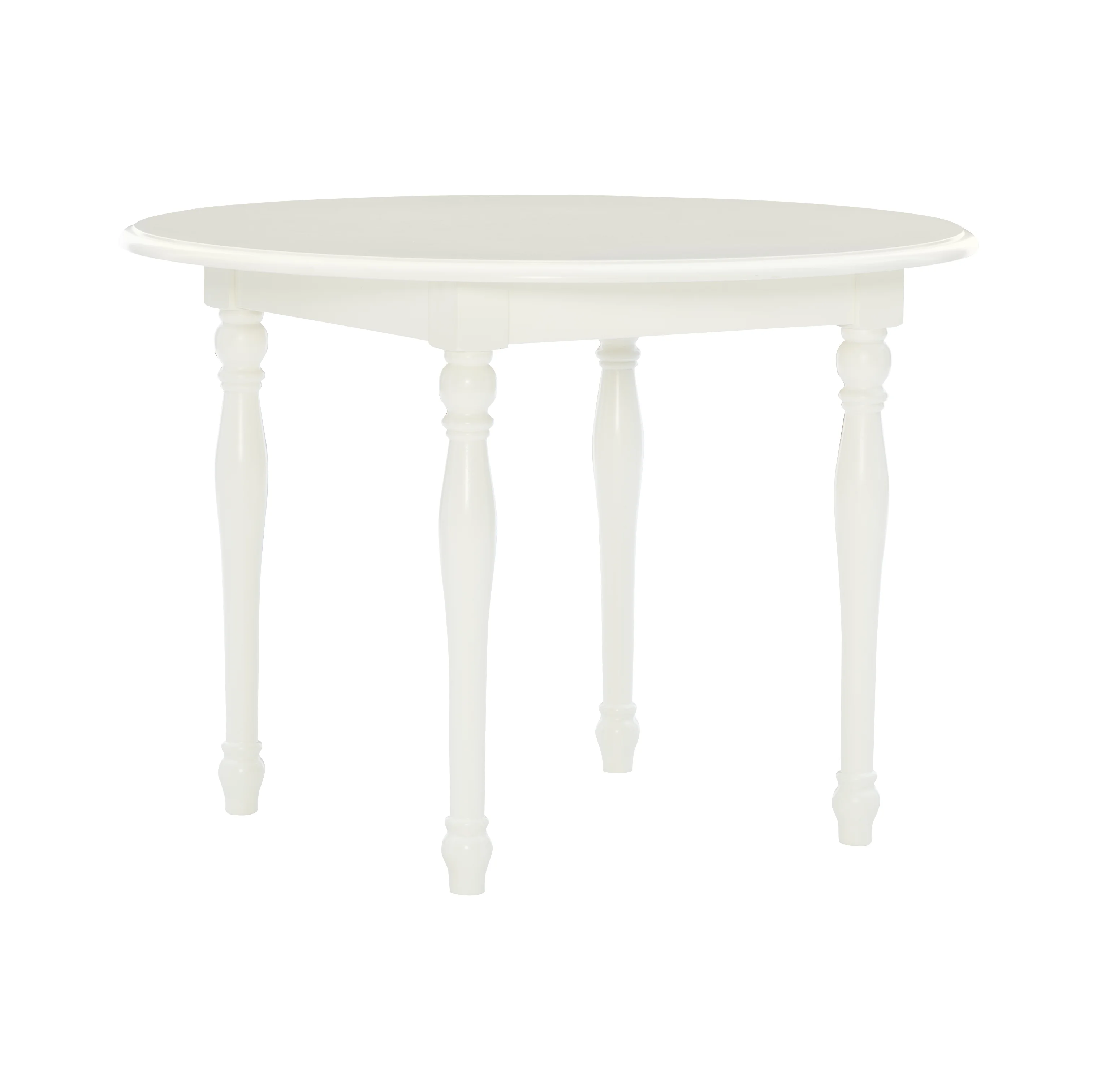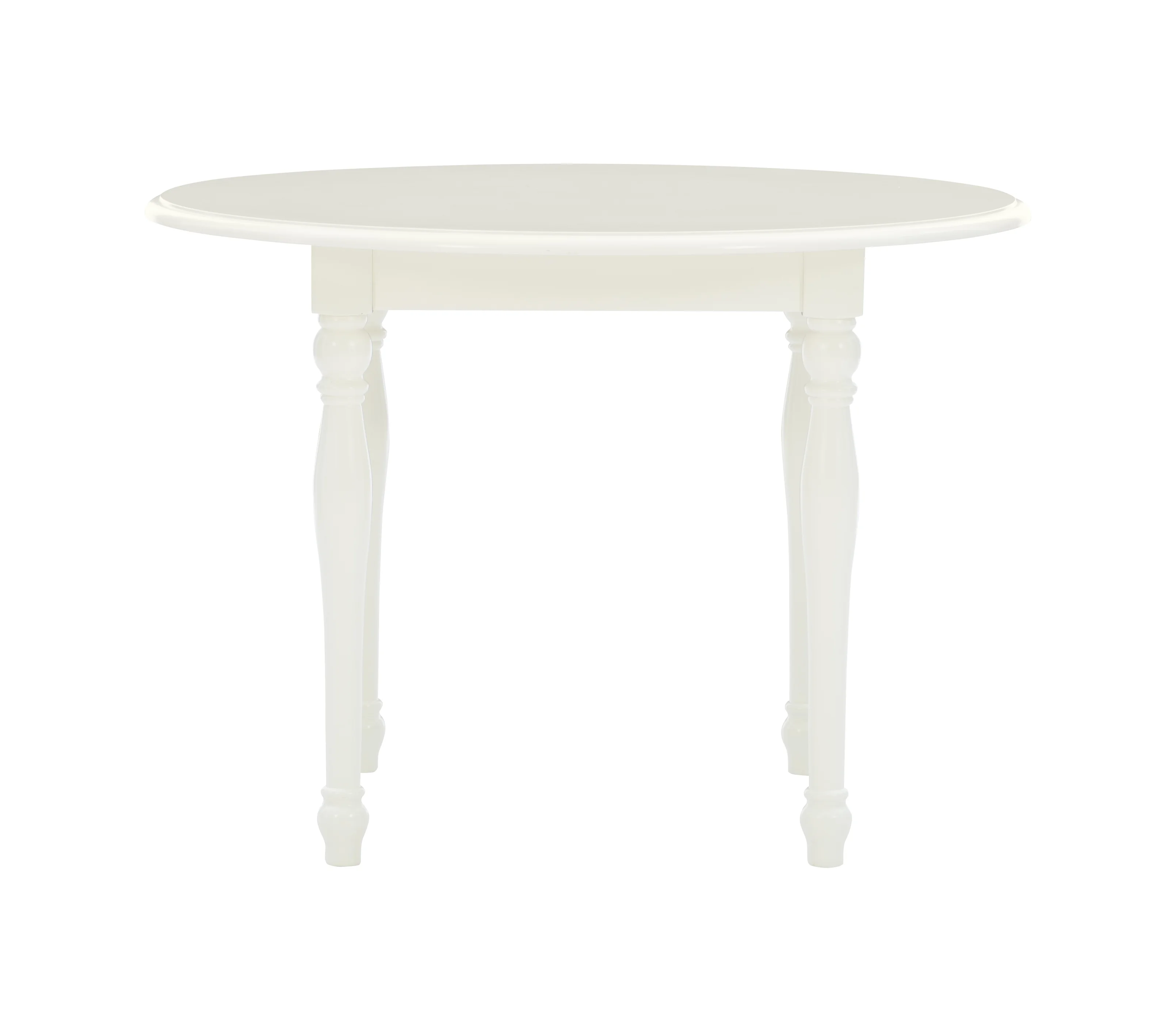Crafted from Solid Wood, Rubberwood and MDF Vanilla White Finish Set includes two chairs and one table Elegant turned legs Table: 30 x 30 x 21.5 Chairs: 11.75 x 15 x 26.25