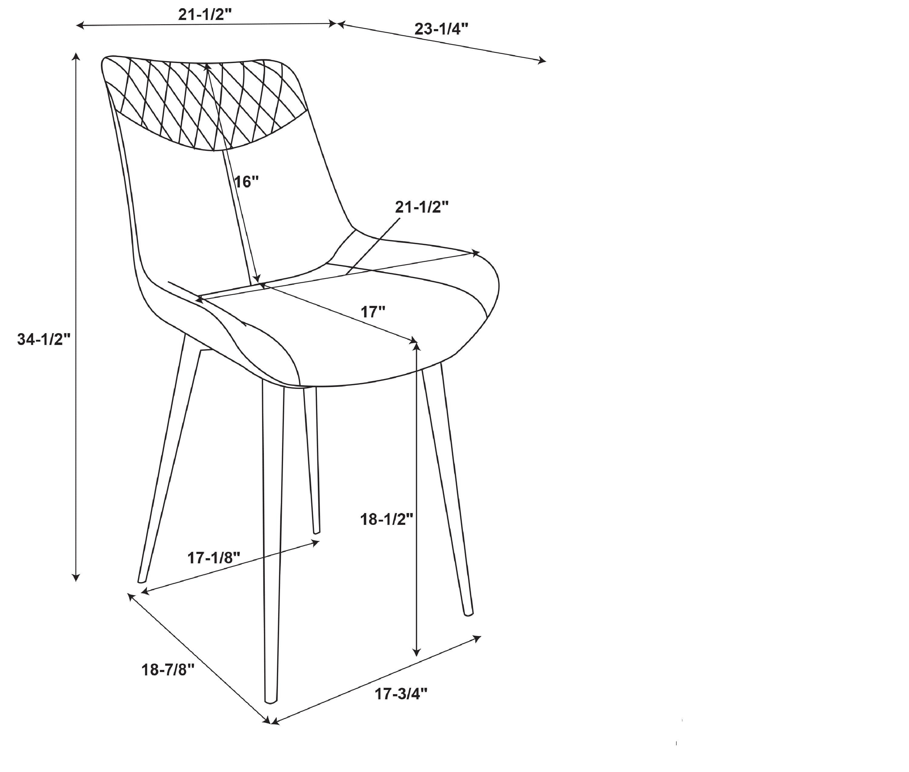 Purchase includes two chairs White Baseball Stitching Detail Black Metal Legs Curved Scoop Seat High Back Weight capacity: 275 lbs Assembled Dimensions: 21.5″ W x 23.25″ D x 34.25″ H Assembly Required