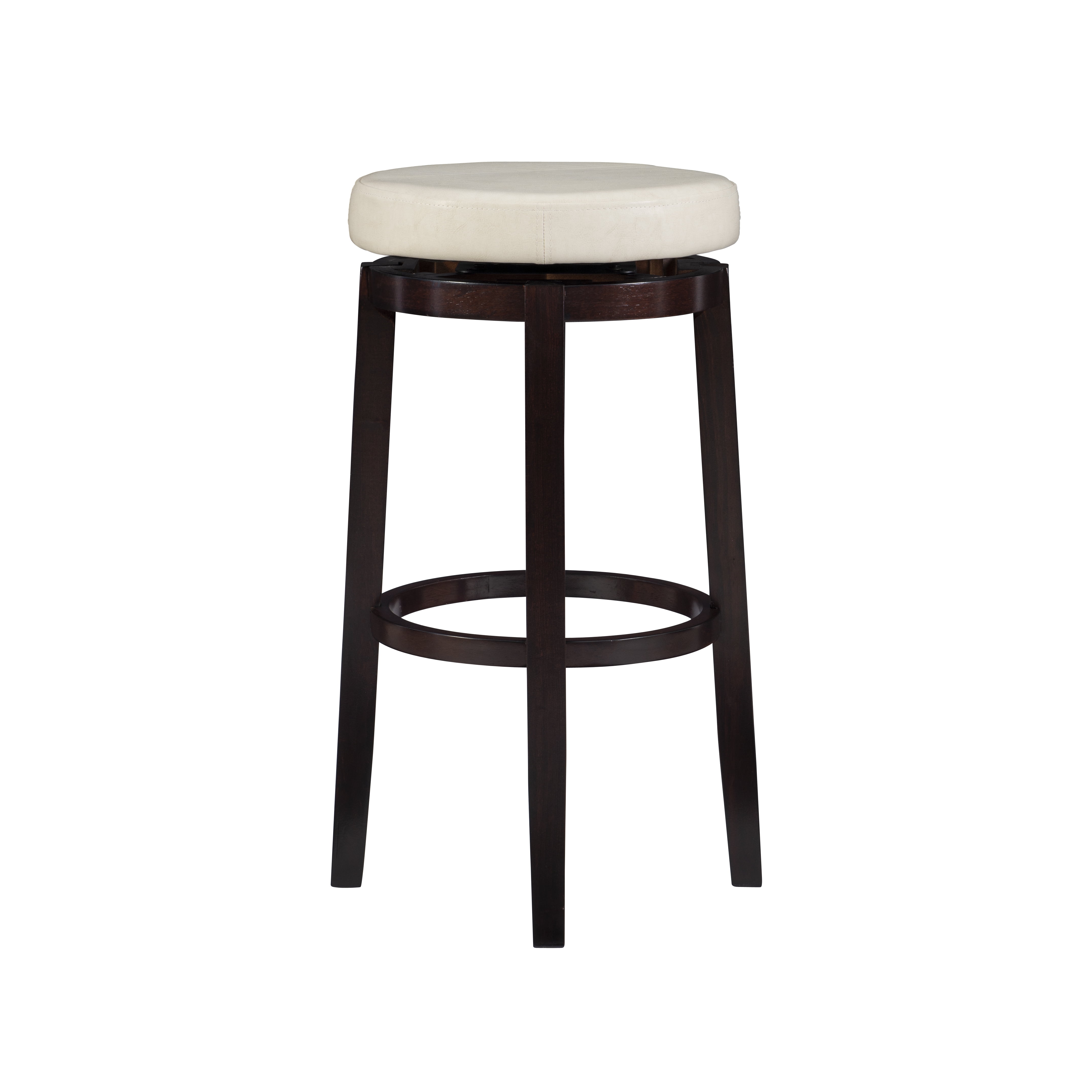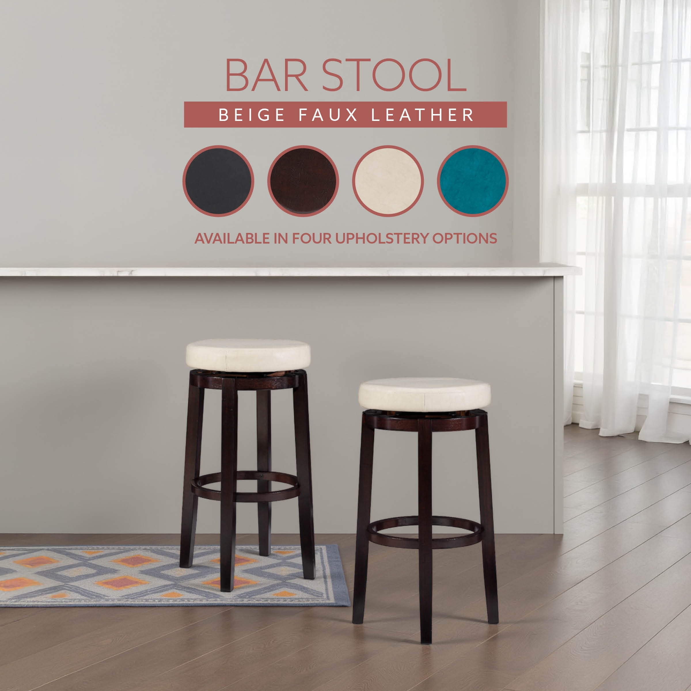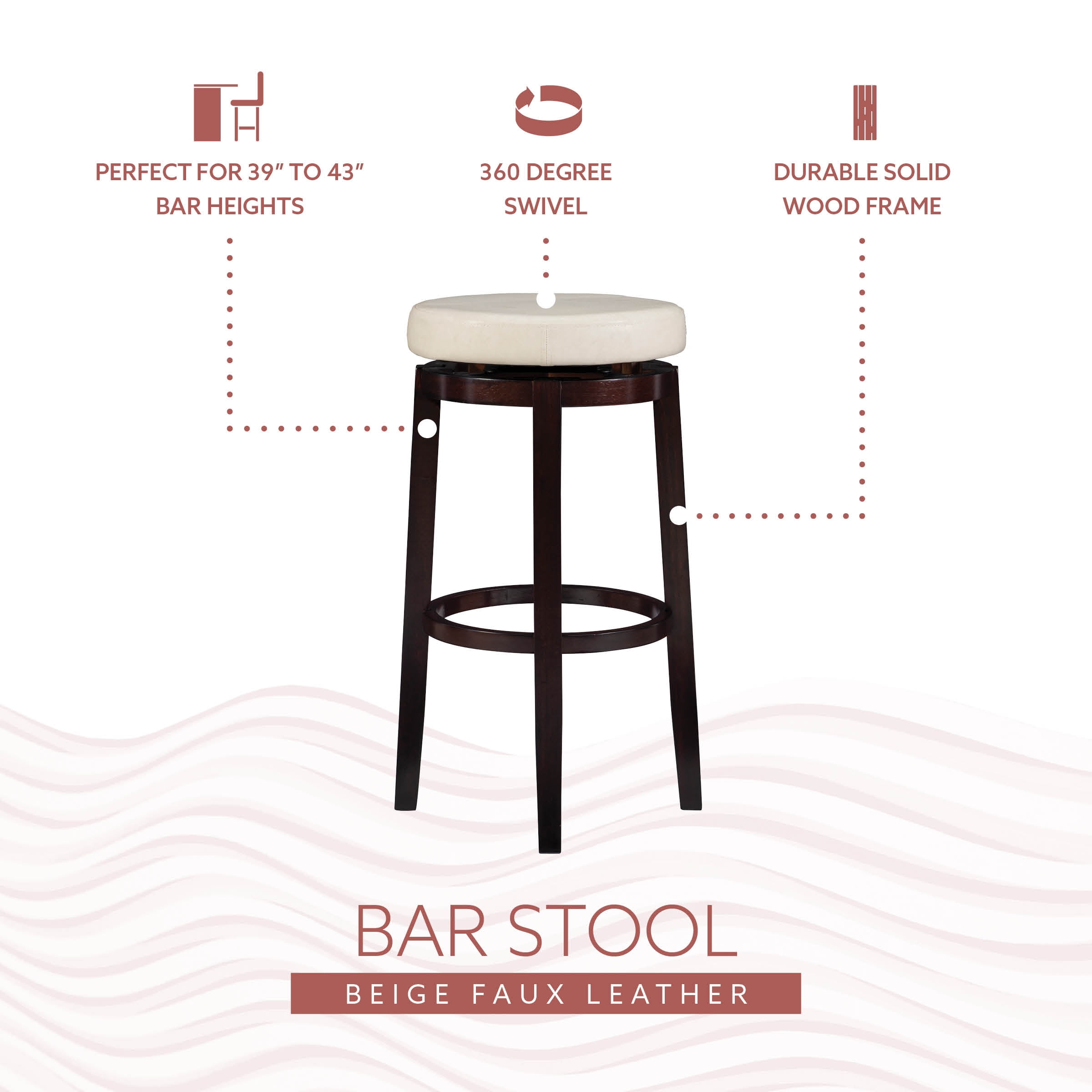 Crafted from Rubberwood and Bentwood giving it a sturdy base that supports weights of up to 350 lbs A brown finish features a lacquer coating, giving it a subtle sheen that accents the clean transitional design cues, and helps to protect it against the elements The seat is wrapped in beige faux leather, remaining durable and easy to clean for the life of the stool With a 31″ seat height, this stool is ideal for counters ranging from 39″ to 43″ in height, ensuring a comfortable seating experience Plush foam cushioning covers the seat, ensuring comfort while reading, dining, relaxing or entertaining guests 360 degree swivel seat. The seat rotates all the way around, providing comfort and convenience during meals and gatherings The integrated footrest measures 12″ from the floor, giving you additional flexibility and comfort Some Assembly Required. The stool arrives with some assembly needed. Simply attach the legs using the included hex bolts and washers, only a Phillips head screwdriver is required Designed for Residential Use Only. It’s not intended for commercial or heavy-duty environments, ensuring it remains a perfect fit for your living areas, bedrooms, and other personal spaces where you want to relax and enjoy