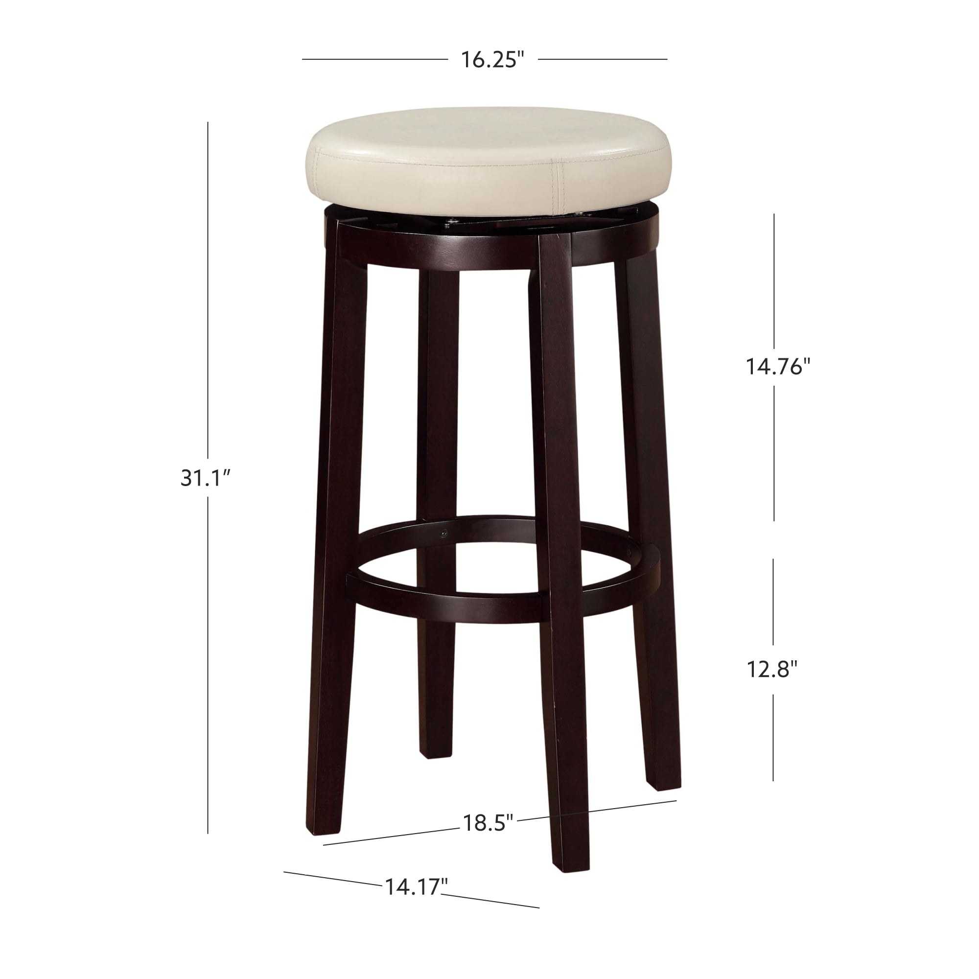 Linon Maya 31″ Rice White Faux Leather Swivel Bar Stool in Brown Wooden Frame
