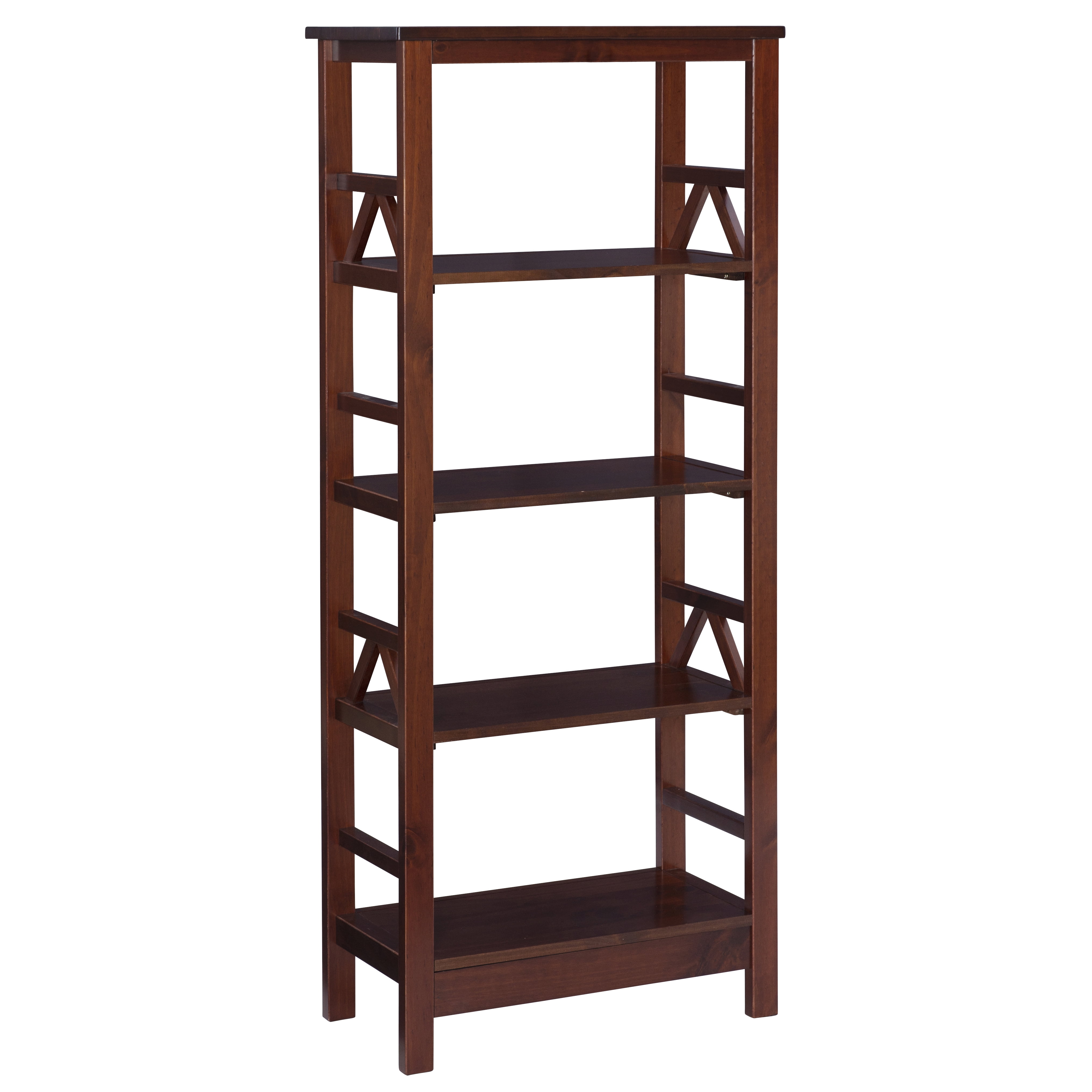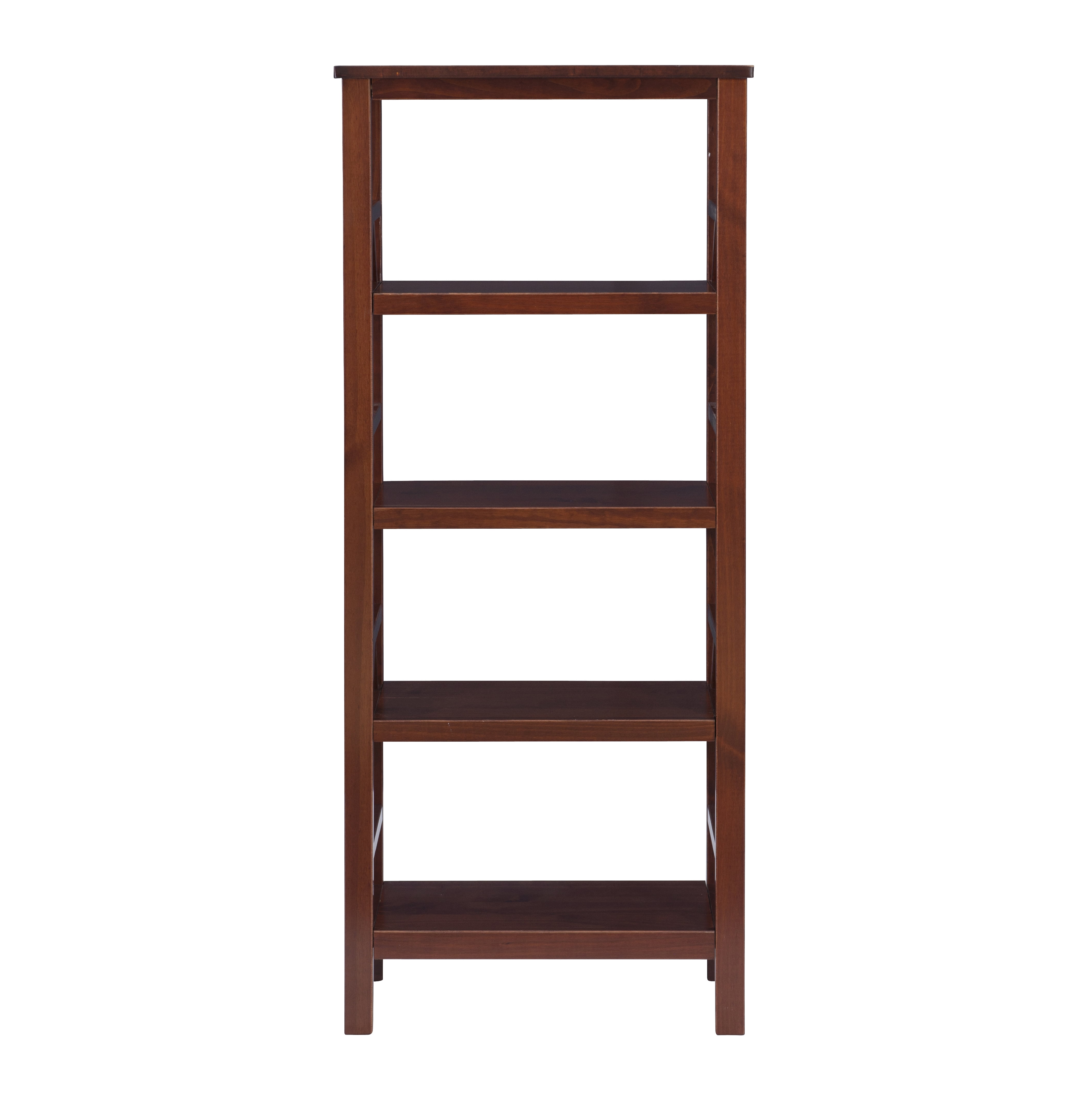 Antique Tobacco Finish Solid Wood Simple yet eye-catching design. 4 spacious shelves Provides ample storage space. Will easily complement your homes décor. Top Dimensions: 24″ x 12.25″, Shelves:19″ x 11″ x 11.5″ Assembly Required Assembled Dimensions: 23.25″w x 12.10″d x 54.75″h Weight Capacity: 30 Lbs On Each Shelf / 15 Lbs On Top Ships in 1 box