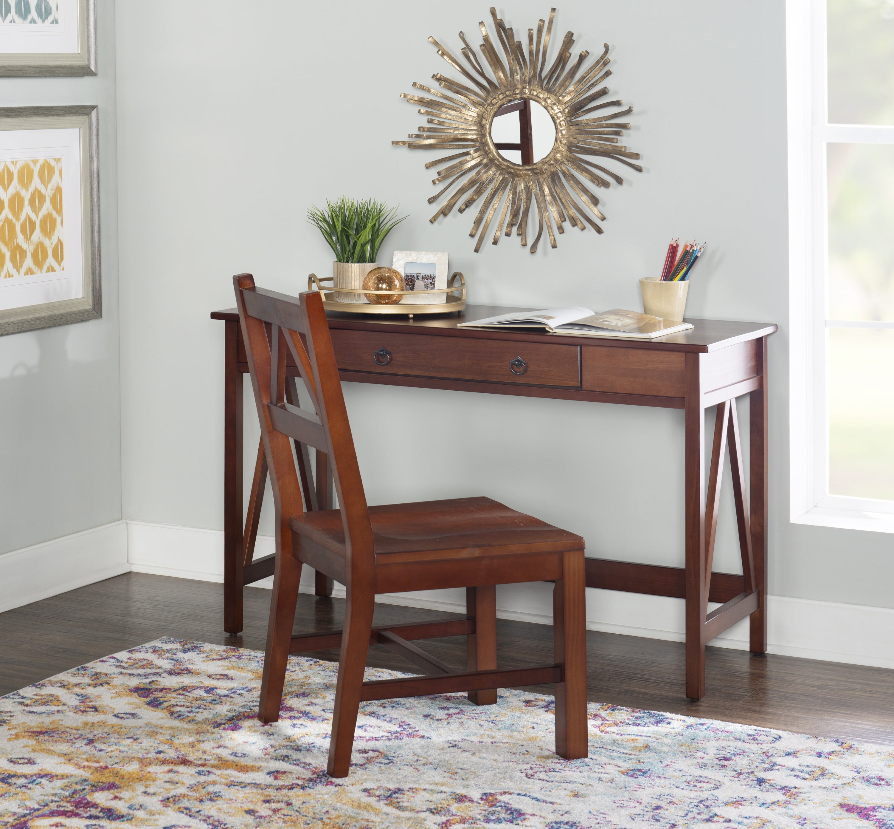 Linon Moreland 46″ Single Drawer Writing Desk, Antique Tobacco
