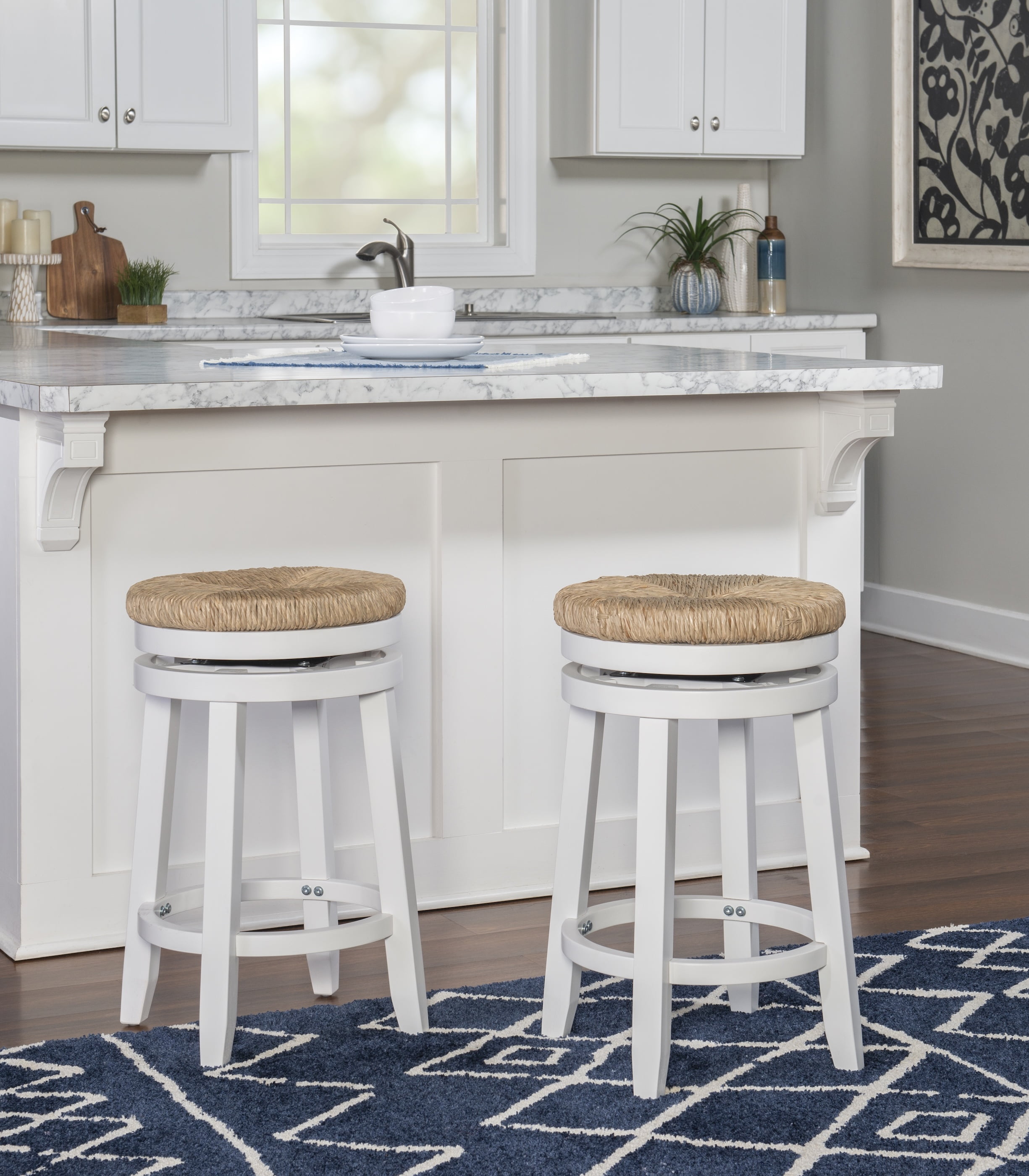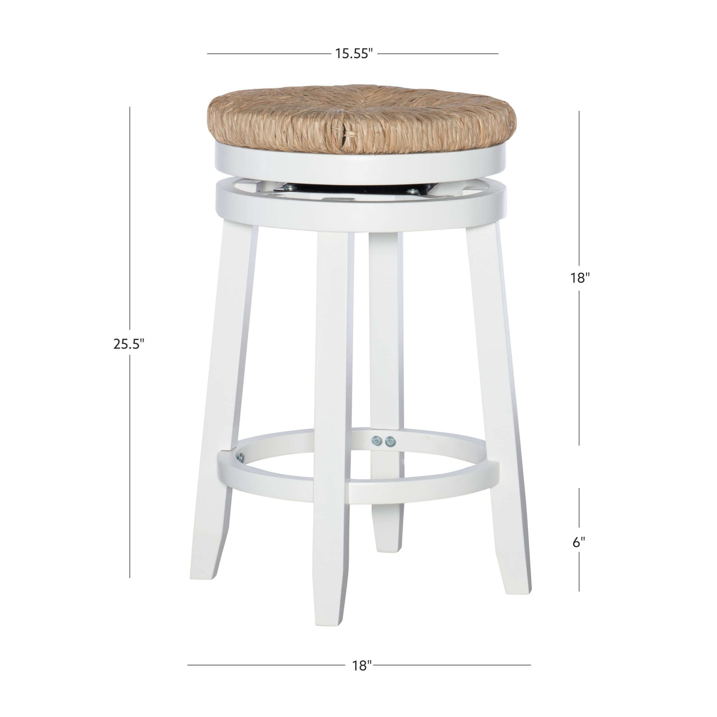 Crafted from 35% Rubberwood, 30% Plywood, 20% Sea Grass and 15% Hardware White Finish Natural 100% Sea Grass Swivel Seat Counter Height 360 Degree Swivel Seat Dimensions 15.6″ x 15.6″ x 2.17″