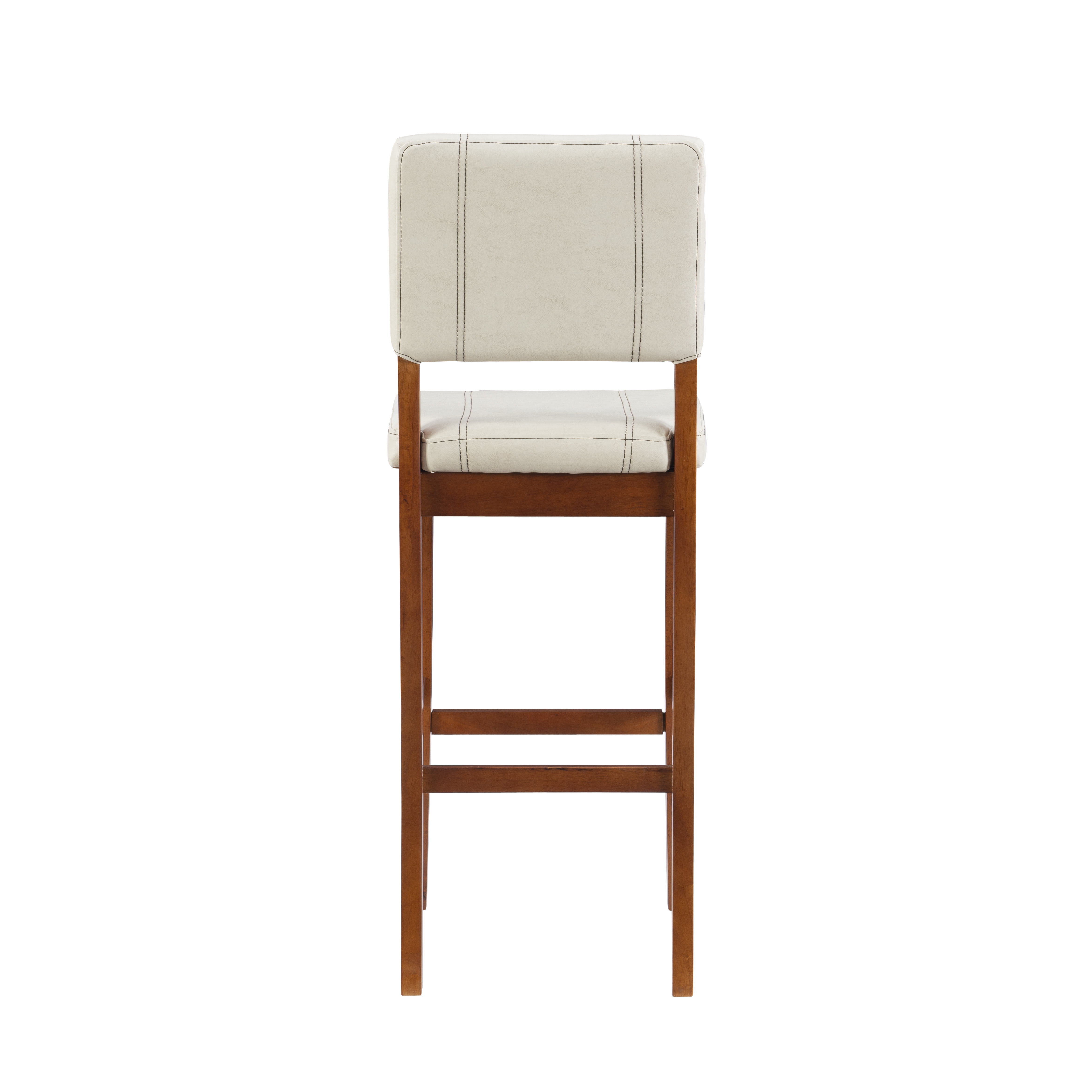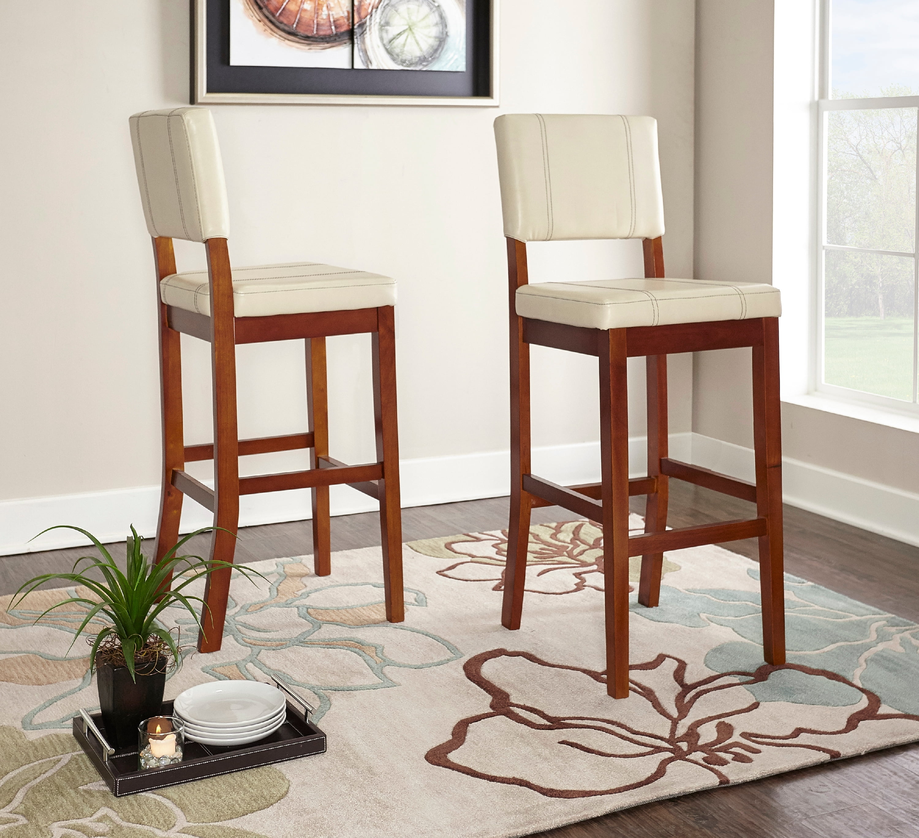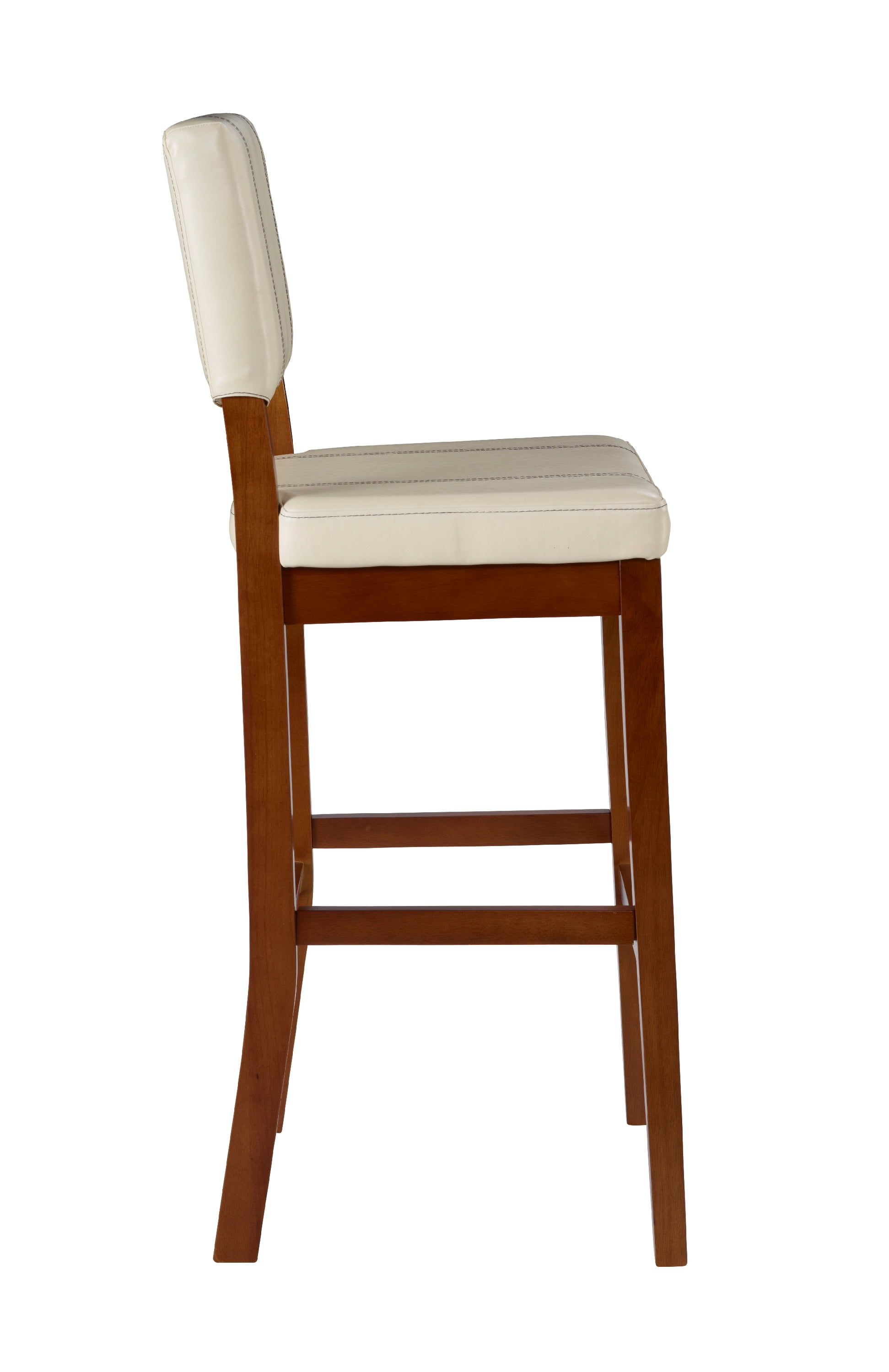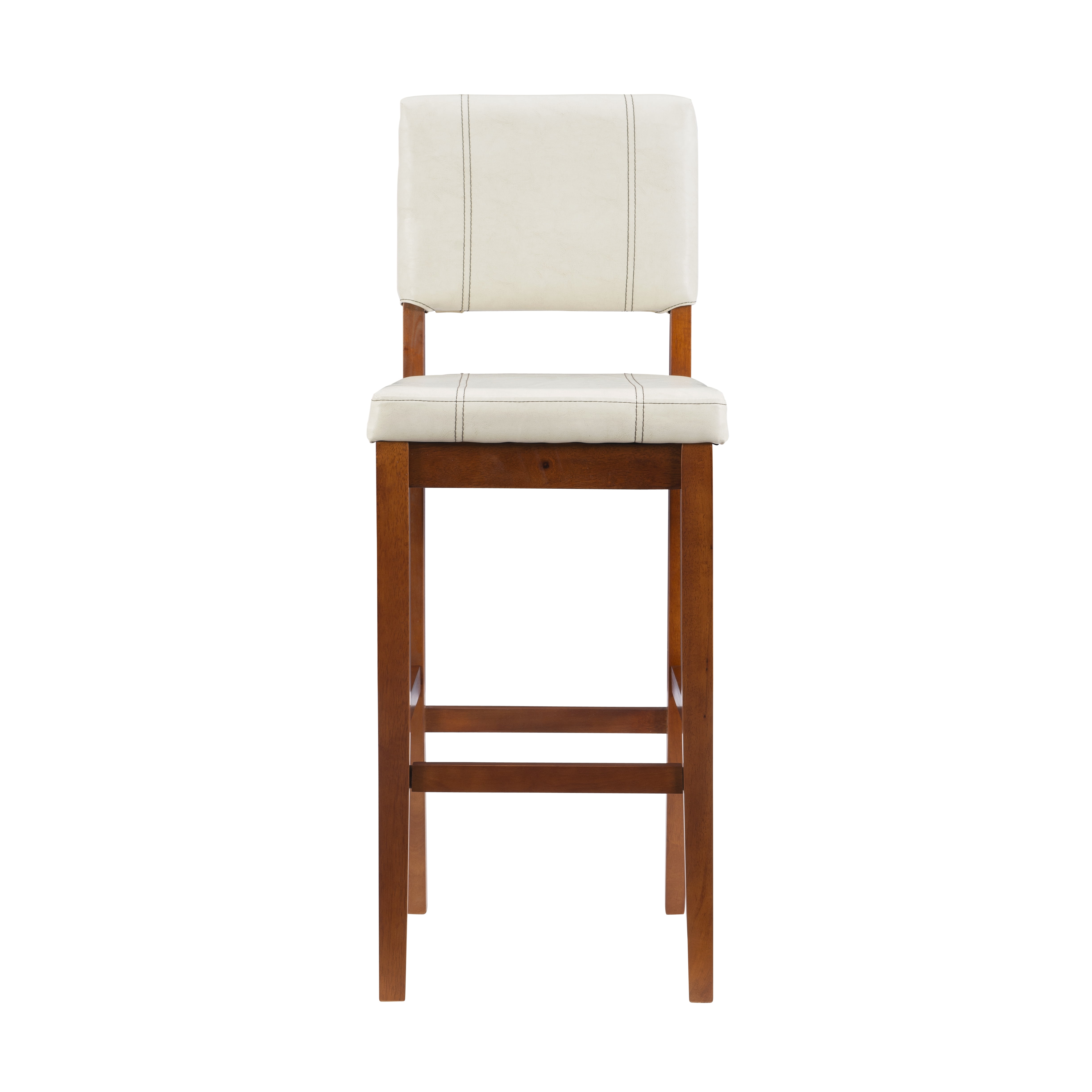 Linon Mulberry Padded Bar Stool, 30″ Seat Height, Medium Dark Walnut Finish with Cream PVC Fabric