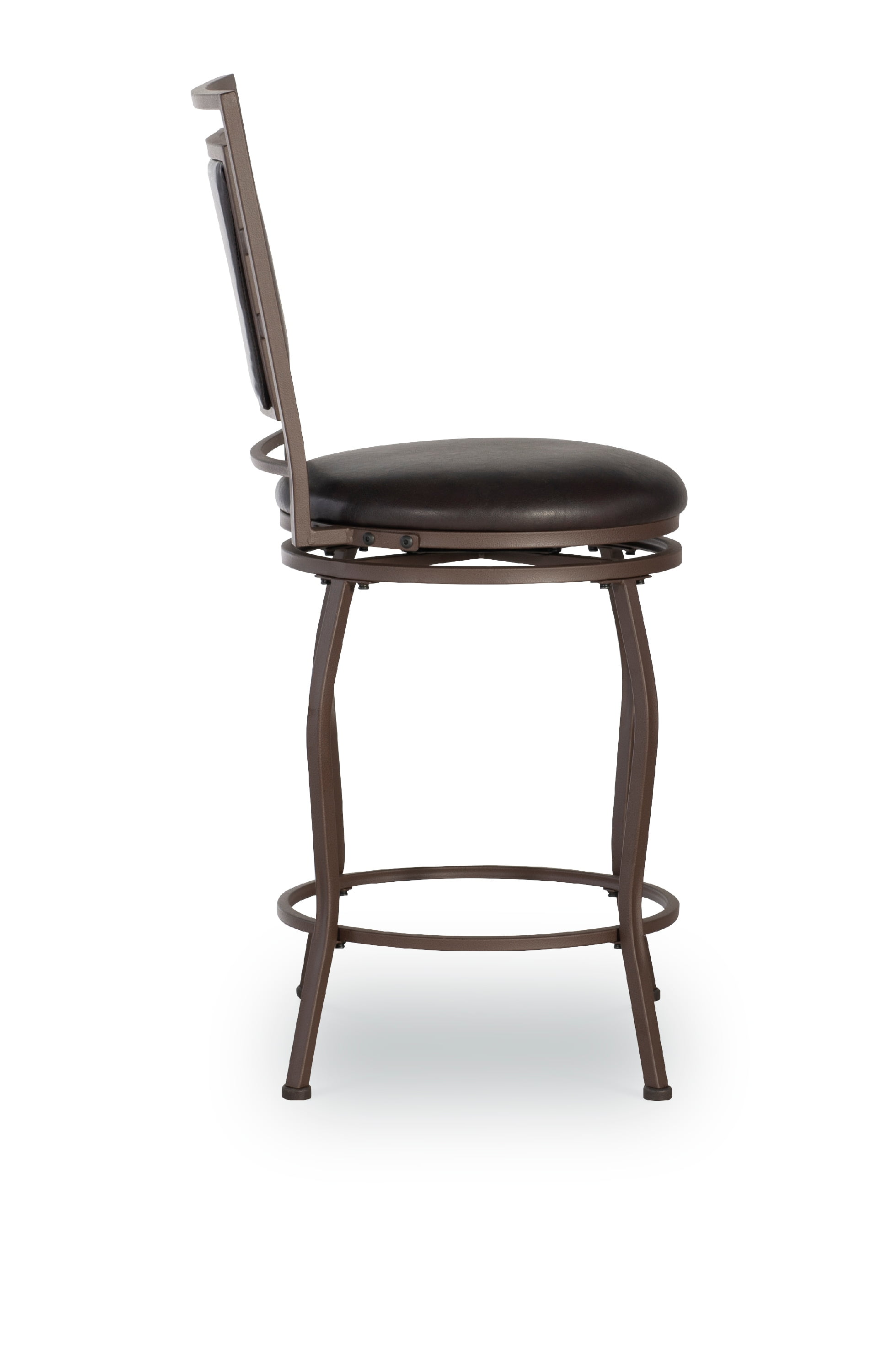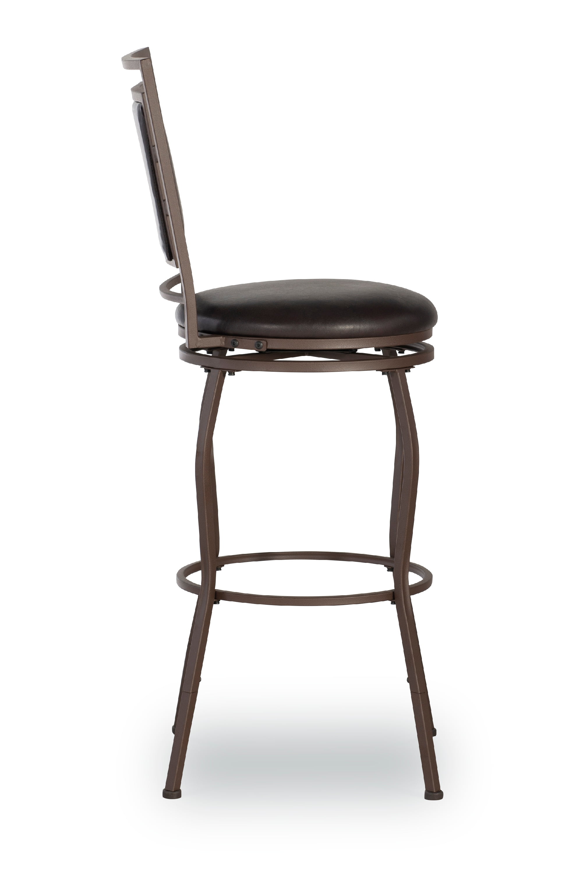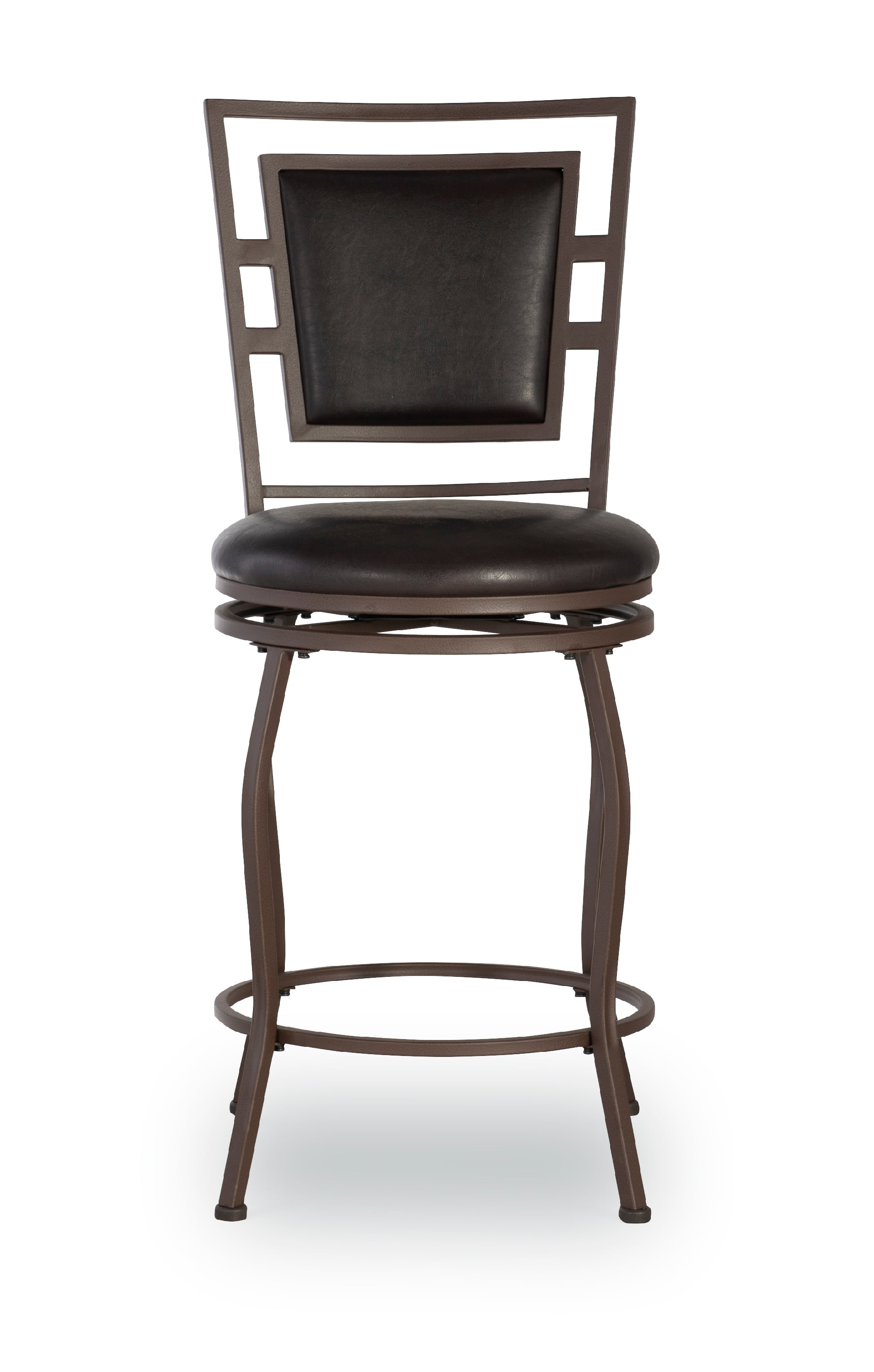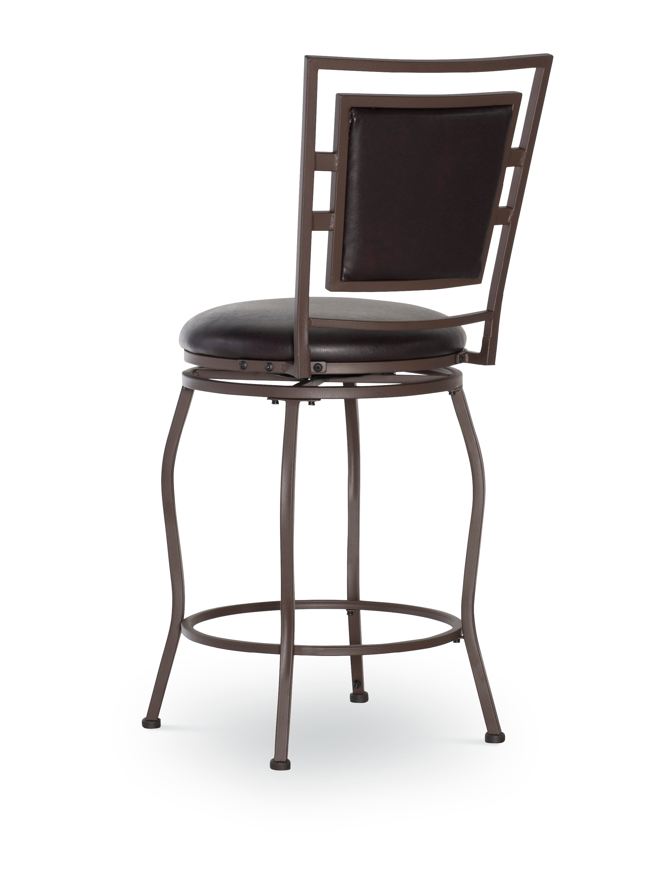This adjustable leg stool is a sleek modern addition to any counter, bar or high top dining table. This stool comes with adjustable screw-on legs which will allow you to take it from a counter height to a bar height stool in no time. A dark brown finish compliments the dark chocolate faux leather, and a swivel seat provides versatility and functionality to the piece. Crafted of metal, the stool is sturdy and durable. 275 Pound weight limit. Stool Dimensions: 16″ W x 18″ D x 38.5-44.75″ H. Item Weight: 51.48 lbs. For indoor use only.