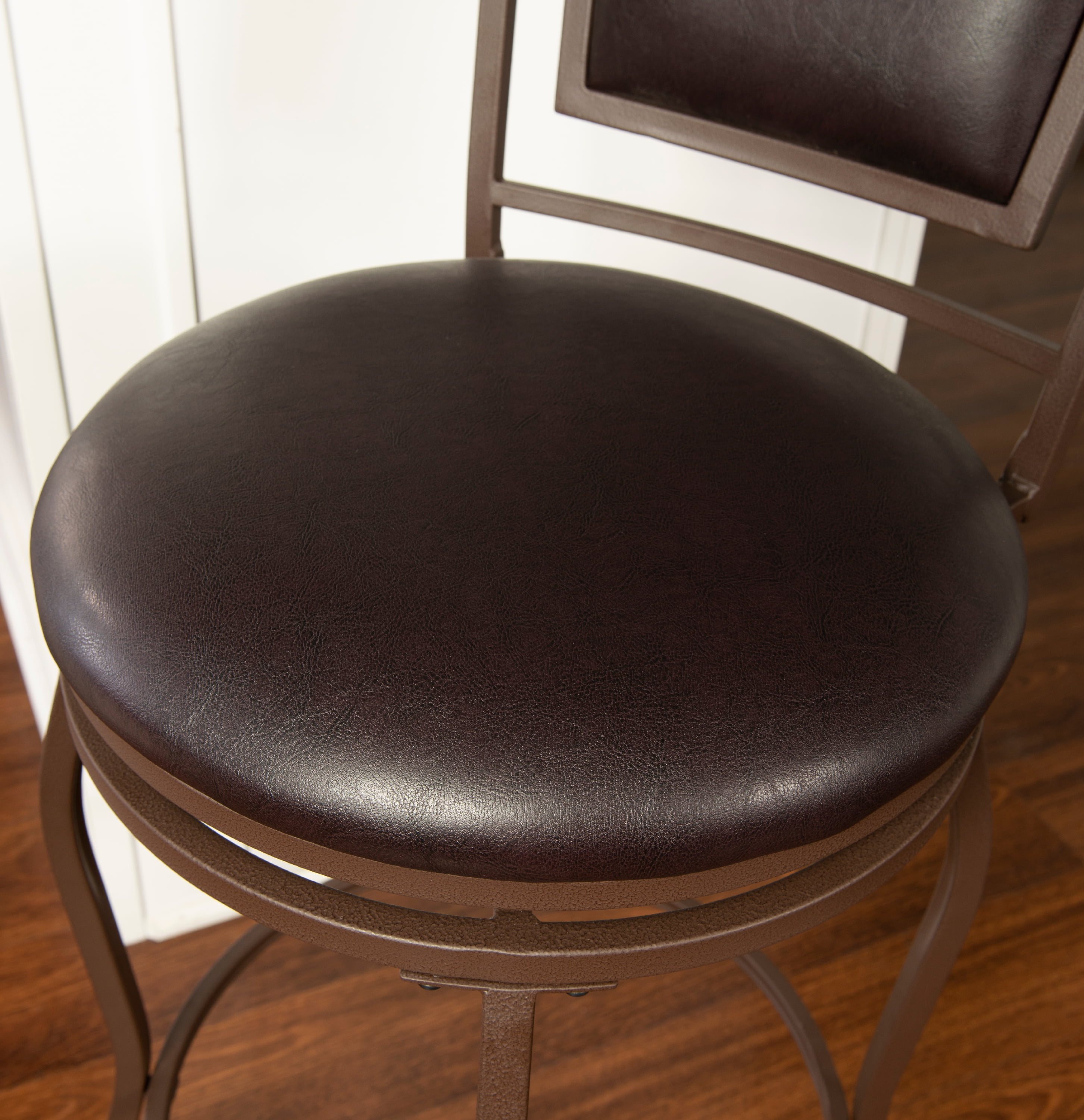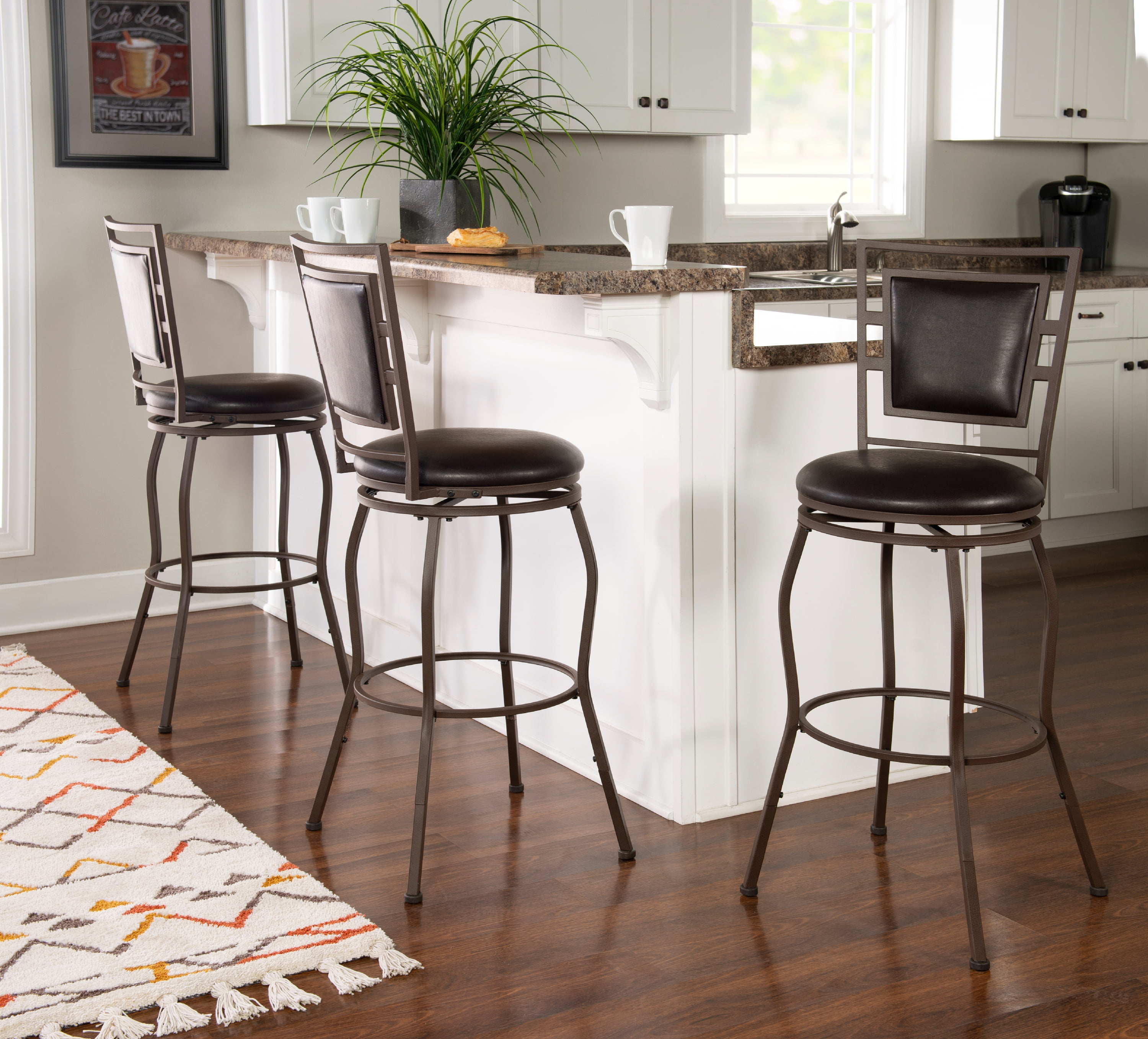 Linon Nora 24-30″ Indoor Adjustable Metal Swivel Bar Stool, Set of 3, Brown/Brown Faux Leather