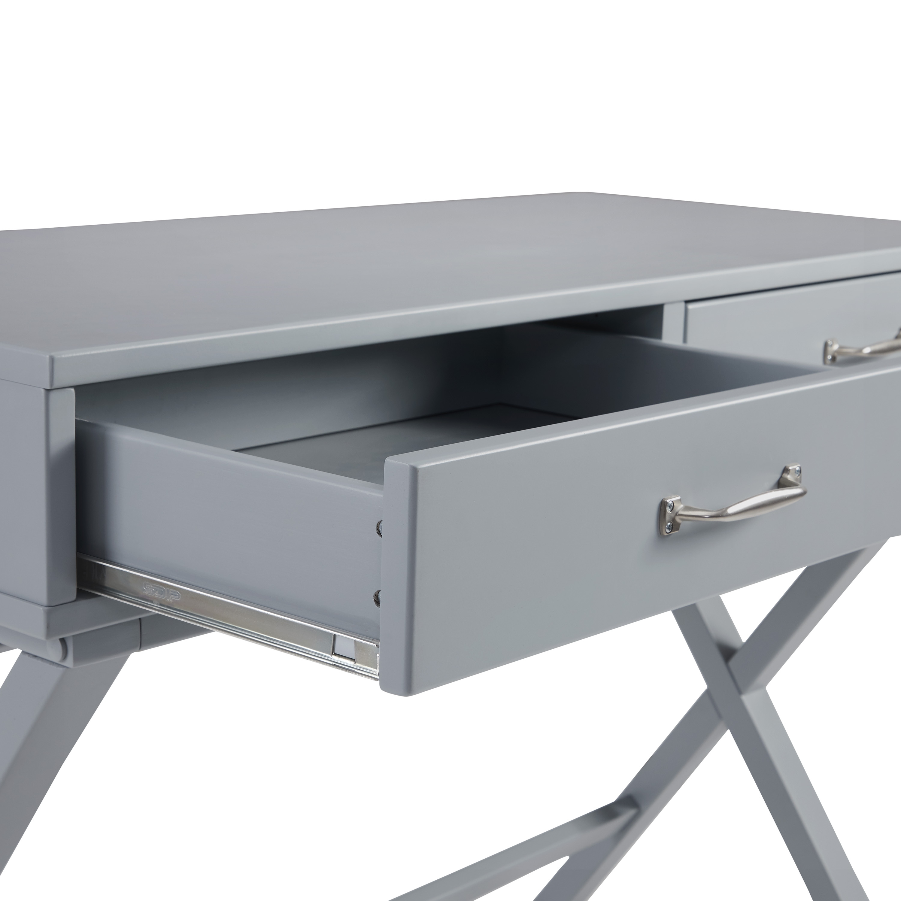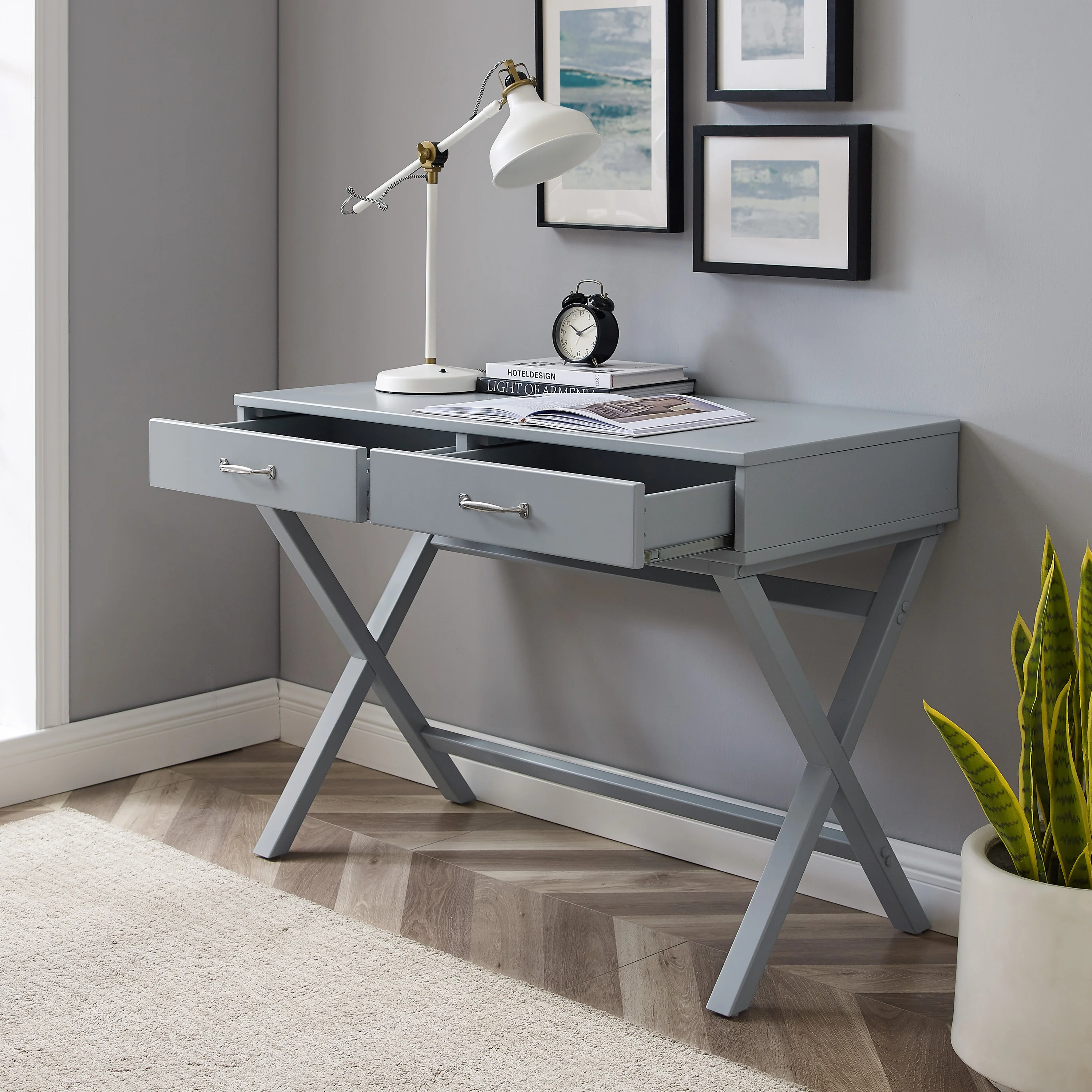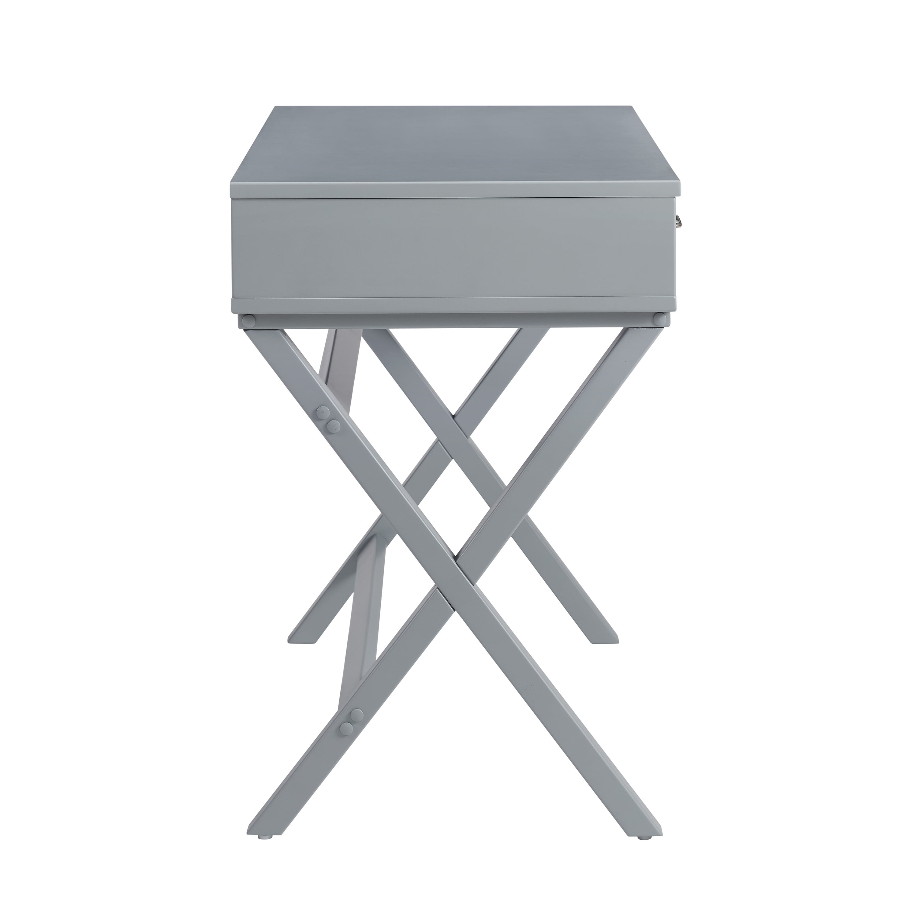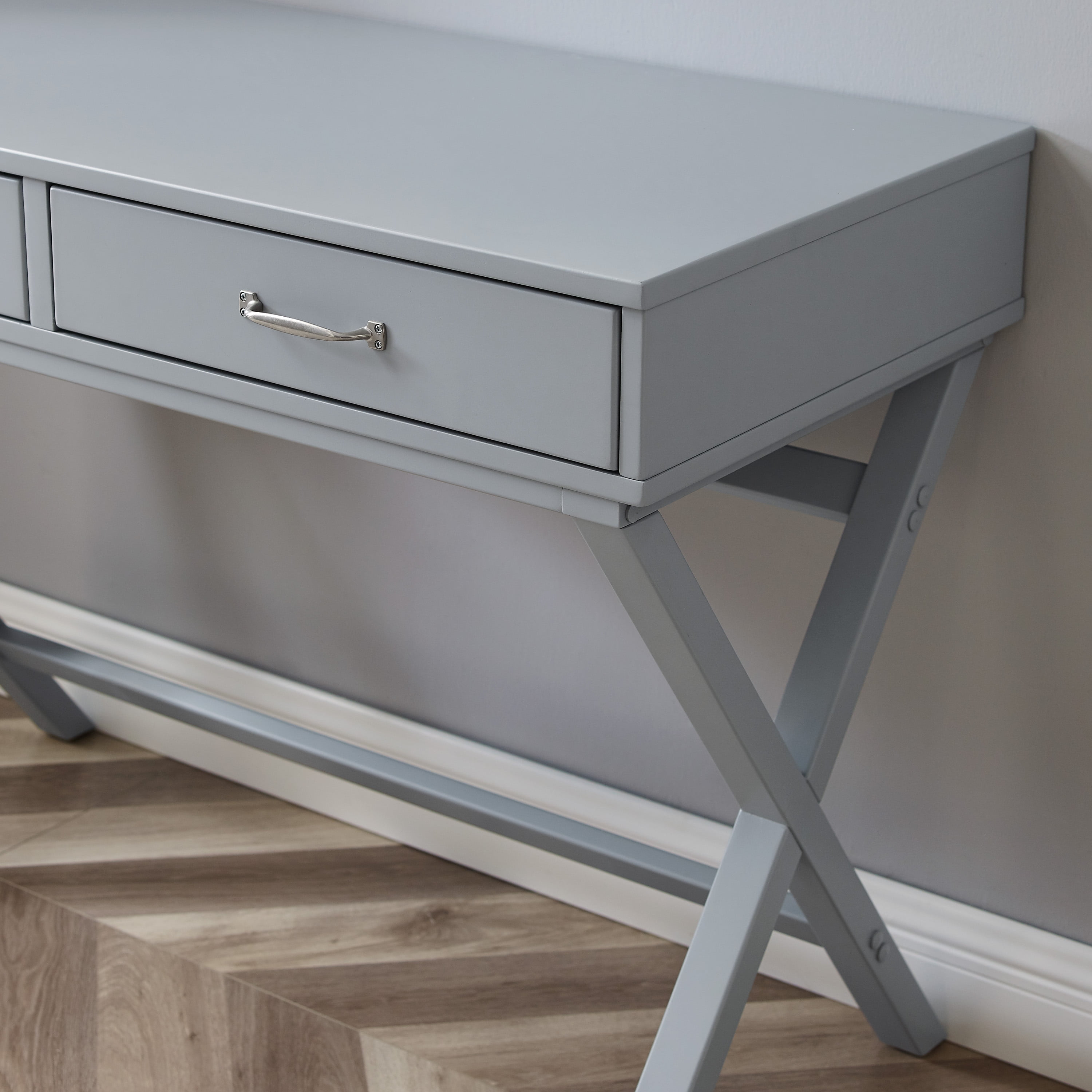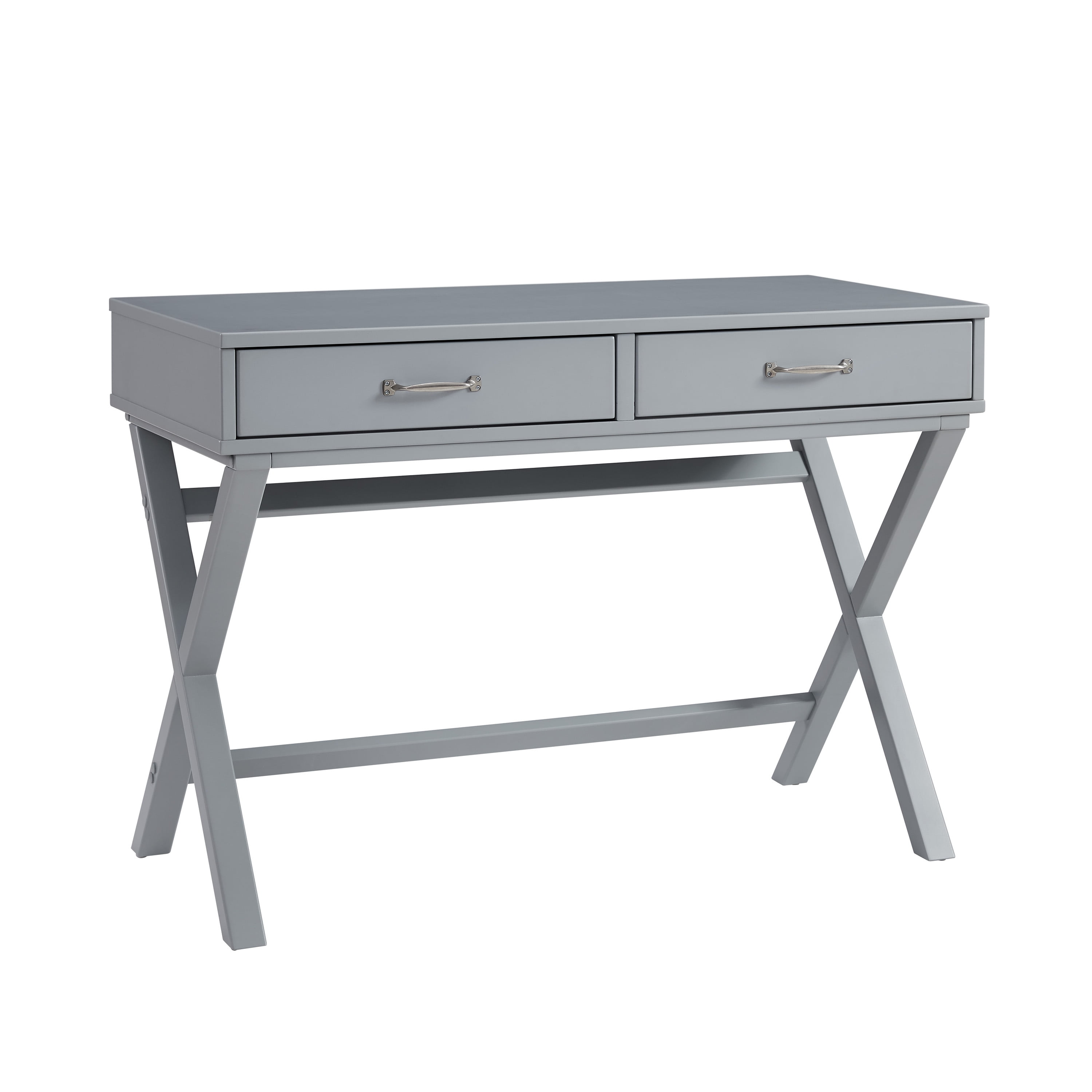 Linon Norfields 2-Drawer X-Frame Desk, 42″ Wide, Gray Finish