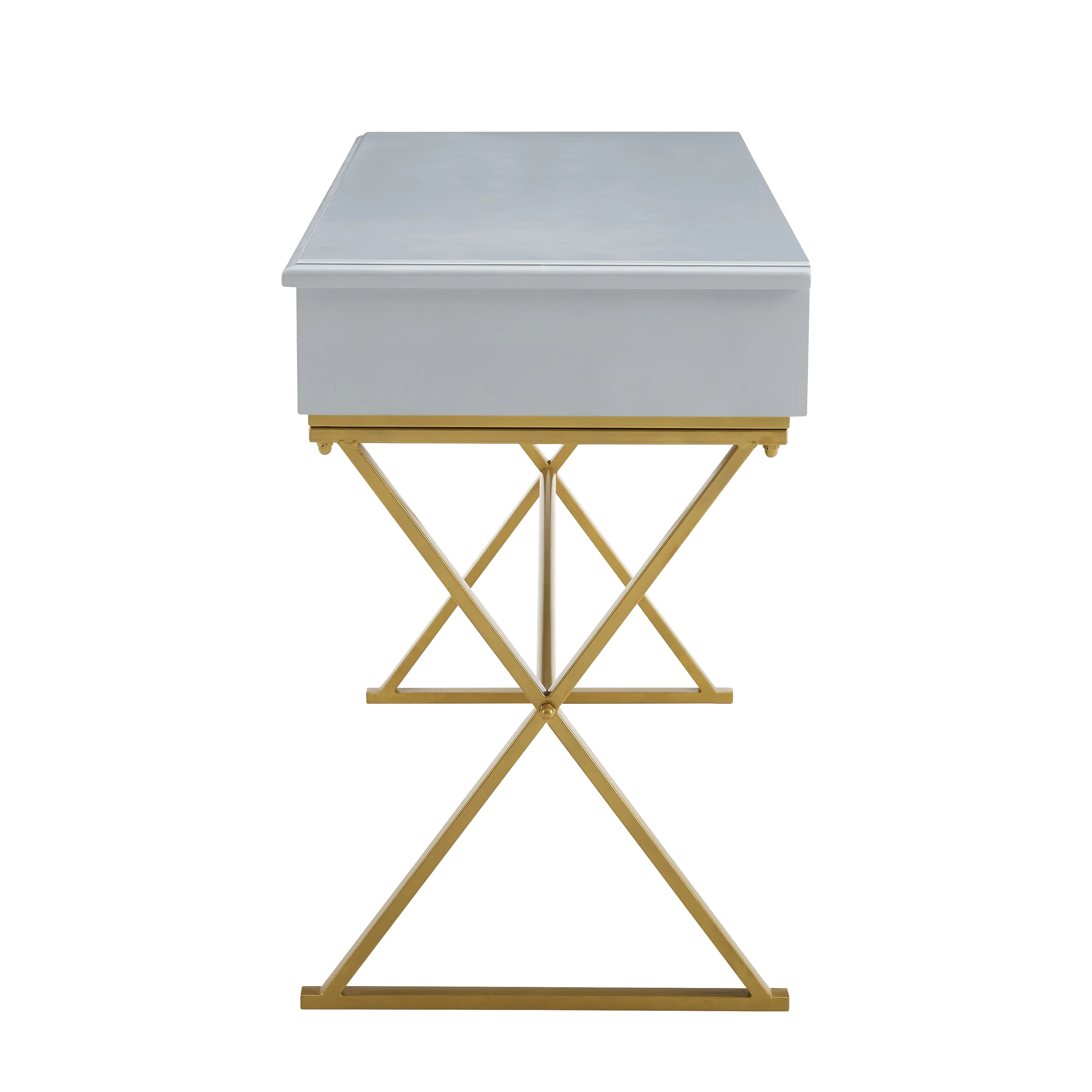 Linon Paynter 2-Drawer X-Frame Desk, 47.25″ Wide, Gray Finish with Gold Metal Legs