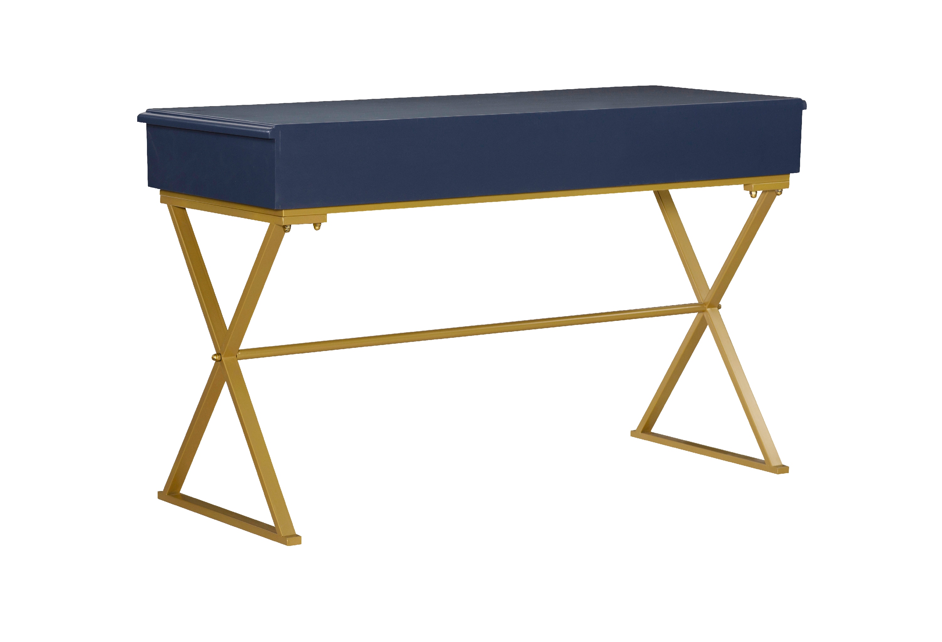 Linon Paynter 47″ Campaign Style Metal Writing Desk with 2 Drawers, Blue/Gold