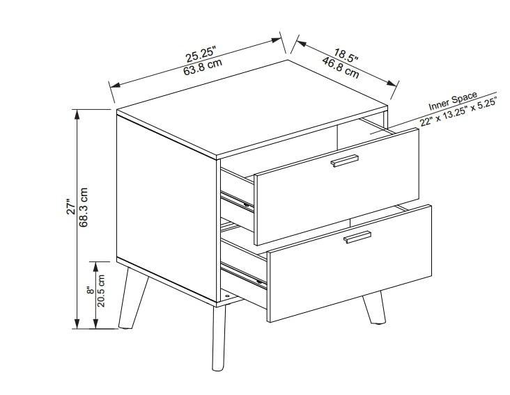 • Assembled Dimensions: 25.25″ w x 18.5″ d x 27″ h