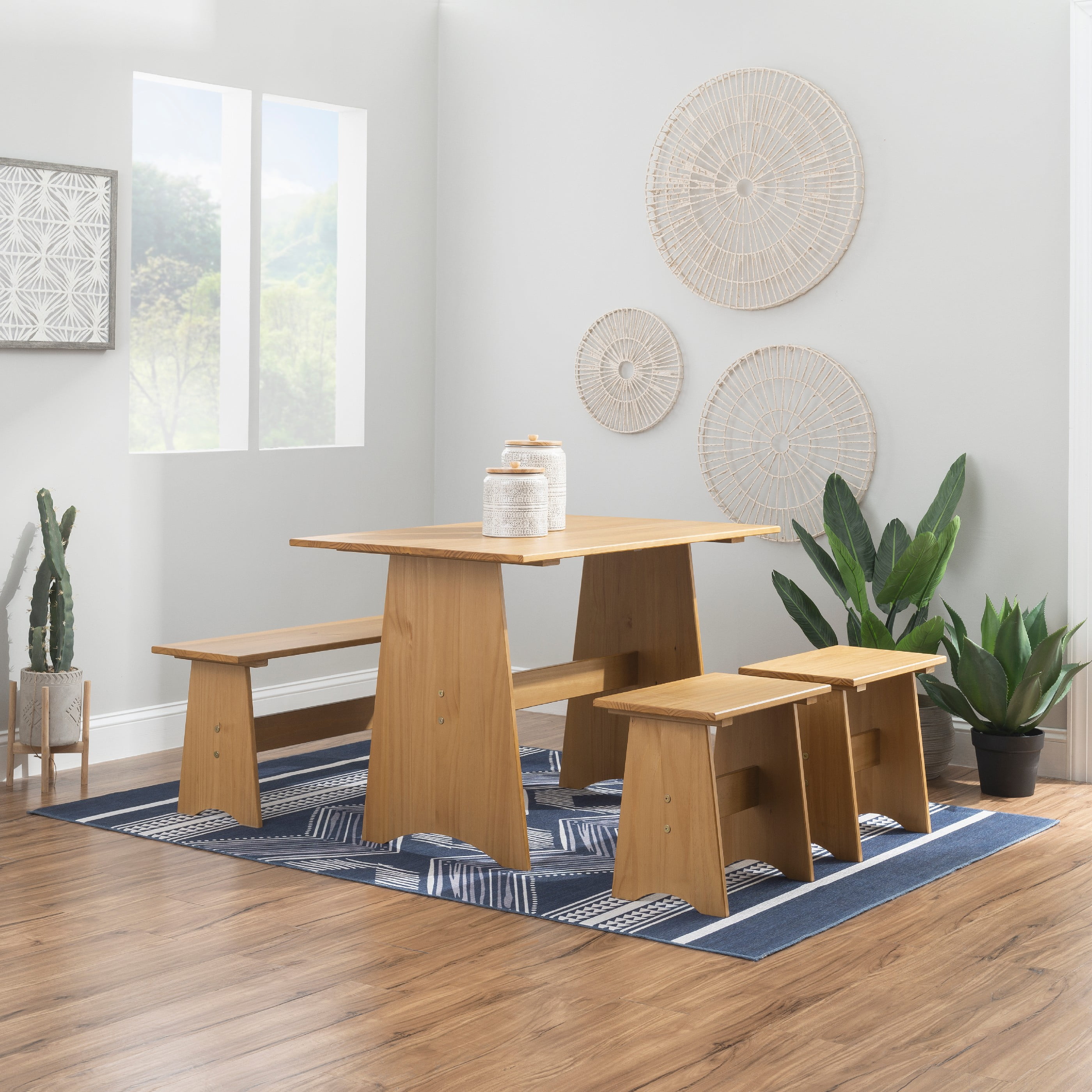 Linon Rectangular Solid Pine Rustic Kasey Dining Bench with Backless, Honey, Set of 2