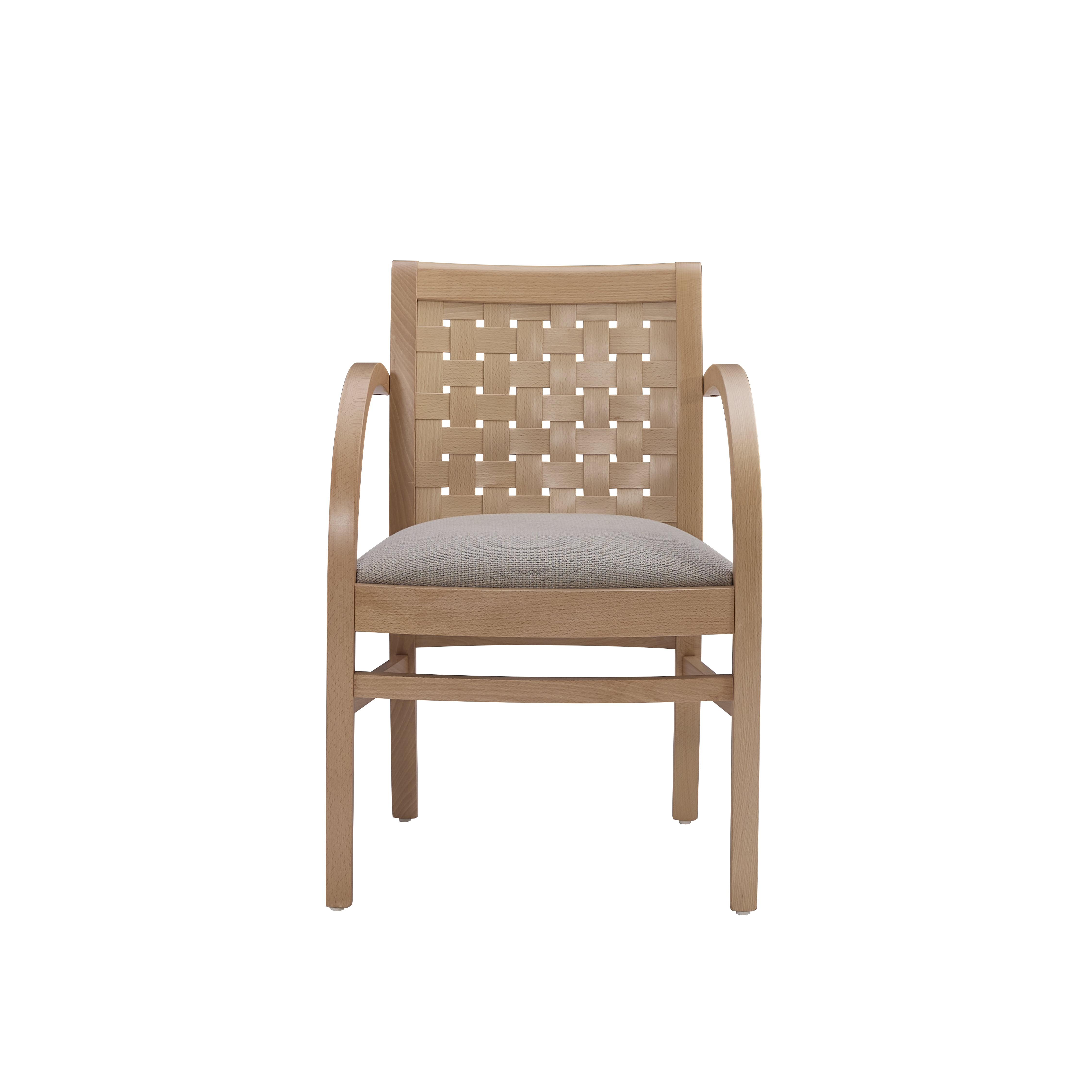 Frame Constructed Of Solid Beechwood For Ensured Strength And Stability Woven Wood Backrest Offers A Modern Coastal Flair Dramatic Bend In Arms Makes For An Eye Catching Accent Cream Linen Like Polyester Upholstery Is A Breeze To Clean Supports Up To 300 Lbs Arrives Fully Assembled Supports up to 300 lbs, Commercial Grade Construction Assembled Dimensions: 24.5 L x 20.75 D x 33.5 H Ships in one box
