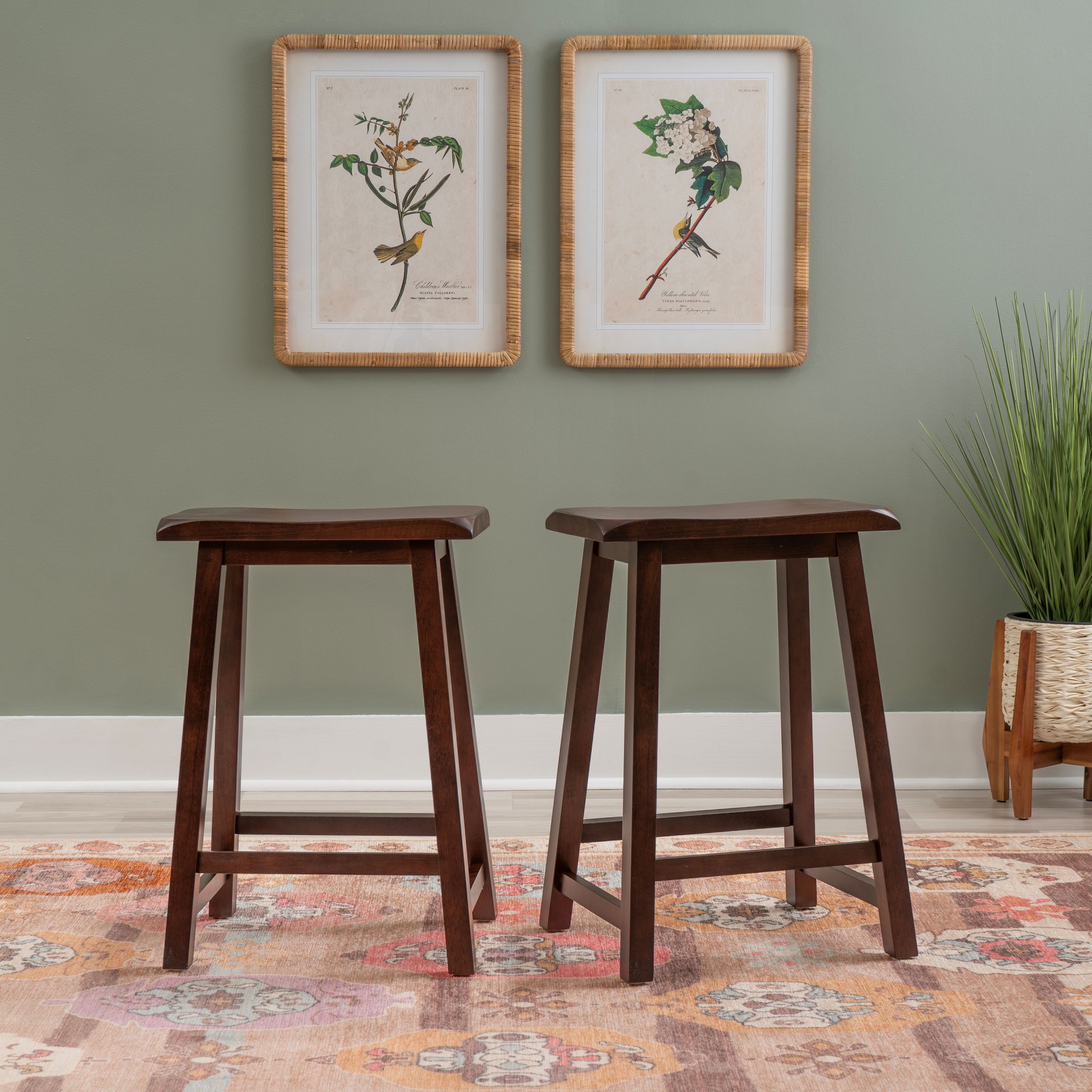 Linon Rickard 24″ Backless Indoor Saddle Seat Counter Stool, Dark Brown