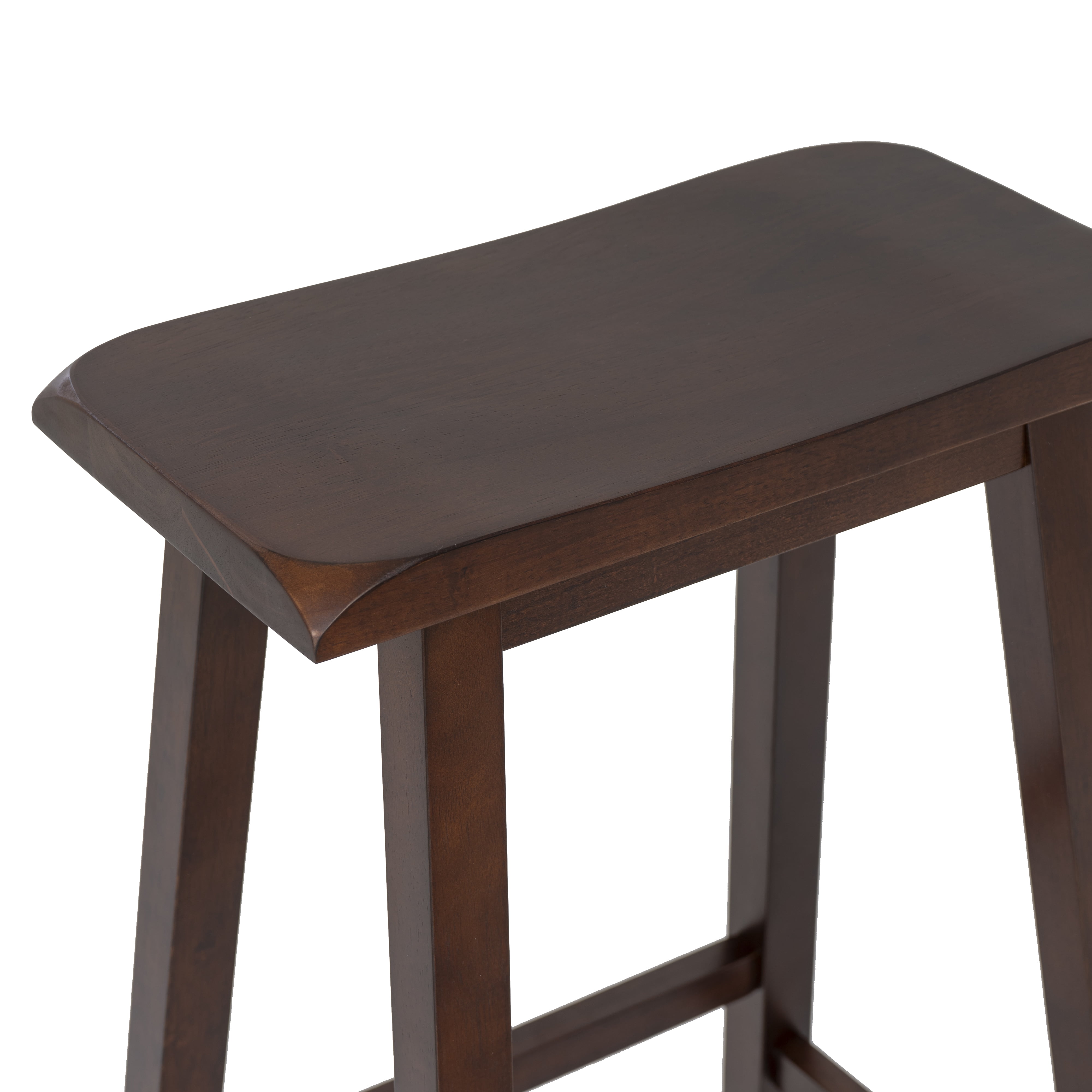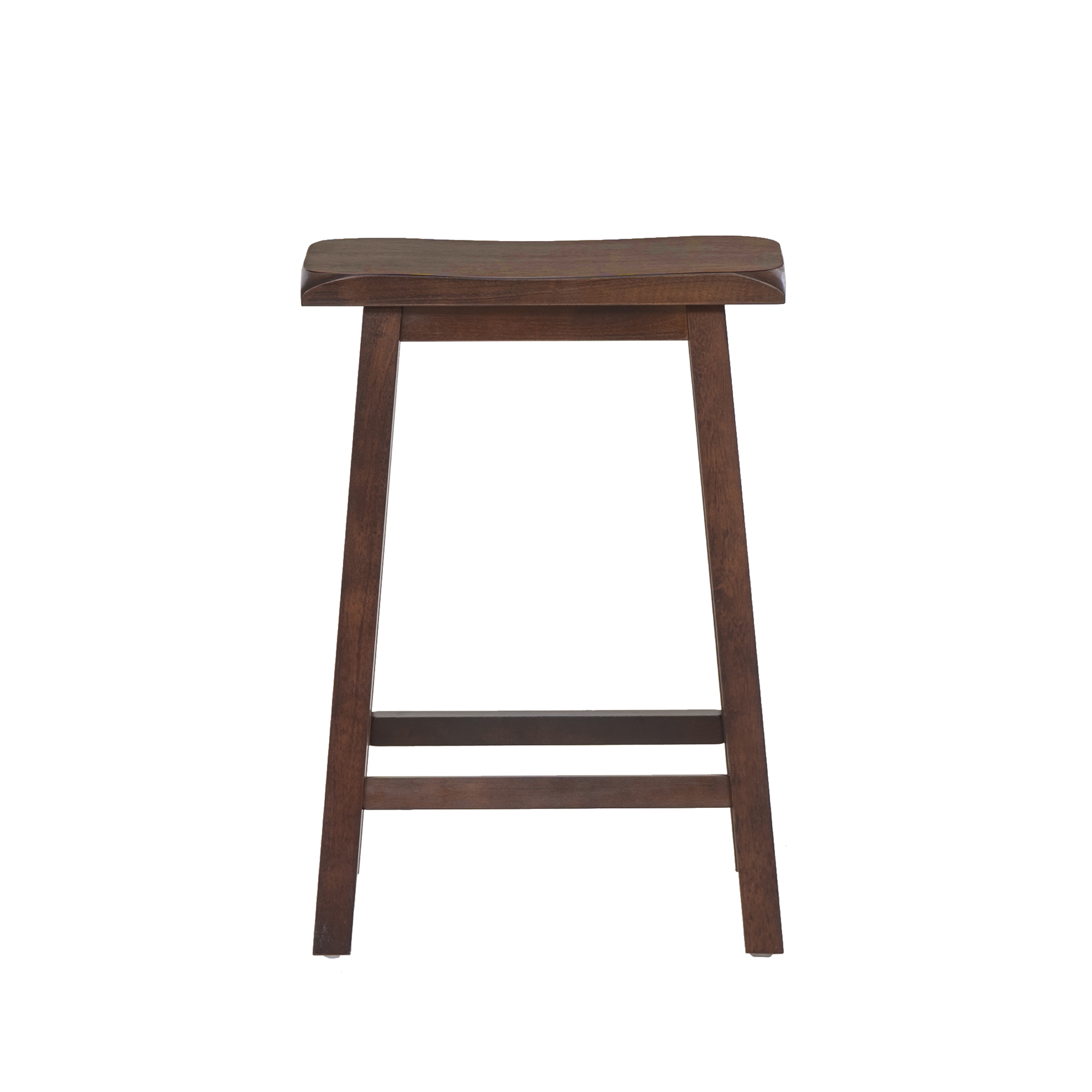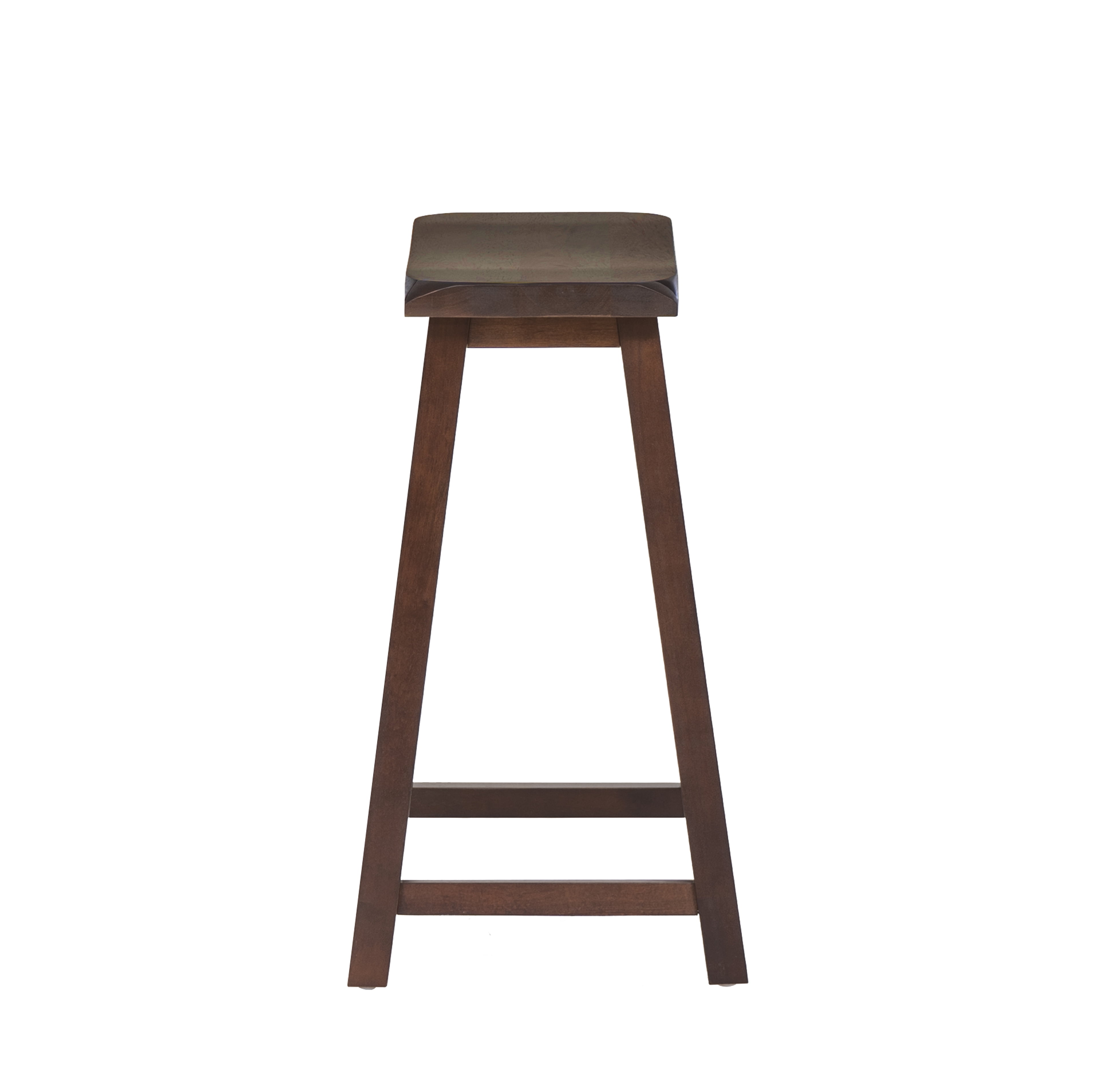 The classic design and style of the 24″ saddle stool easily complements any home’s décor. The sloping seat adds comfort to the stool while the four footrails provide stability and durability. Finished in a dark brown, this piece is an easy addition to any color scheme. Ideal for any home bar, counter or high top table. 275 Pound weight limit. For Indoor use only. Condition: New