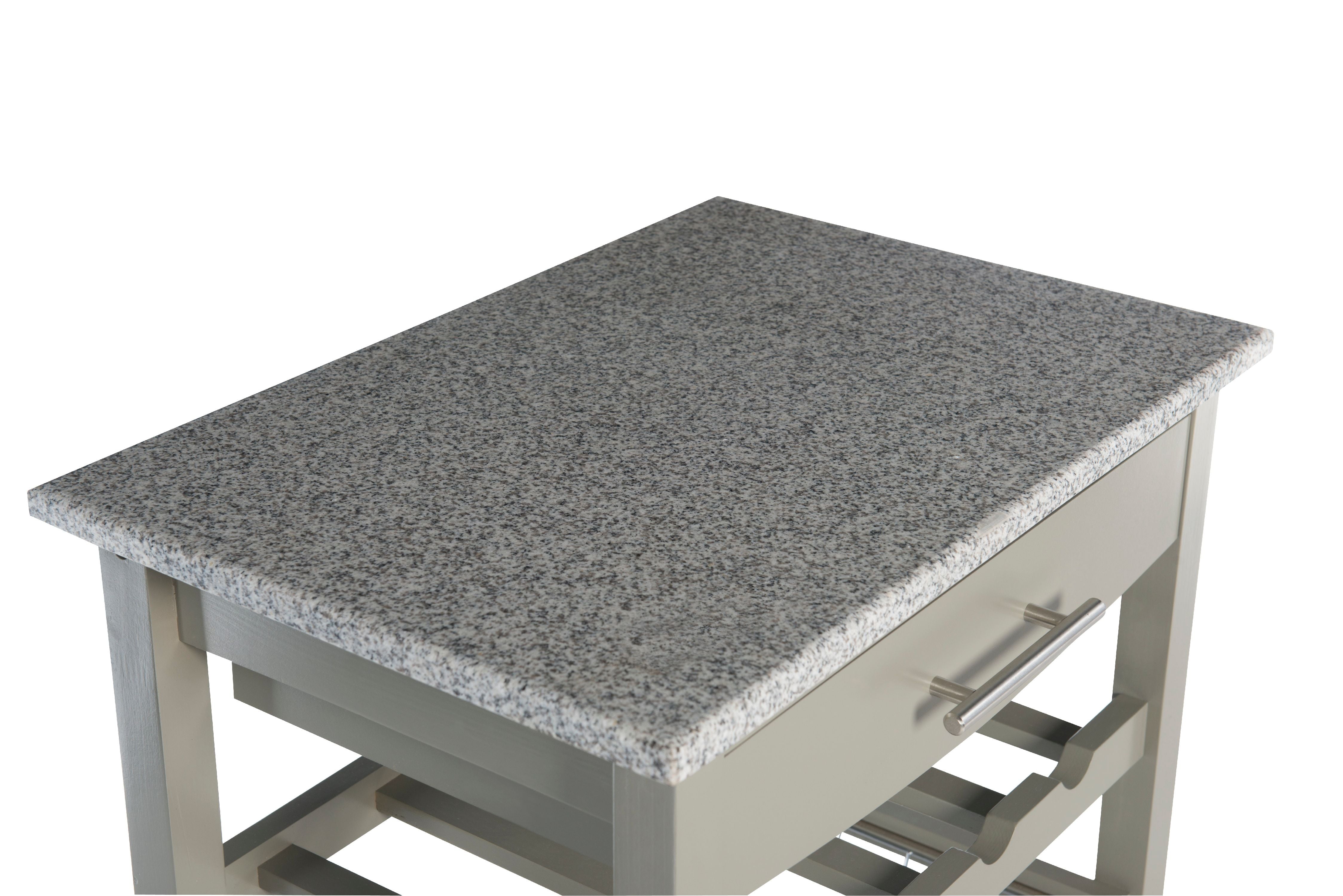 Linon Roger Kitchen Island Granite Top, Gray, with Castors
