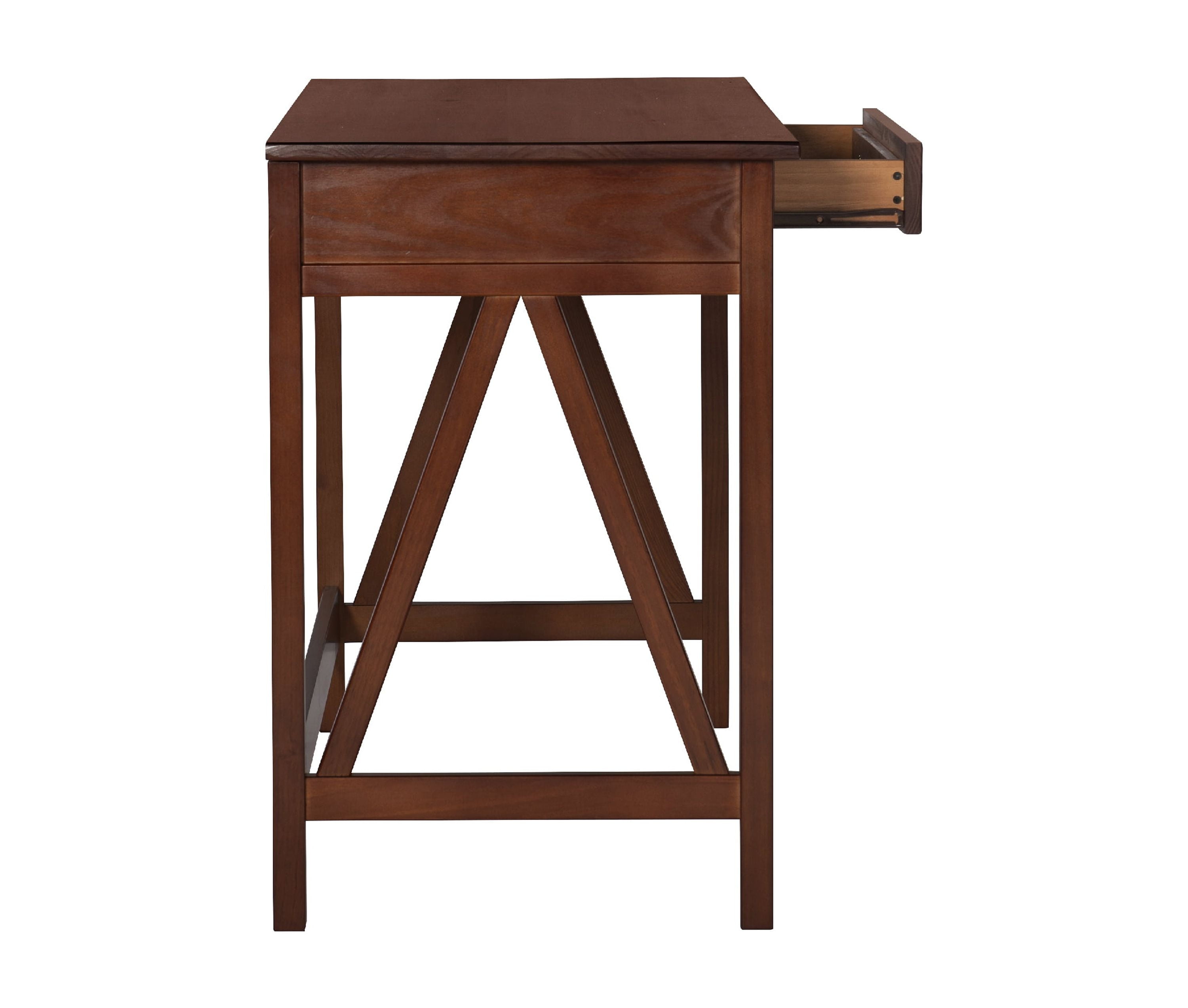 Antique Tobacco Finish Solid Wood contruction Simple yet eye-catching design. Versatile Design A single drawer provides hidden storage space. Will easily complement your homes décor. Drawer Dimensions: 21.85″ x 14.76″ x 1.97″, Shelf Dimensions: 46″ x 20″, Interior Dimensions: 41.54″ x 18.11″ x 24.61″ Assembly Required Assembled Dimensions: 45.9’w x 20″d x 30.15″h Weight Capacity: 80 Lbs On Top / 10 Lbs In Drawer Ships in 1 box Suggested for Adult Use