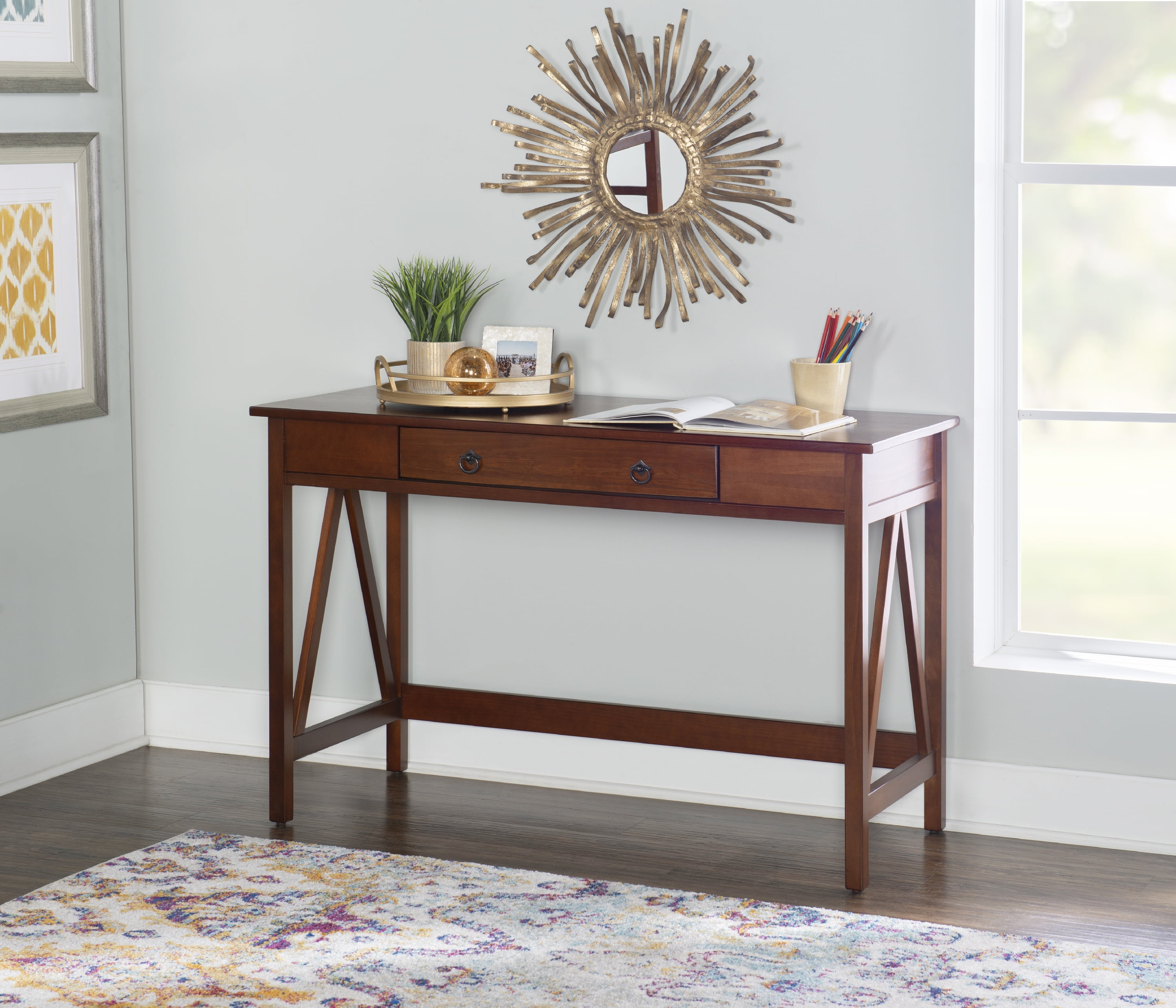 Linon Rustic 46″ Single Drawer Writing Desk, Antique Tobacco