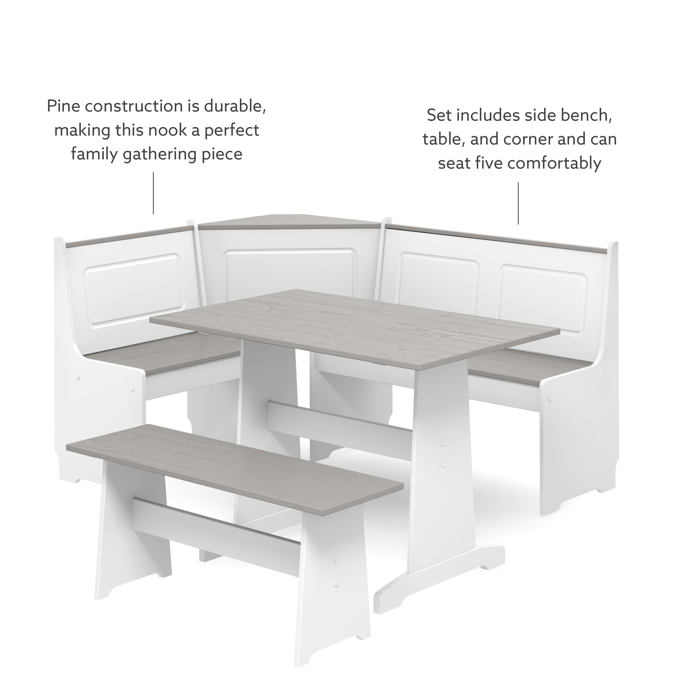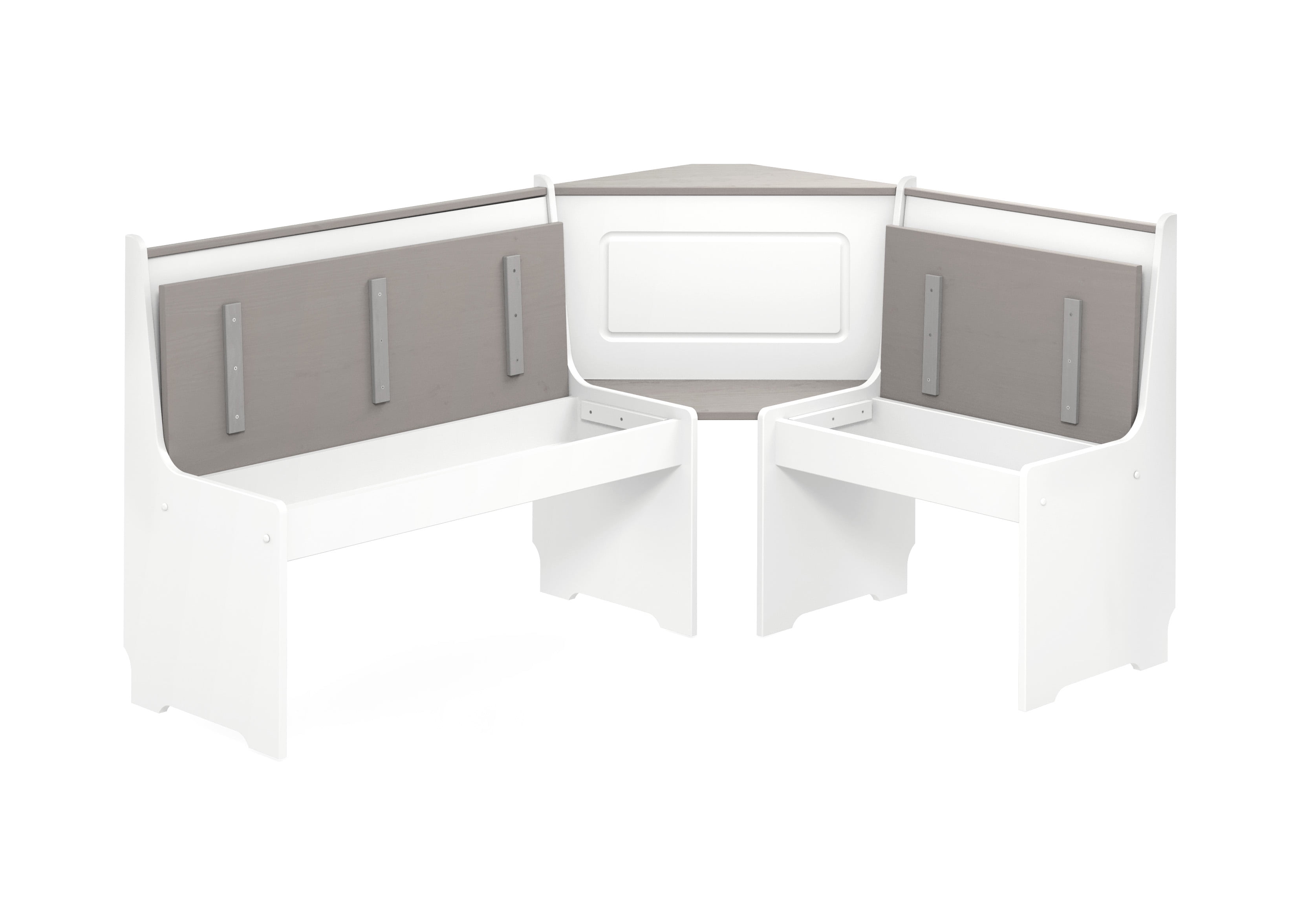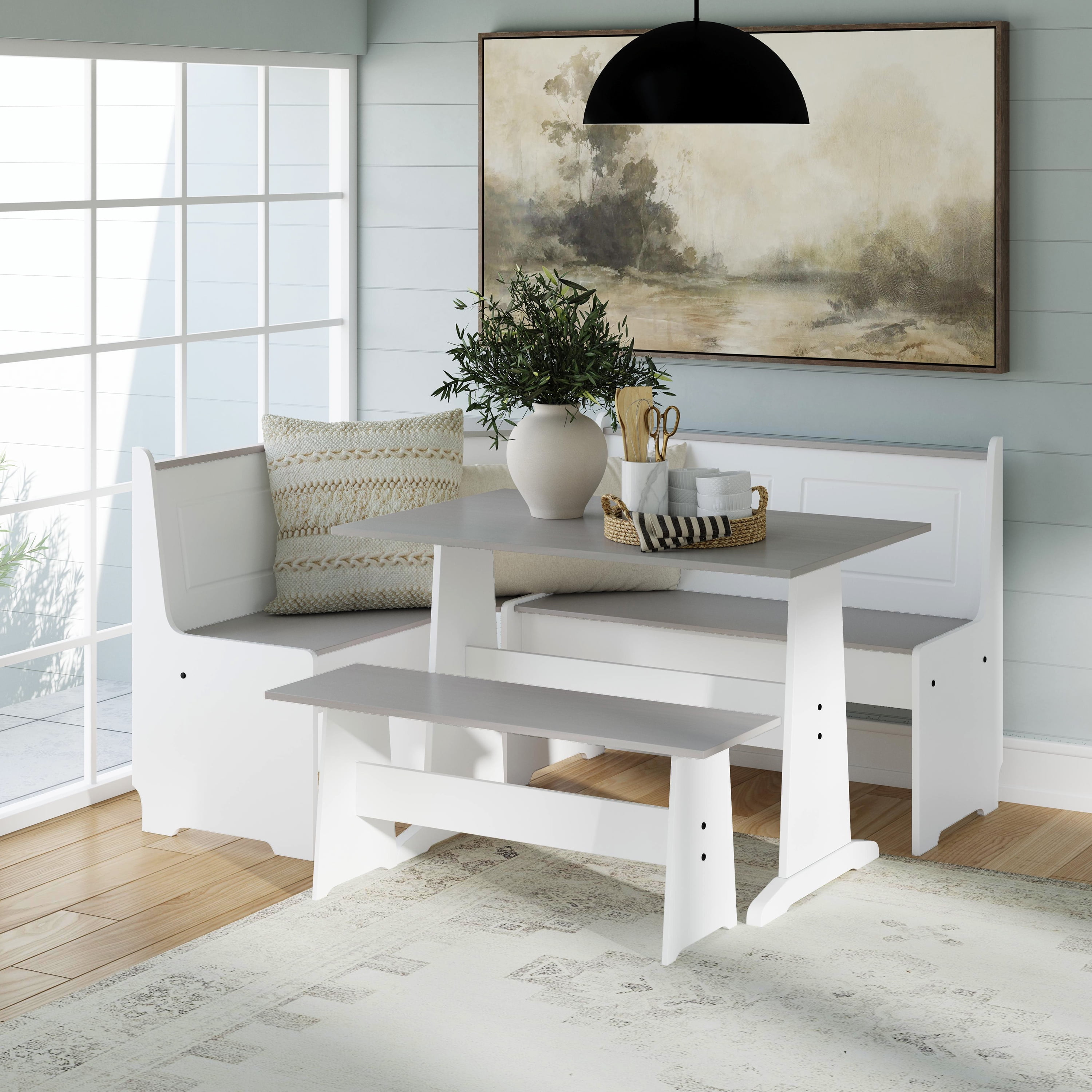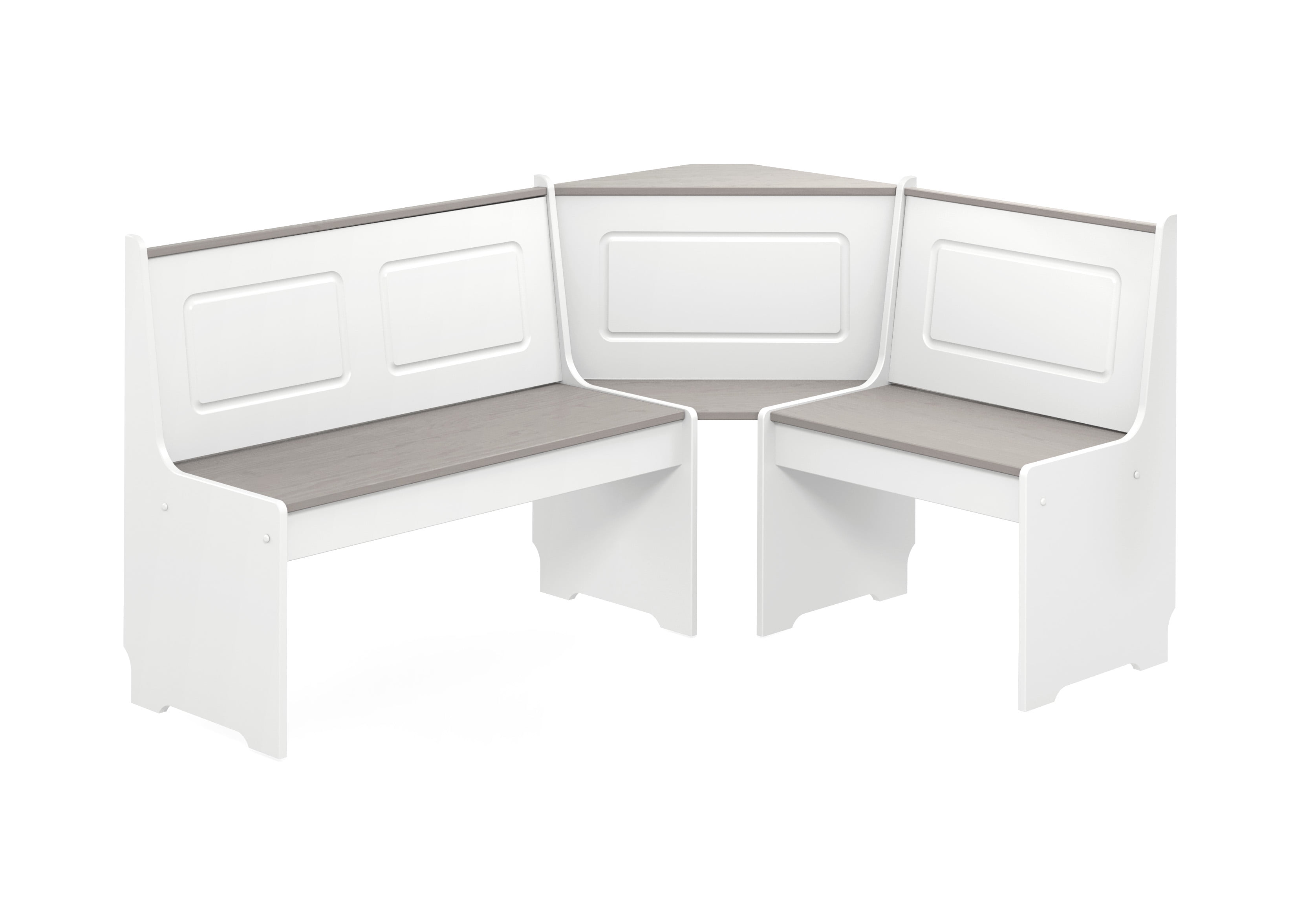 Linon Shirmaine Farmhouse Corner Dining 3-Piece Breakfast Nook Set with Storage, White/Grey