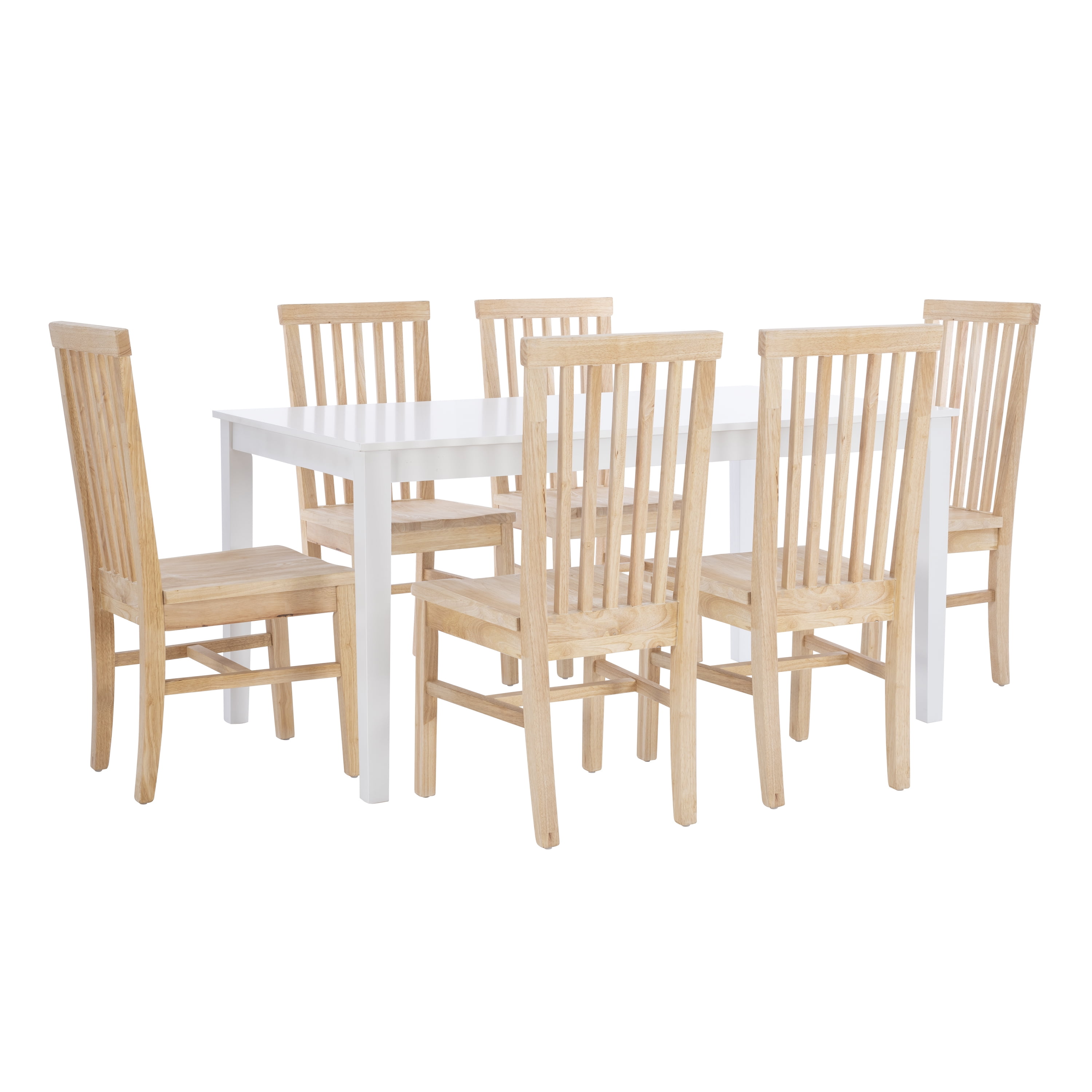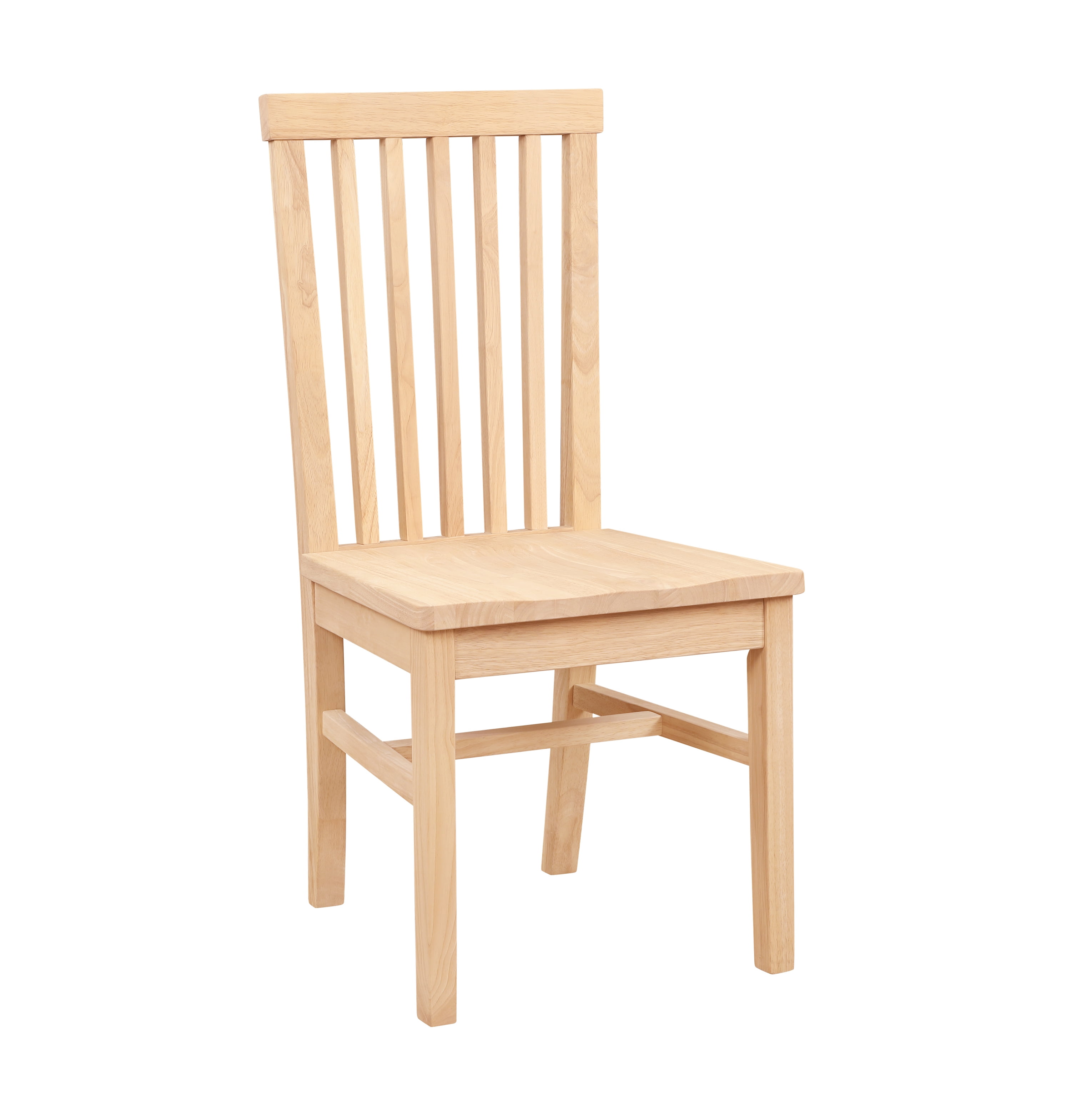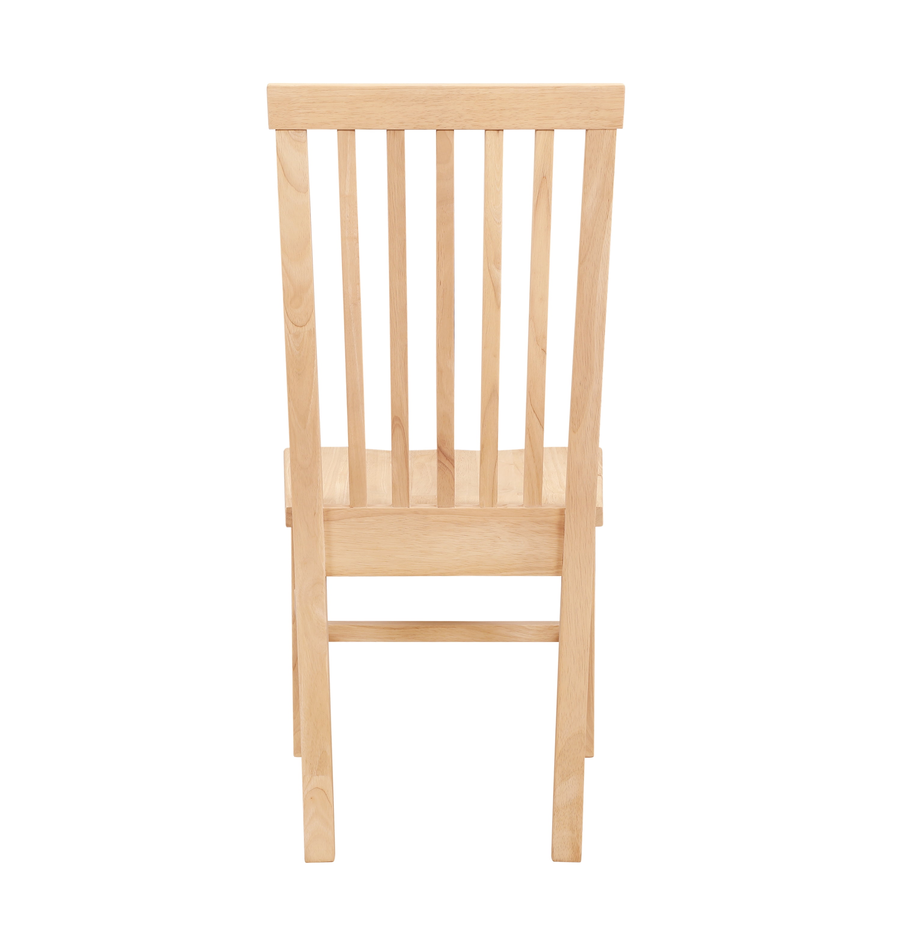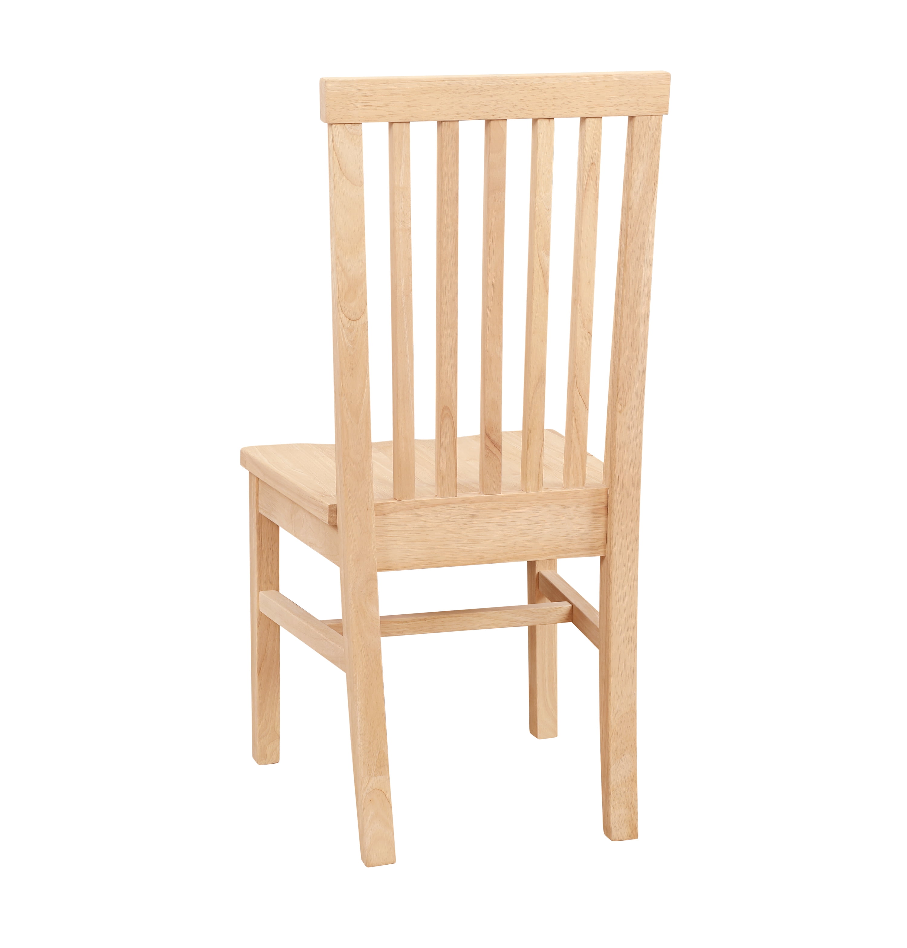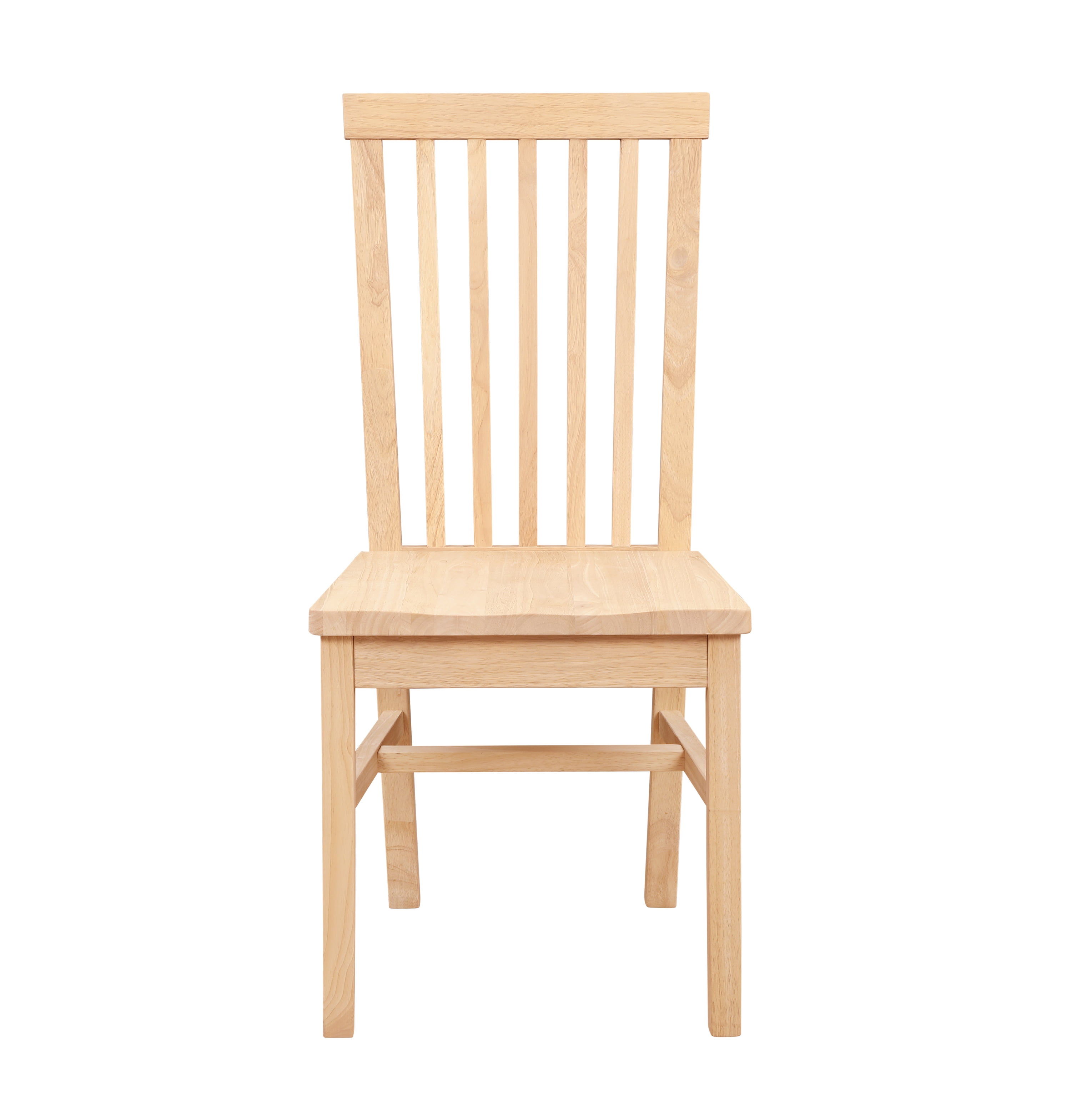 Arrives in a set of two Solid rubberwood construction provides ensured strength and stability, supports up to 400 lbs Unfinished frame readily allows for customization to best fit your dream dining ensemble High slat back pays homage to traditional farmhouse design Glossy clear coating provides protection against wear and tear and is a breeze to clean Arrives with some assembly required Dimensions: 18.13 L X 20 D X 39.25 H Ships in 1 box