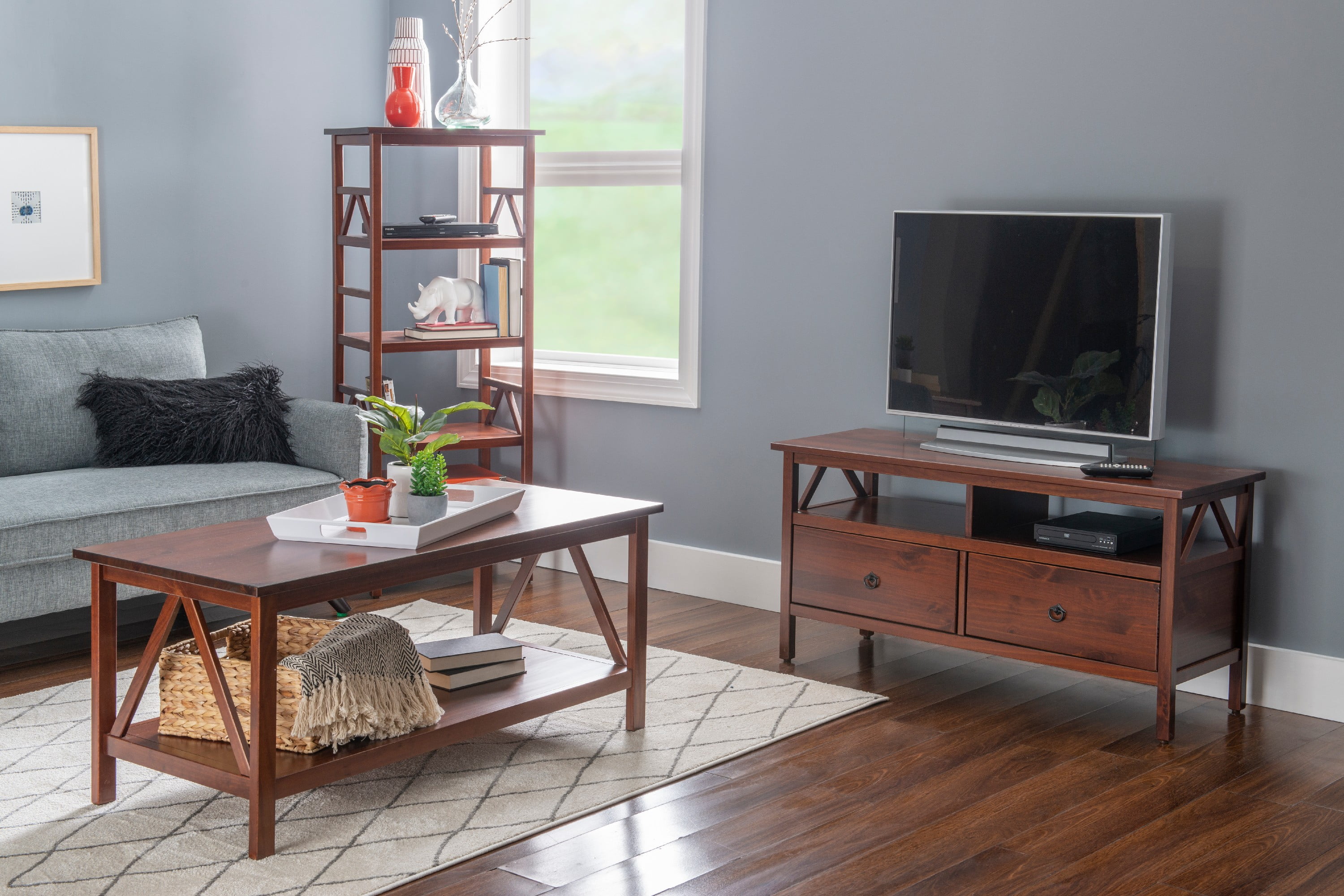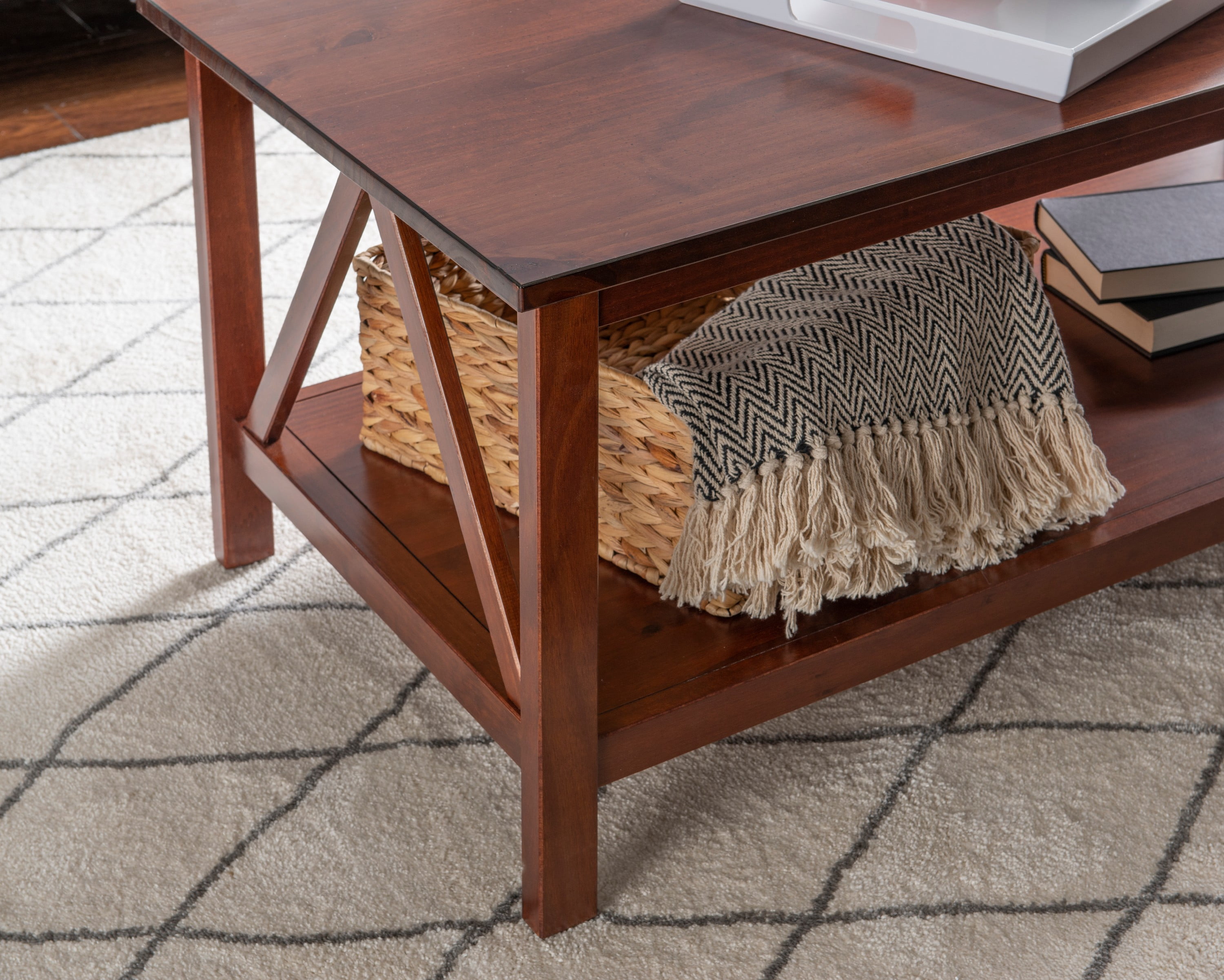 Linon Titian Indoor Coffee Table with Shelf, Antique Tobacco