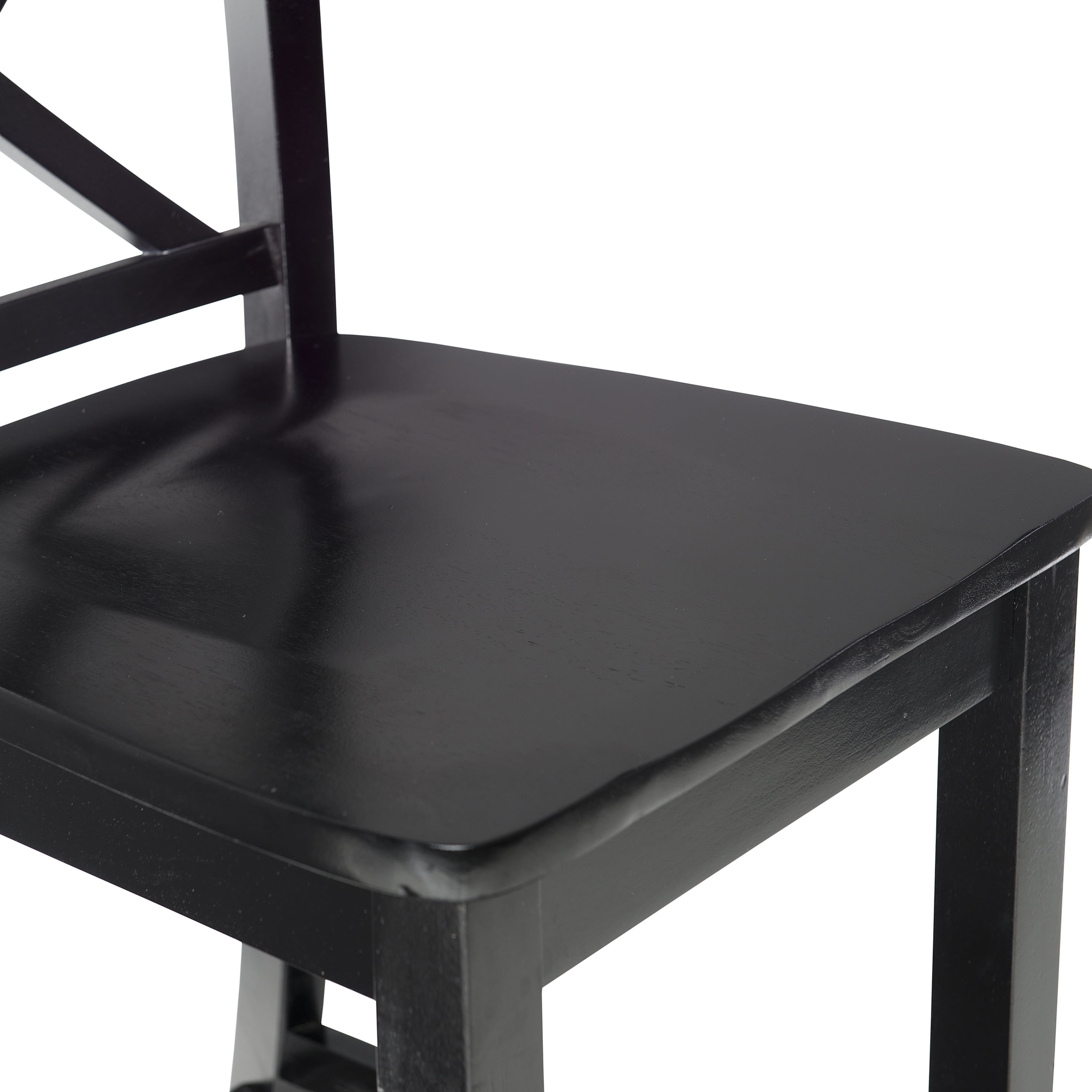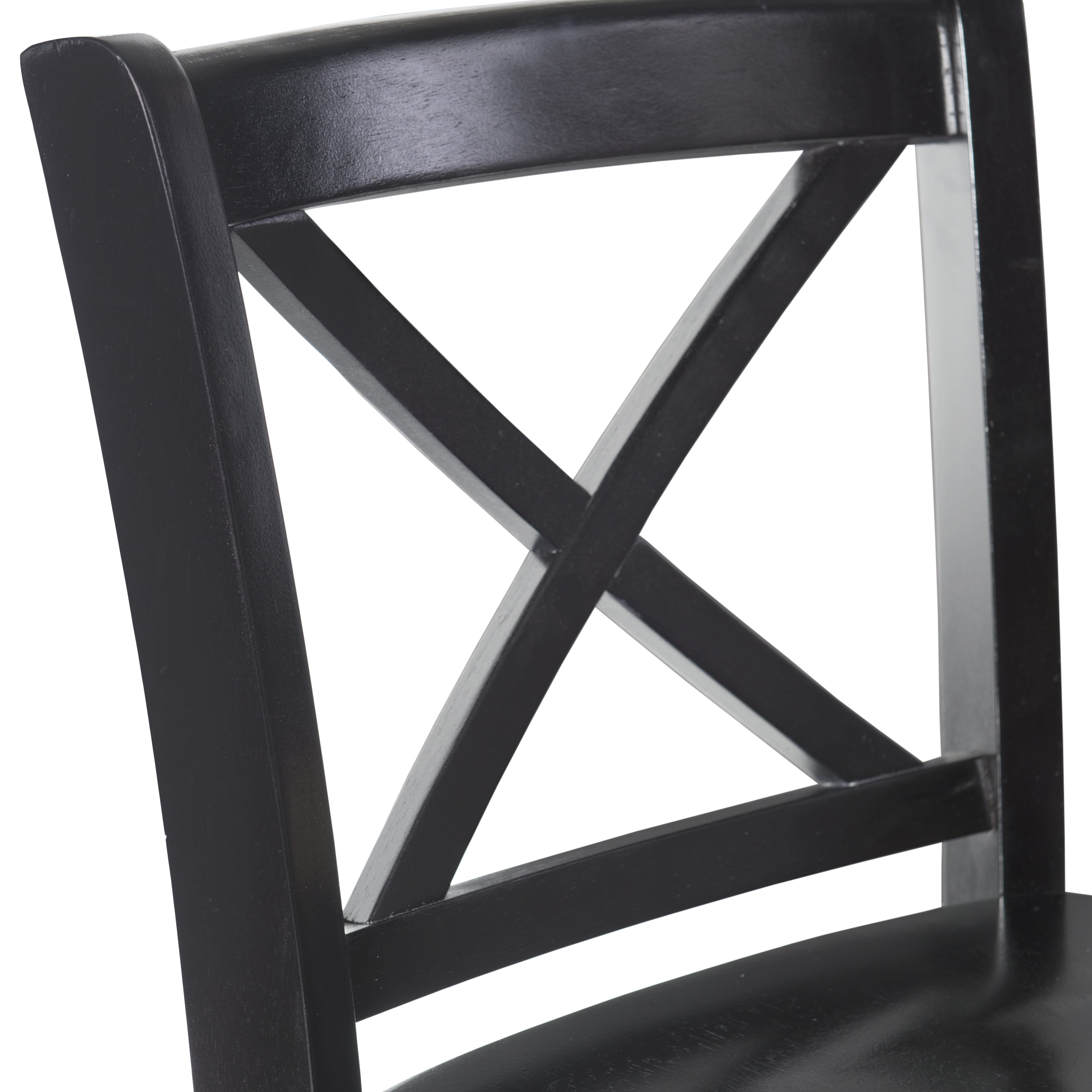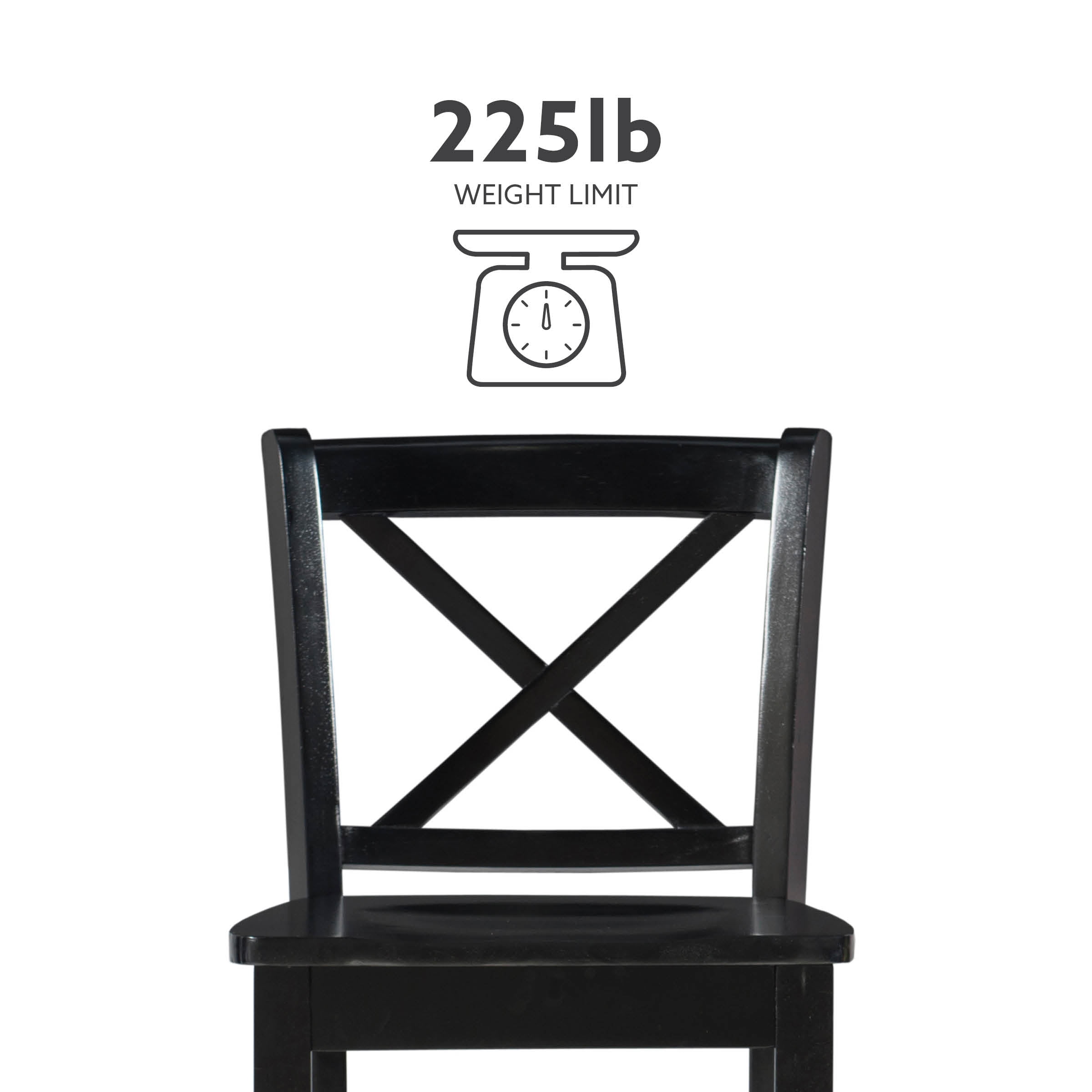 Sturdy solid rubberwood construction Black wood painted finish compliments a range of décor styles Easy care, simply wipe clean with a damp cloth Classic x back design Comfortable shaped wood seat Backrest and footrests provide proper support making the stool comfortable for long periods of time Suitable with bar heights of 41in to 43in Buy two or more to make a beautiful design statement in your home You will need one stool for every 30″ of horizontal counter space Easy to assembly, instructions included 275 lb weight limit Condition: New