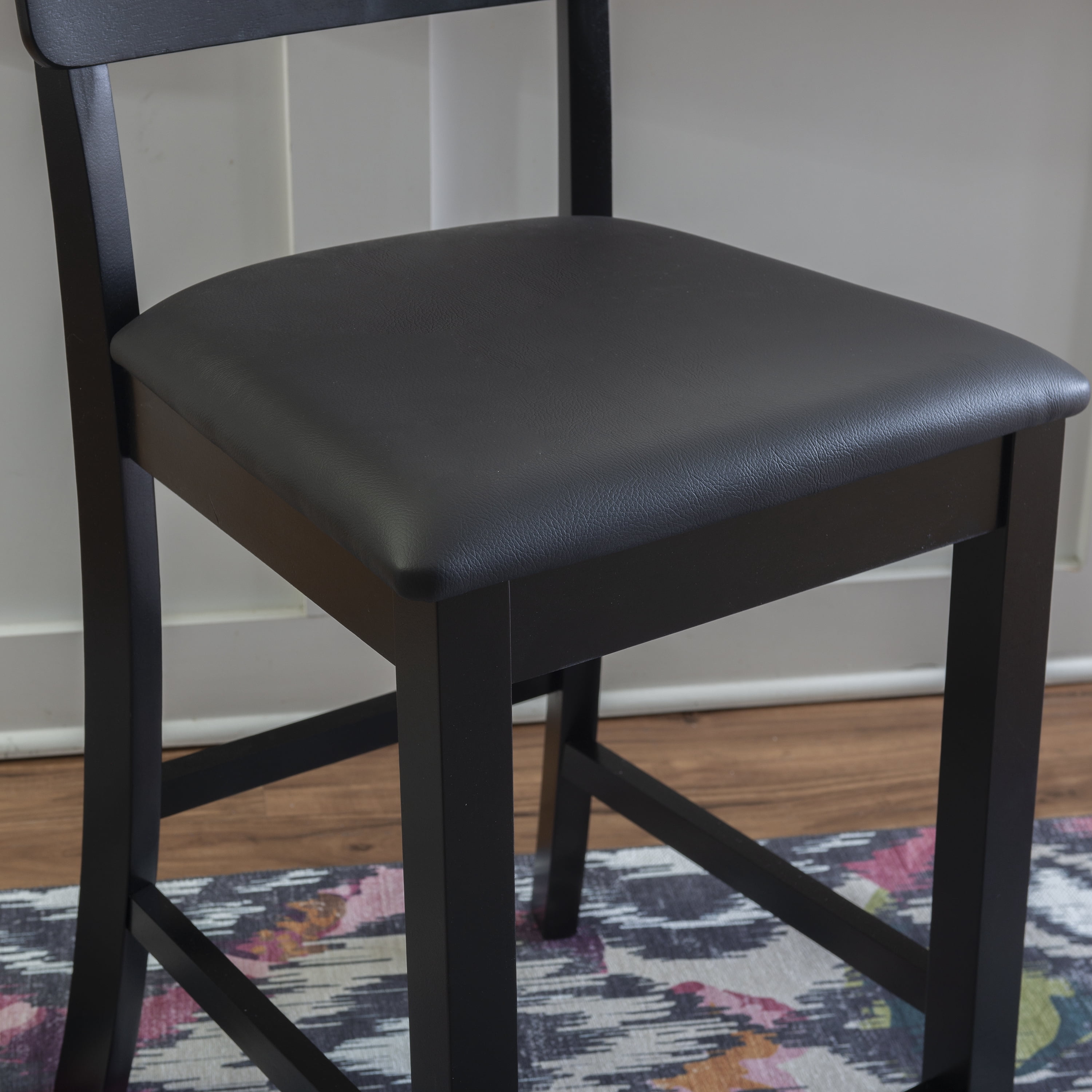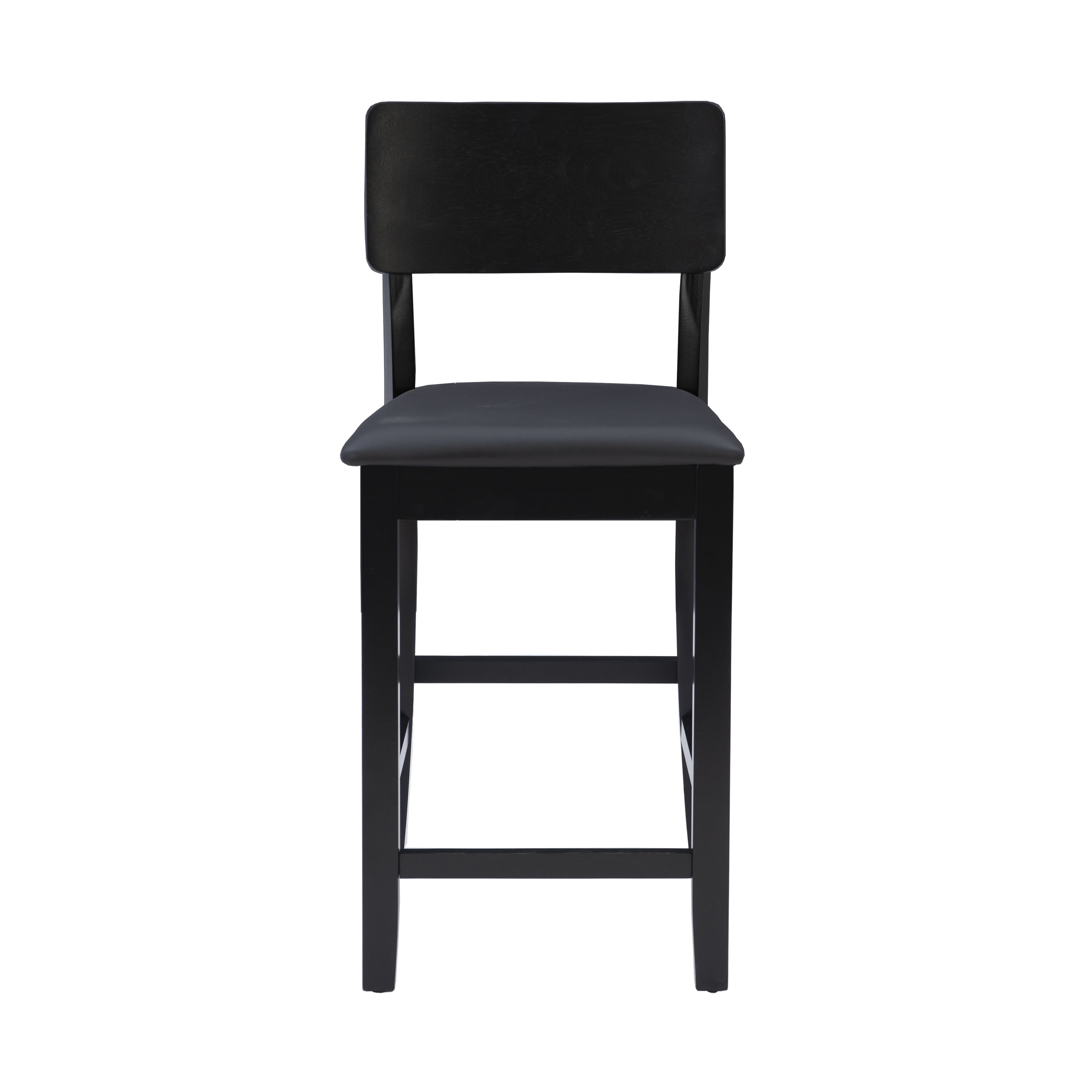 Sturdy solid rubberwood construction Black wood painted finish compliments a range of décor styles Easy care, simply wipe clean with a damp cloth Comfortable curved back design is both classic and modern Padded seat covered in black faux leather is easy care, simply wipe clean with a damp cloth Backrest and footrests provide proper support making the stool comfortable for long periods of time Suitable with counter heights of 35in to 39in Buy two or more to make a beautiful design statement in your home You will need one stool for every 30″ of horizontal counter space Easy to assembly, instructions included 275 lb weight limit Condition: New