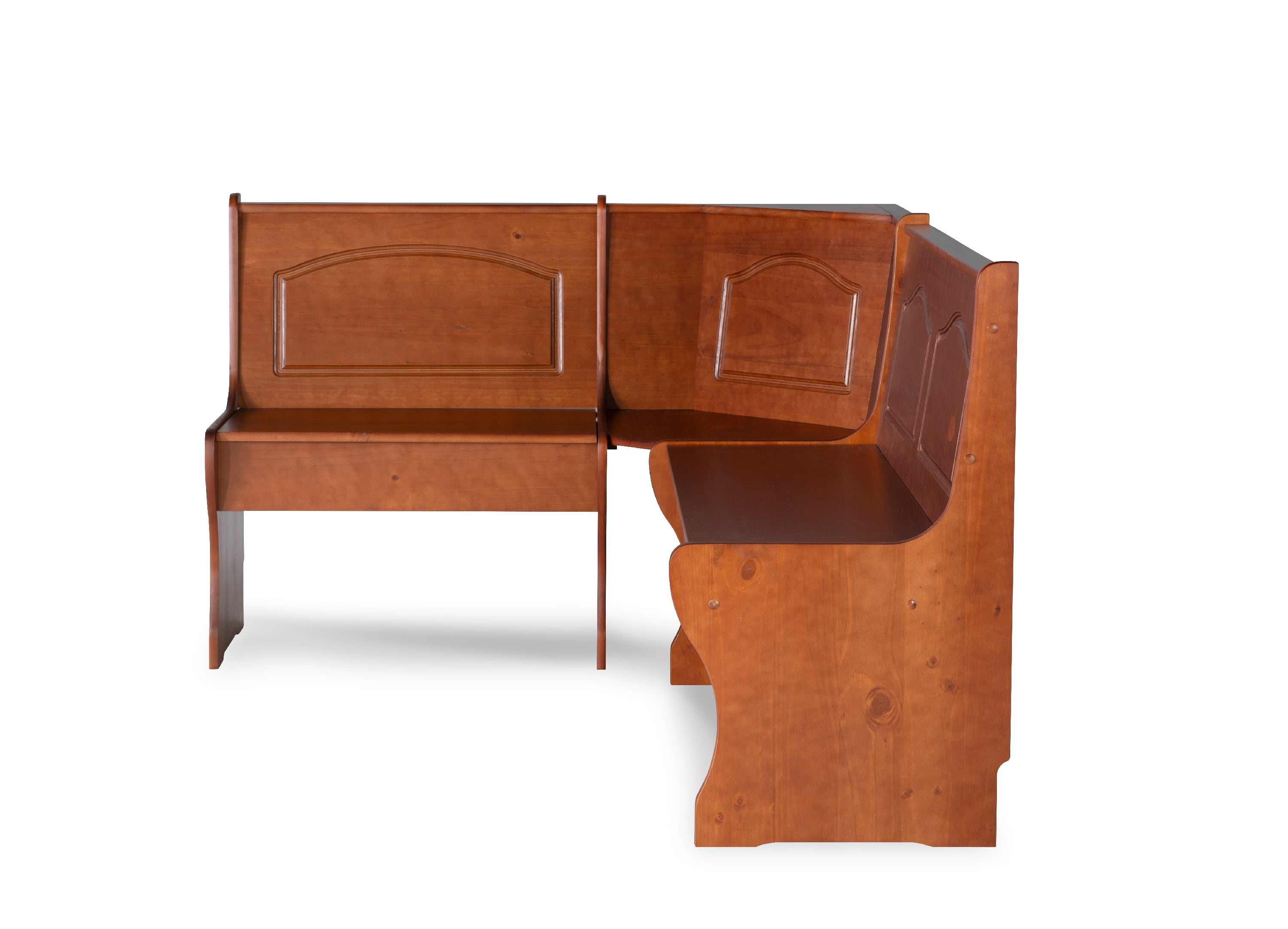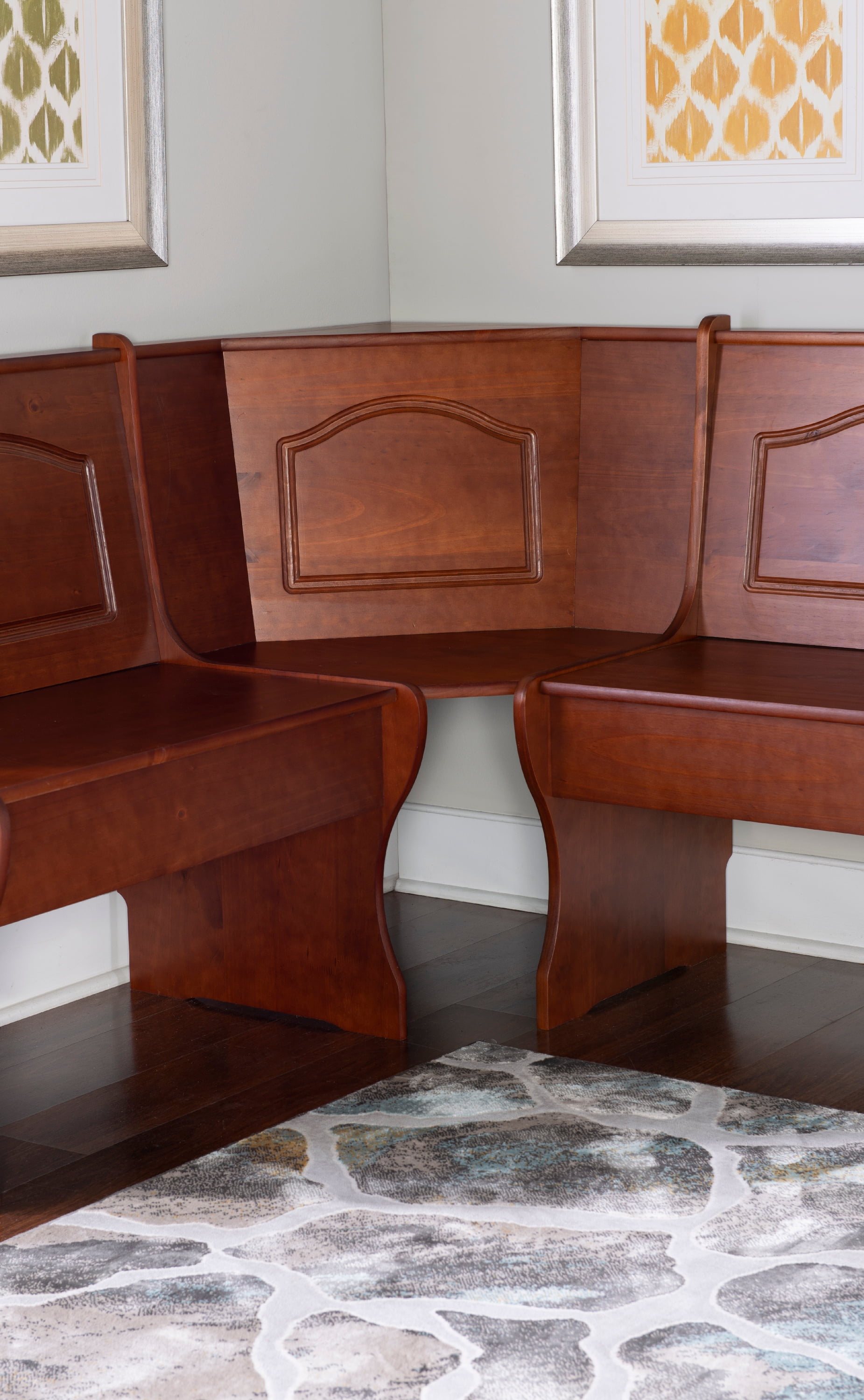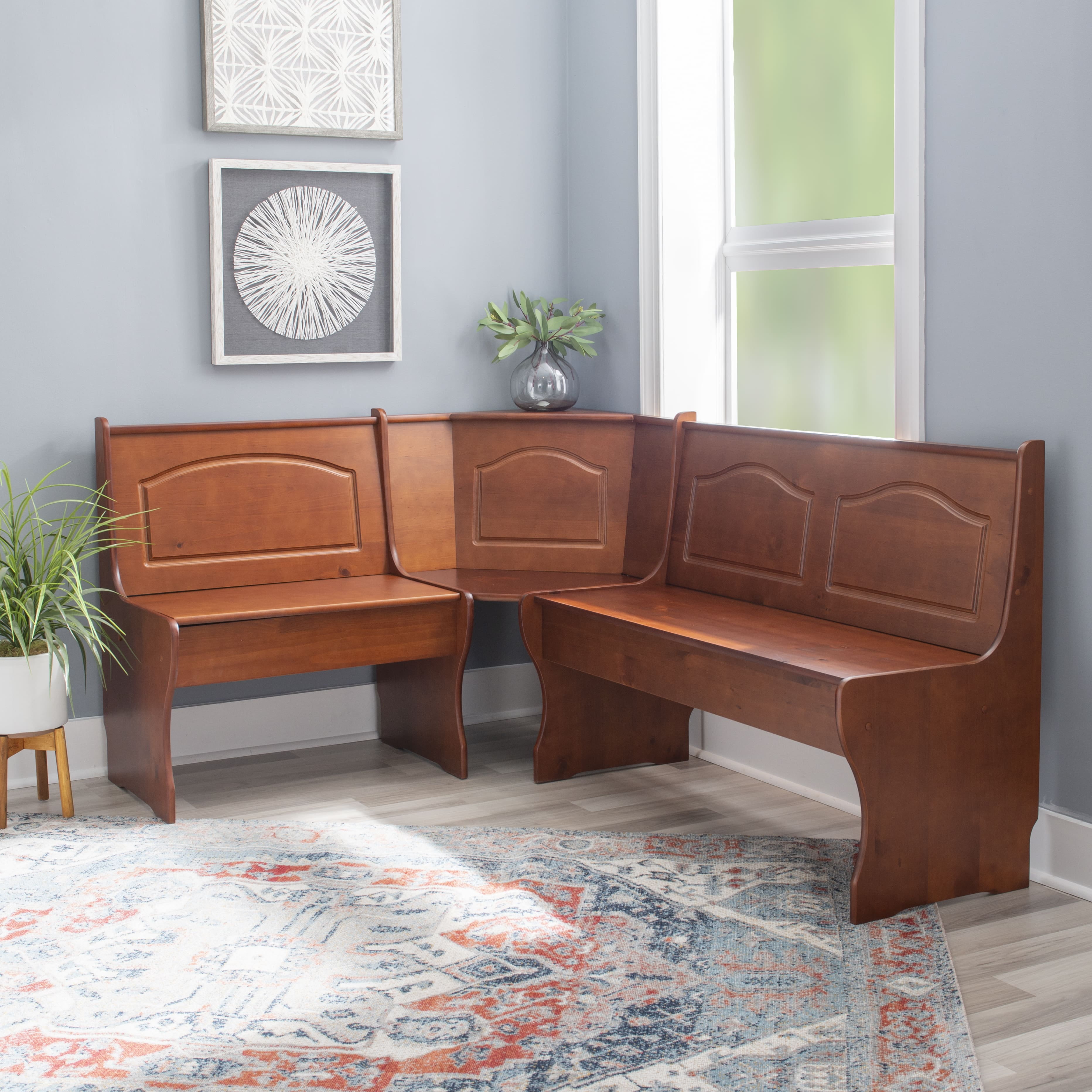 Smart L-Shaped Footprint: Seats up to 3 while maximizing corner space—ideal for kitchens, apartments, or breakfast nooks with limited square footage. Built-In Bench Storage: Hidden compartments beneath each seat offer a clutter-free solution for stashing dining linens, toys, or everyday must-haves. Crafted to Last: Made from solid pine and durable MDF to stand up to daily use in busy family spaces. Rich Walnut Brown Finish: A golden stain that highlights the wood’s natural grain for a warm, rustic look that complements farmhouse, transitional, and traditional decor. Flexible, Reversible Design: The corner setup can be assembled to the left or right, adapting easily to your kitchen or dining room layout. Multifunctional Style: Works as a dining booth, mudroom bench, casual workspace, or hangout spot—tailored for modern living.