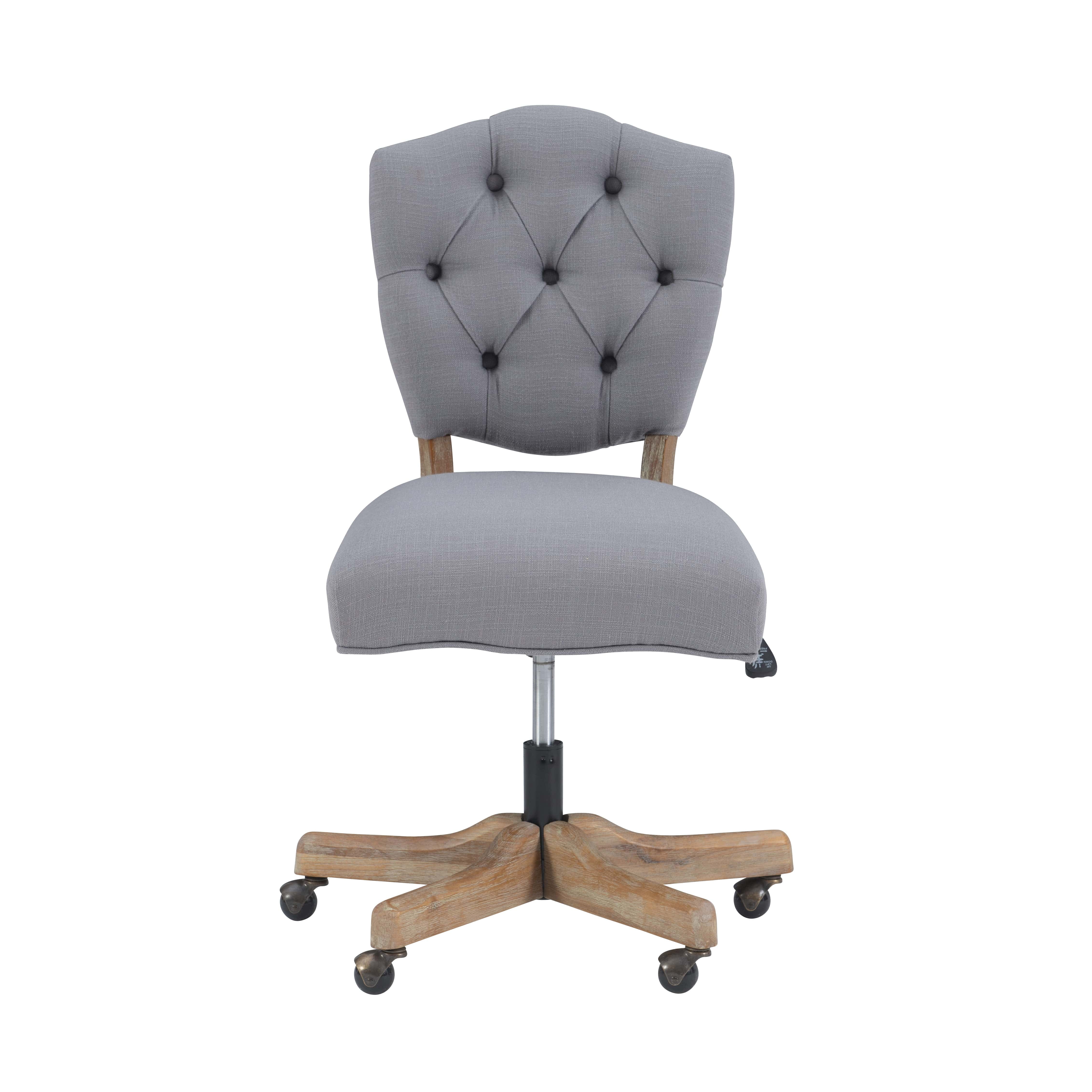 Enjoy chic style and long-lasting comfort with this posh Linon Vinson office chair with swivel featuring tufted upholstery and a decorative wood frame. Delicate curves on the frame add a feminine touch to the piece. Available in two colors, this chair is an ideal choice for any well-appointed office. Durable metal casters ensure smooth mobility around the space and adjustable seat height adds comfort and versatility. 275 lbs weight capacity. About Linon Home Décor Linon Home Décor is a family-owned-and-operated company based on the East Coast that has been in business for over 50 years. With an established reputation in the market for providing the best on-trend products at the right price, Linon offers excellent quality, style and functional furnishings for every room in the home. Linon’s domestic and international teams provide customers with the most reliable on-time delivery and customer service possible.