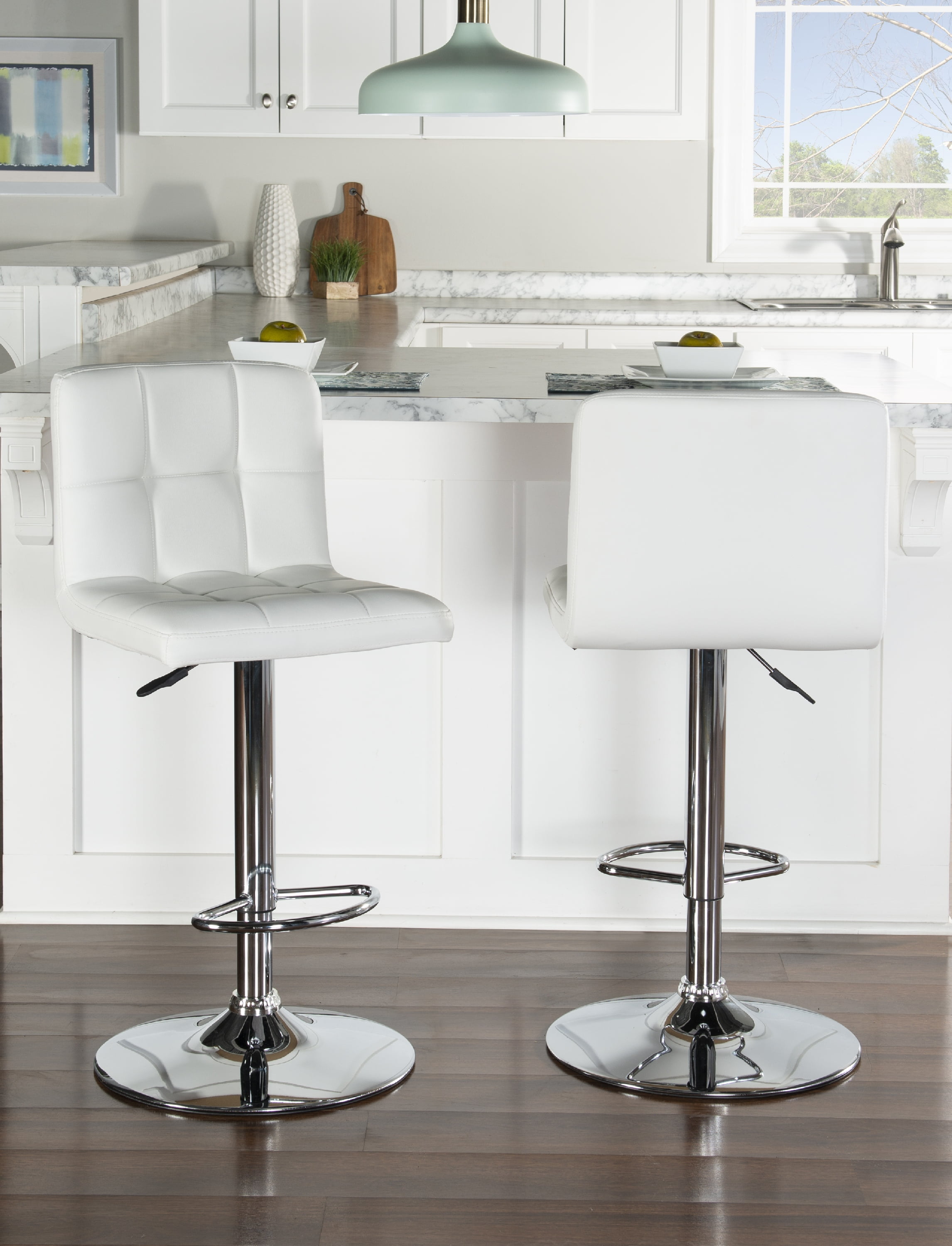 Versatile space saving backless barstool adds comfy seating to any kitchen Double foot rest Seat features light blue textured faux leather Frame finished in white Crafted from solid beechwood Perfect for counters with heights 41in and above Holds up to 300 pounds Commercial grade Carton Dimensions: 14.96″w x 29.92″d x 9.06″h Some Assembly Required Sku: BS102COW01U For indoor use only