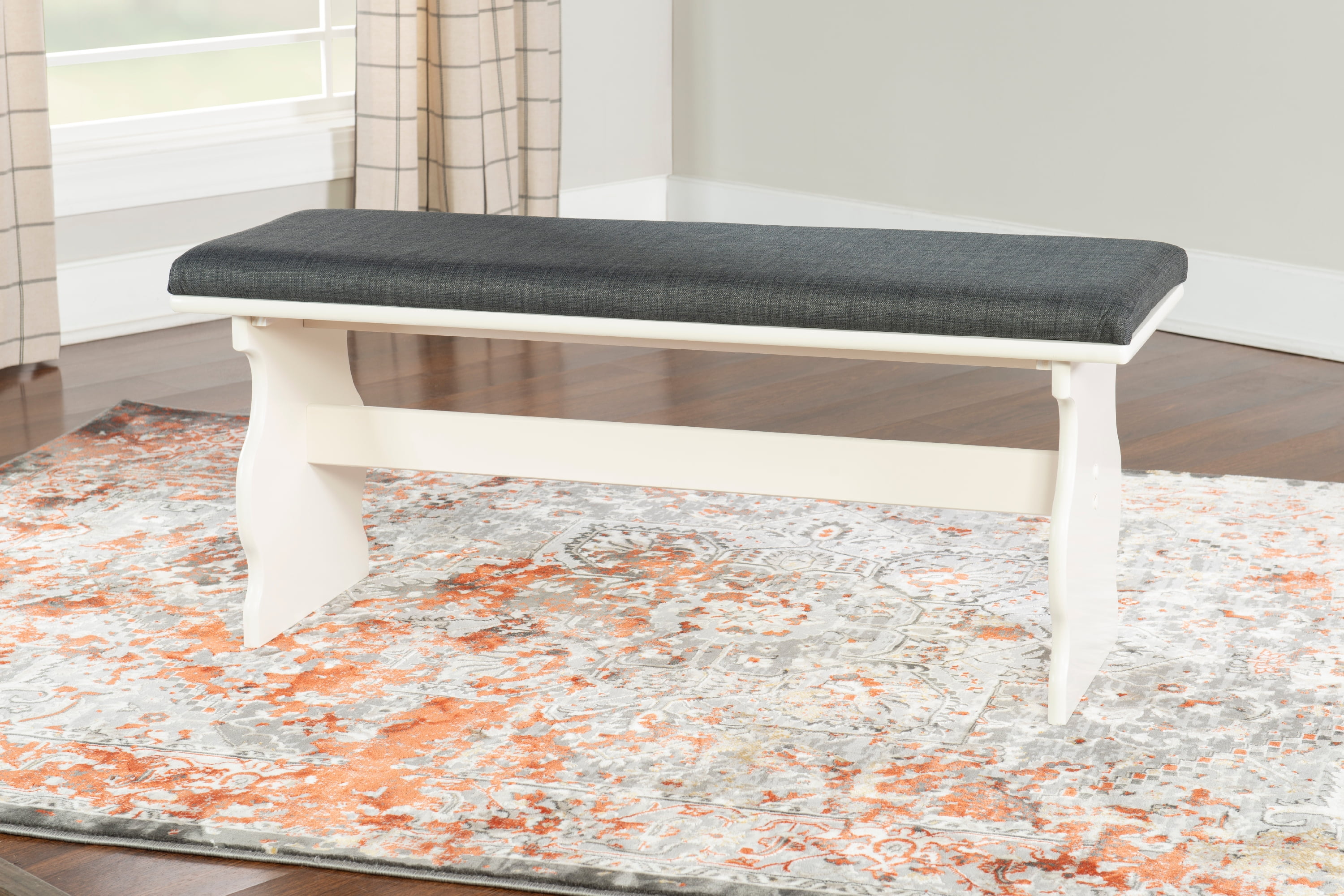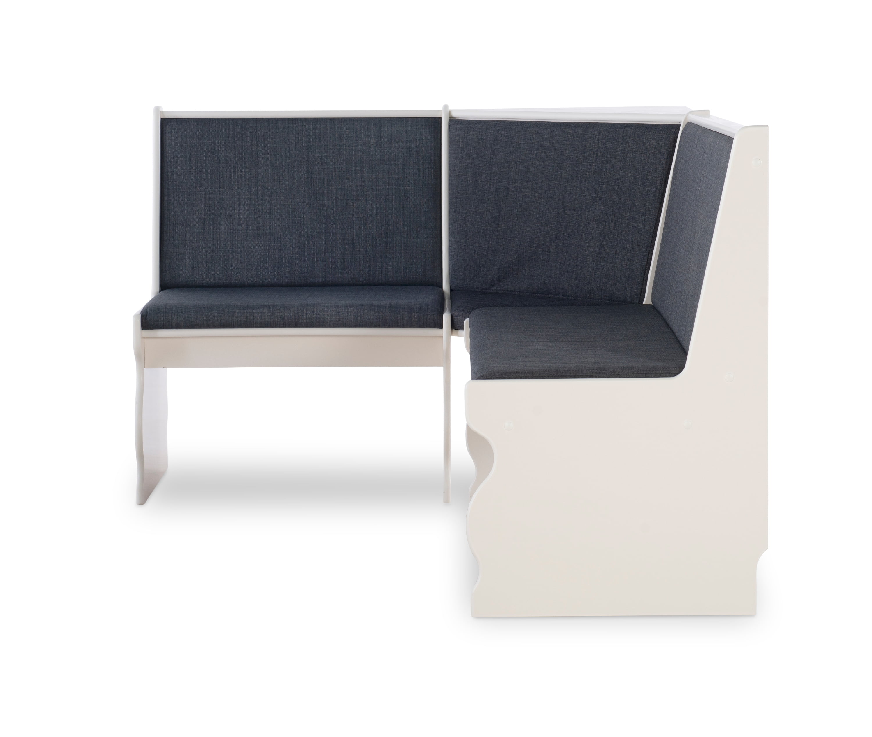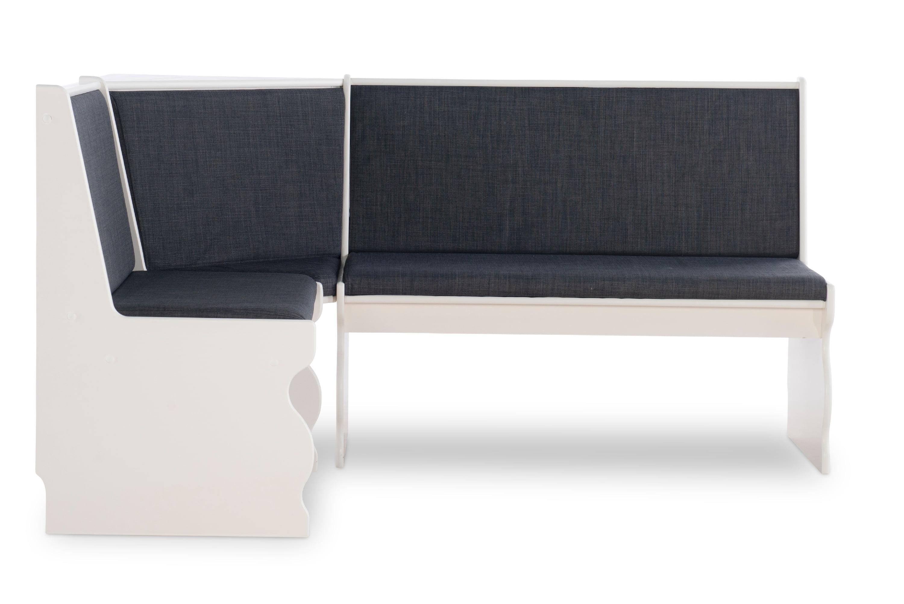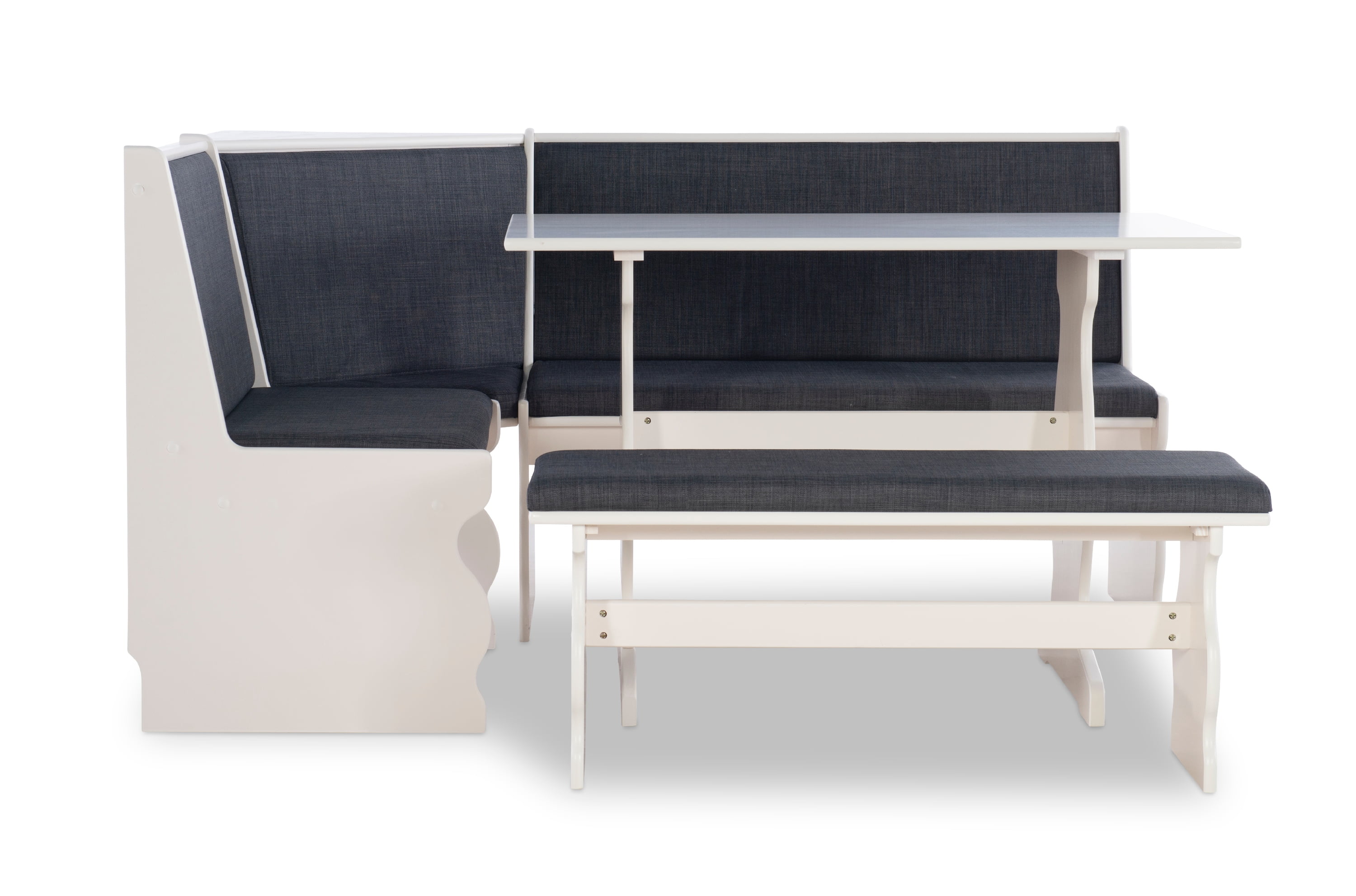 Linon Weston 3-Piece Farmhouse Indoor Corner Dining Nook with 5-Piece Cushion Set, White/Charcoal
