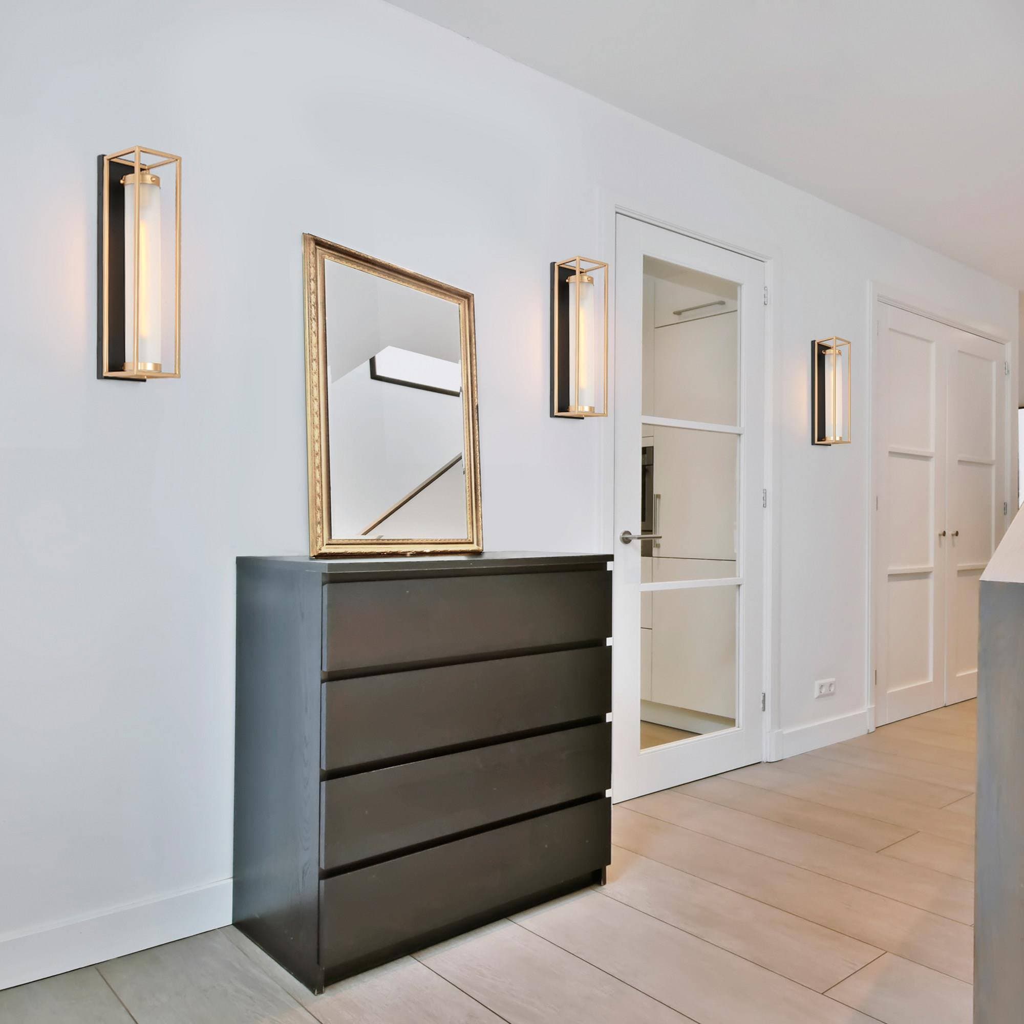 The refined slender design provides you with bright and soft light without taking up too much space. This gold 1-light wall sconce lighting consists of a slim but sturdy metal frame and a large black backplate, presenting more elegance and linear aesthetic to your elaborate house. The unique tube design is suitable for various places like the bathroom, powder room, bedroom, staircase, which is also a fabulous choice to decorate and light up your mirrors, artwork, sofas, and night tables. Believe you will love this minimalist indoor wall light and enjoy its comfortable lighting!