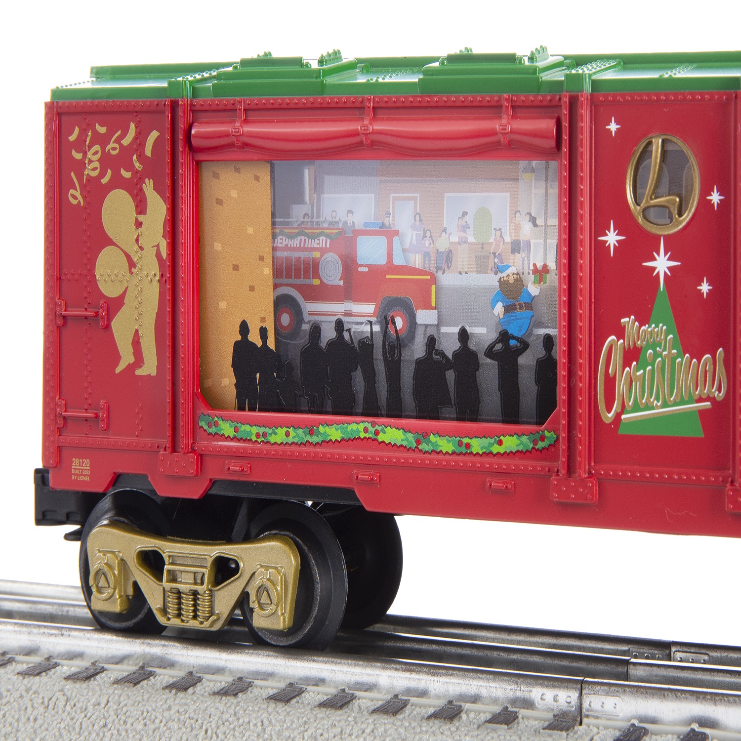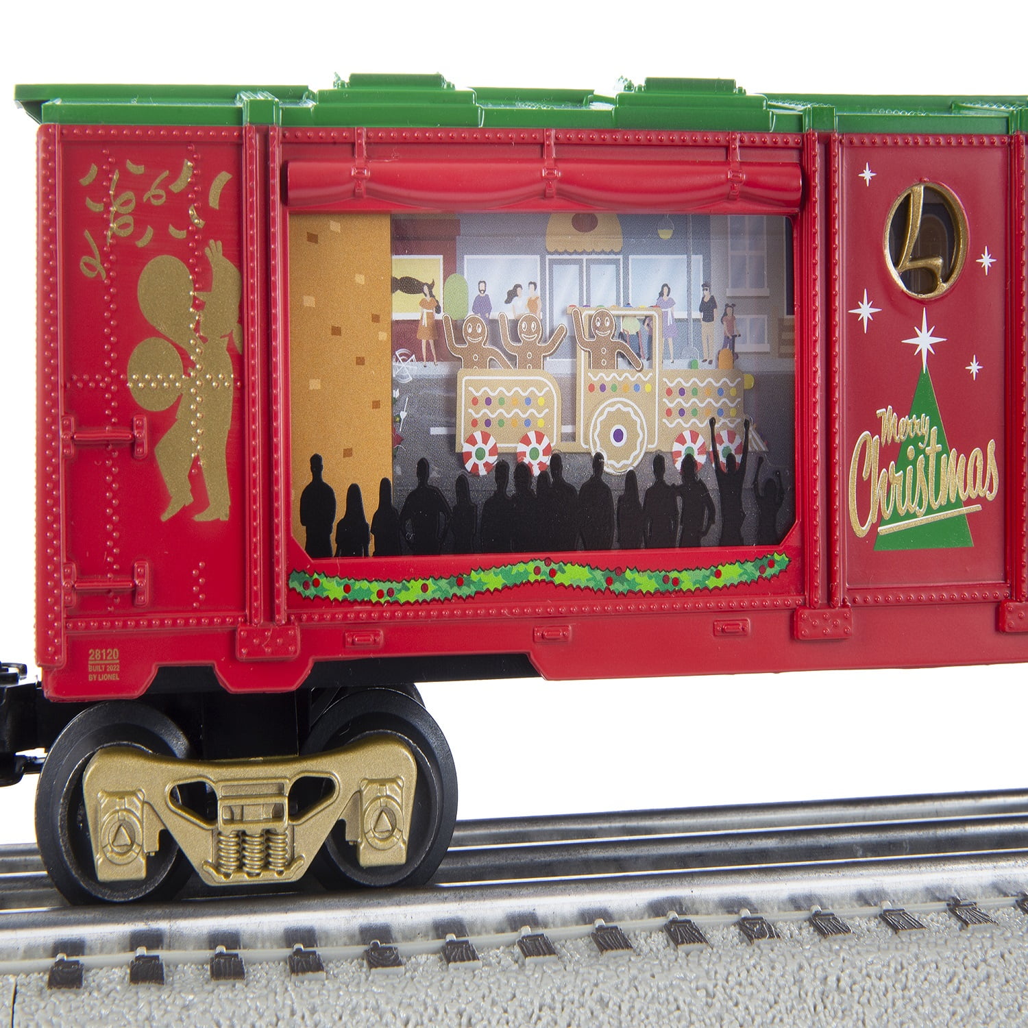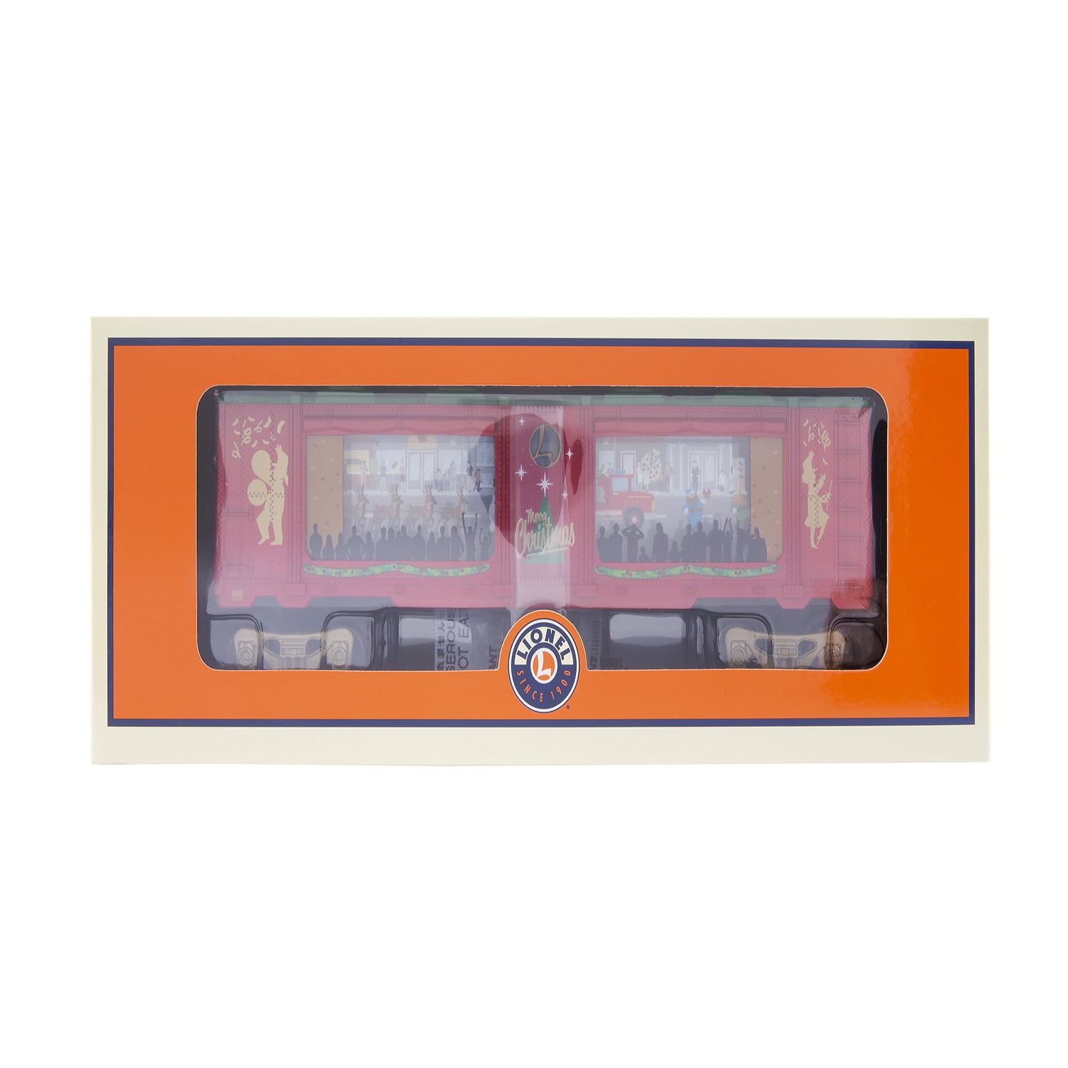 Add on to your Christmas Celebration train set with this festive Lionel Christmas Parade Aquarium car! This car features a moving Christmas parade as it runs around your track and is sure to add magic to your Christmas layout. FEATURES Christmas parade moves around the car when powered Operating couplers Maintenance free motor with On/Off switch Interior illumination PRODUCT SPECIFICATIONS Gauge: O Gauge Min Curve: O27 Dimensions: Length: 10.5”