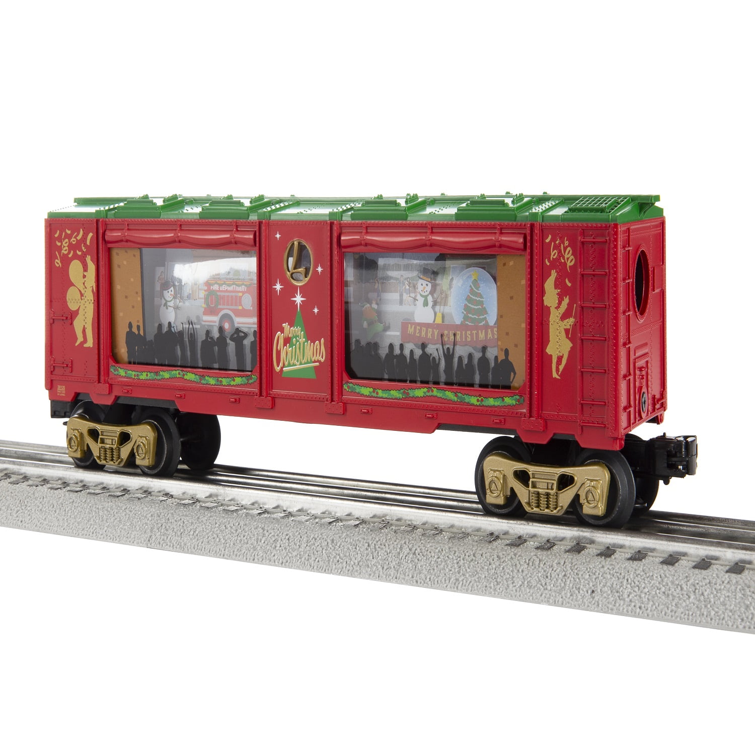 Christmas parade moves around the car when powered Operating couplers Maintenance free motor with On/Off switch Interior illumination O Gauge