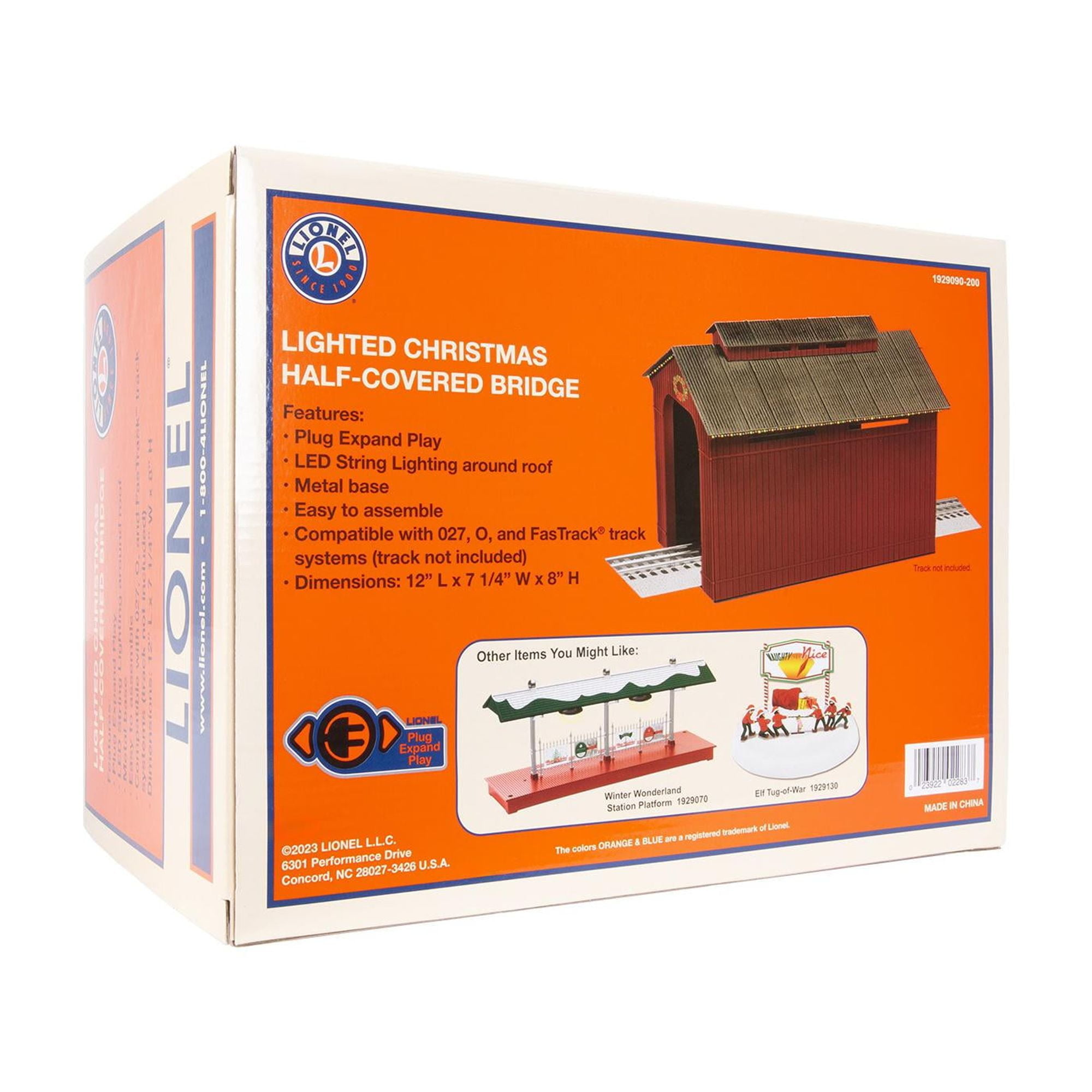 Watch your toy trains cruise underneath the skillfully crafted half-covered snow bridge The attention to detail of this accessory will immerse any child or avid train model collector into the gameplay Lionel Plug-Expand-Play System makes installing this train model accessory a breeze Designed for FasTrack users but is also compatible with any AC or DC powered layout O Gauge model measuring 1.25-inches between the outer rails LED string lighting around the roof will light up your gameplay and get you into the holiday spirit Gauge: O Gauge Scale Type: Traditional Power: Electric Material: Plastic Color: Red Dimensions (L x W x H): 12 x 7.25 x 8 inches Weight: 3.5 ounces Manufacturer warranty: 30-day warranty