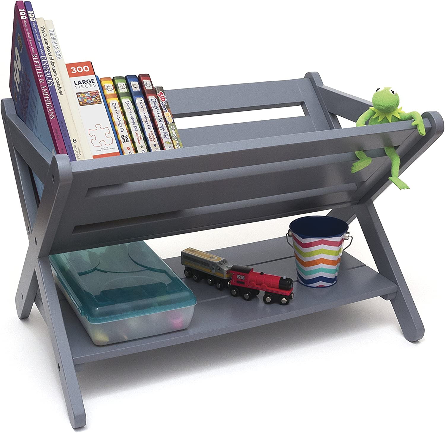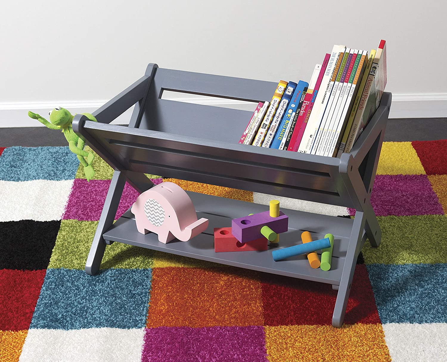 Perfect for the playroom or child’s bedroom. A fun and practical solution for your child?s learning needs Makes reading and storing books both fun and easy! Features a roomy bottom shelf for stacking games or even more books Durable wooden construction and a color that fits nearly any décor