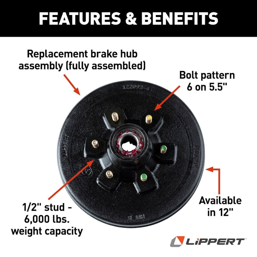 Lippert Components Brake Hub, 5200-6000Lbs, 6-5.5In, 1/2In – 122463